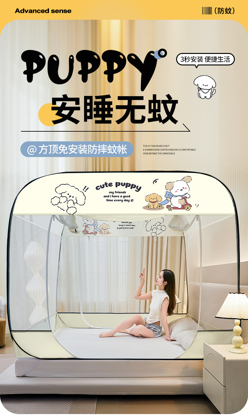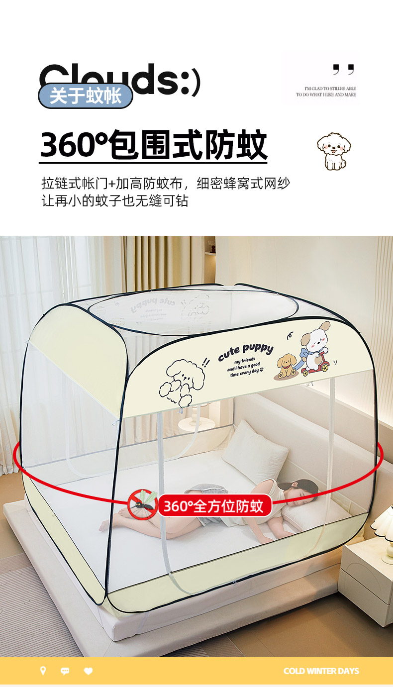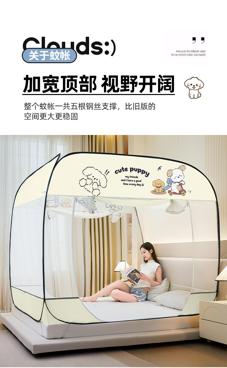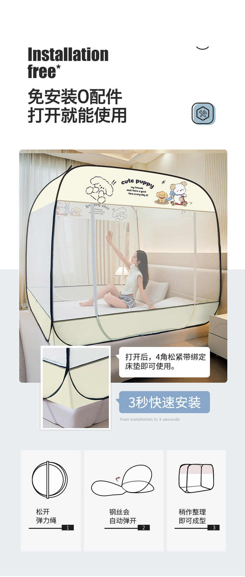 自然醒防尘免安装大方顶蚊帐 可折叠家用防摔儿童卧室蒙古包加密加厚HH