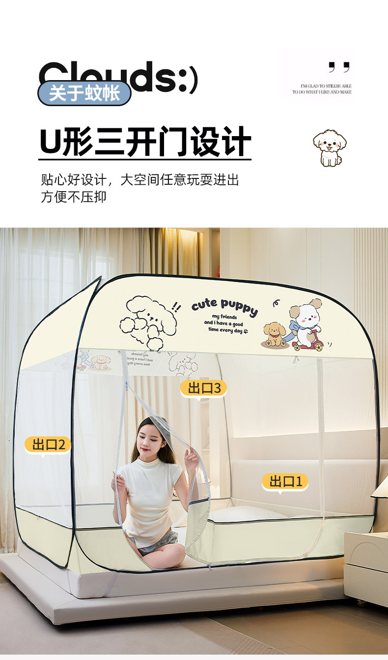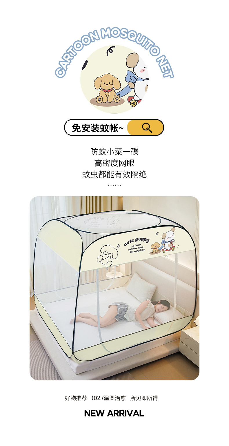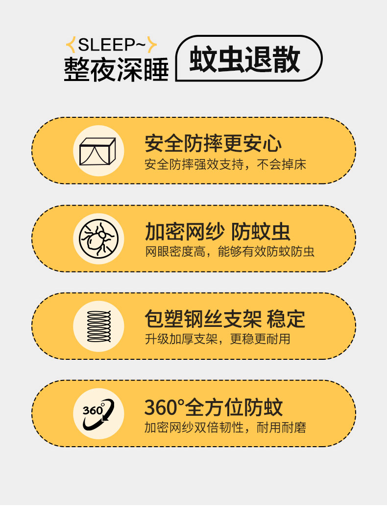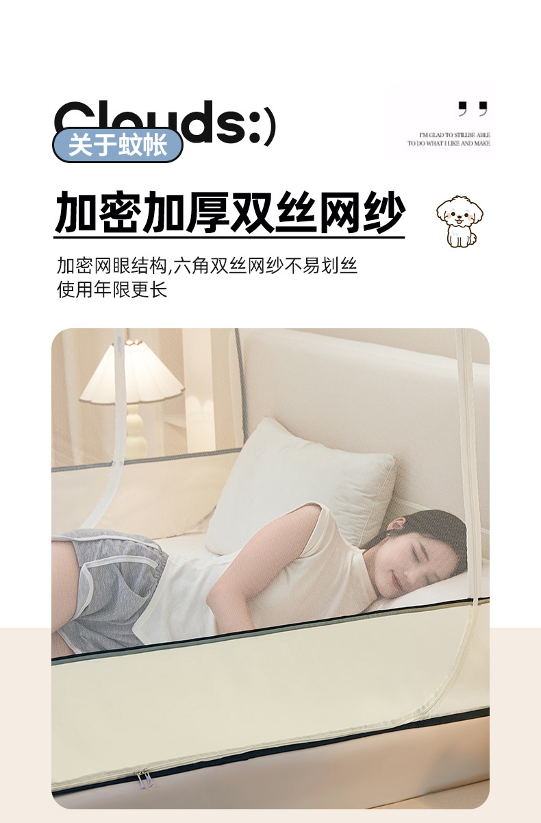 自然醒防尘免安装大方顶蚊帐 可折叠家用防摔儿童卧室蒙古包加密加厚HH