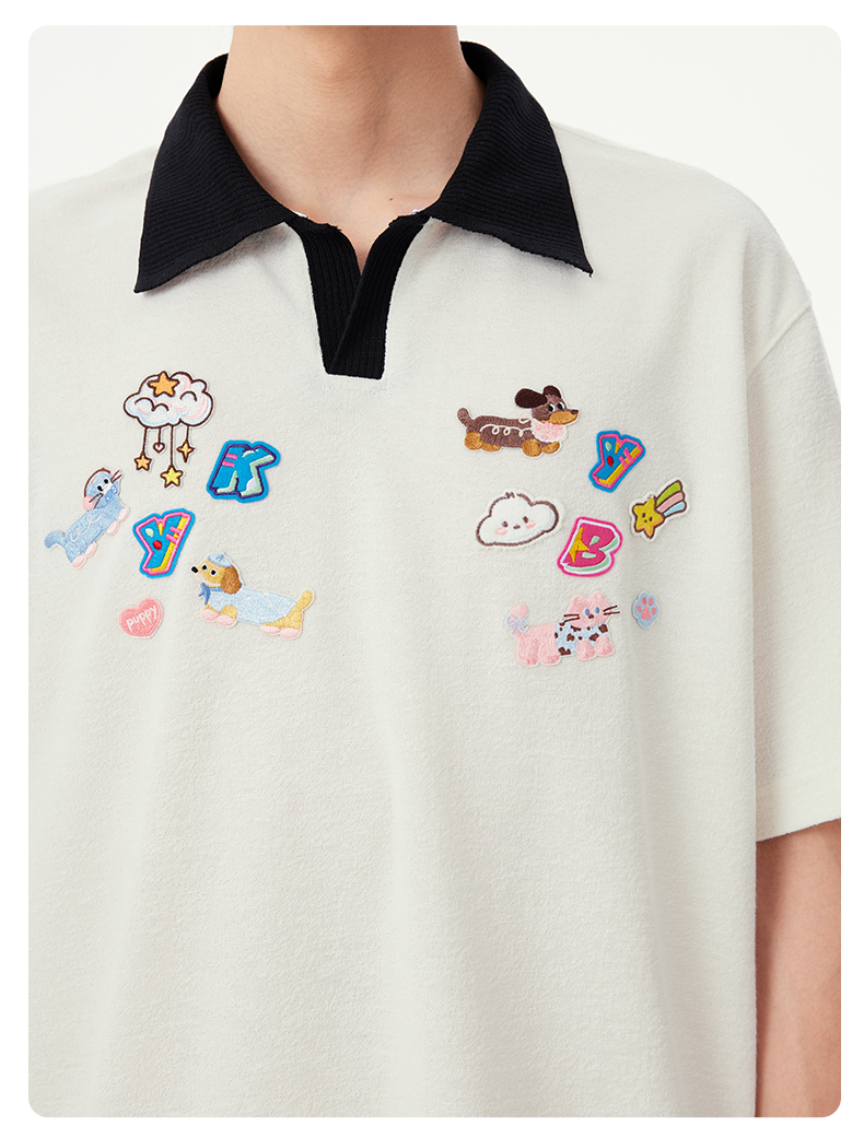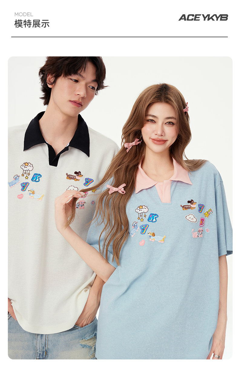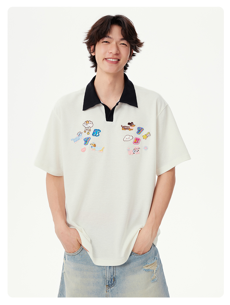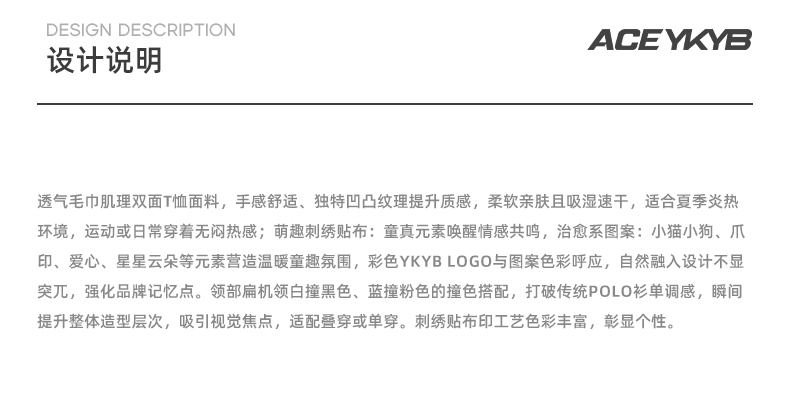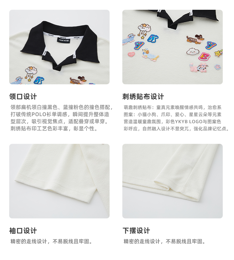 【徐艺洋同款】YKYB黄子韬POLO衫短袖双面透气舒适百搭萌趣刺绣童真凹凸纹理质感上衣Y52NPL028