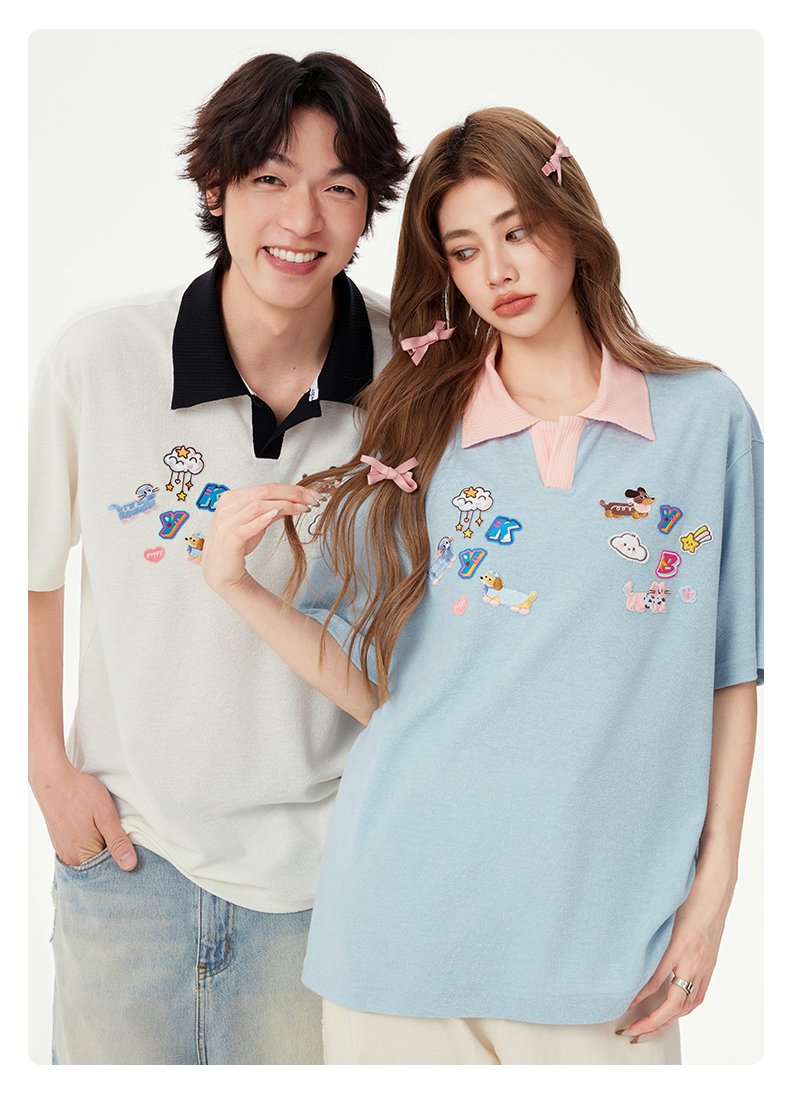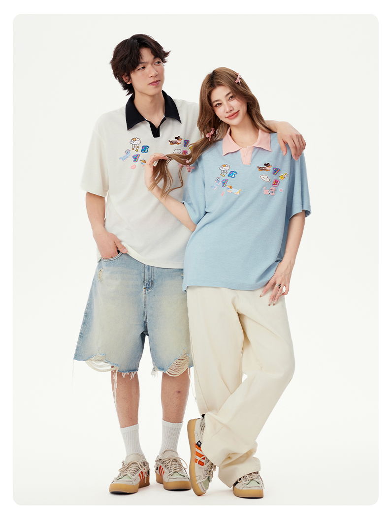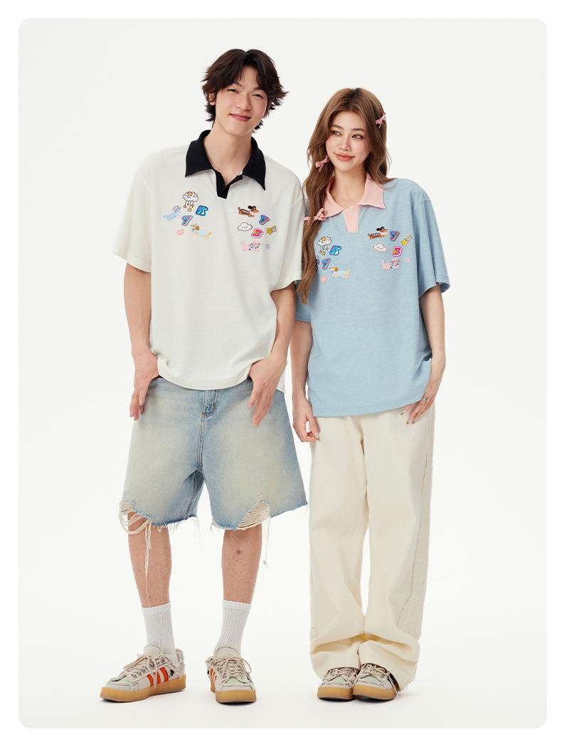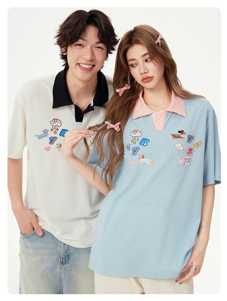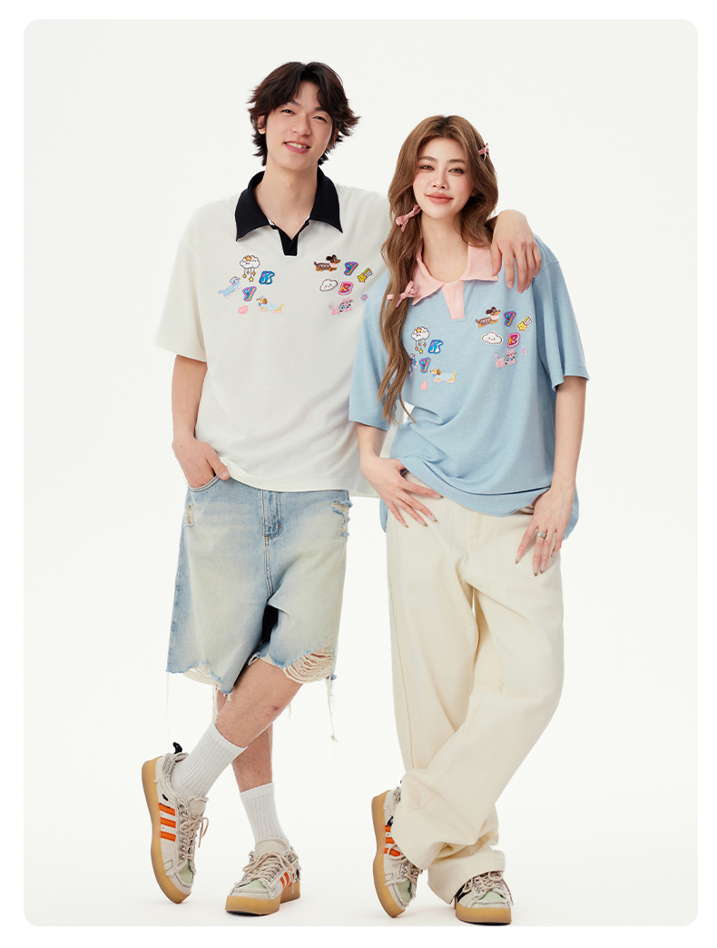 【徐艺洋同款】YKYB黄子韬POLO衫短袖双面透气舒适百搭萌趣刺绣童真凹凸纹理质感上衣Y52NPL028