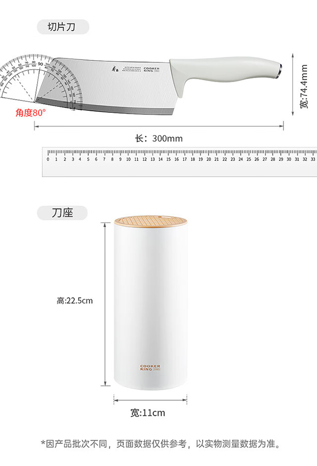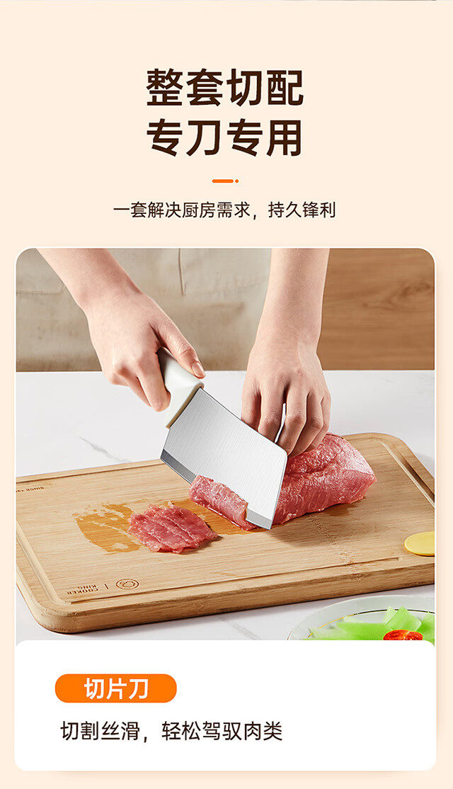 炊大皇菜刀家用厨房套装切片刀切菜刀切肉刀具厨师刀不锈钢水果刀 大白切片刀
