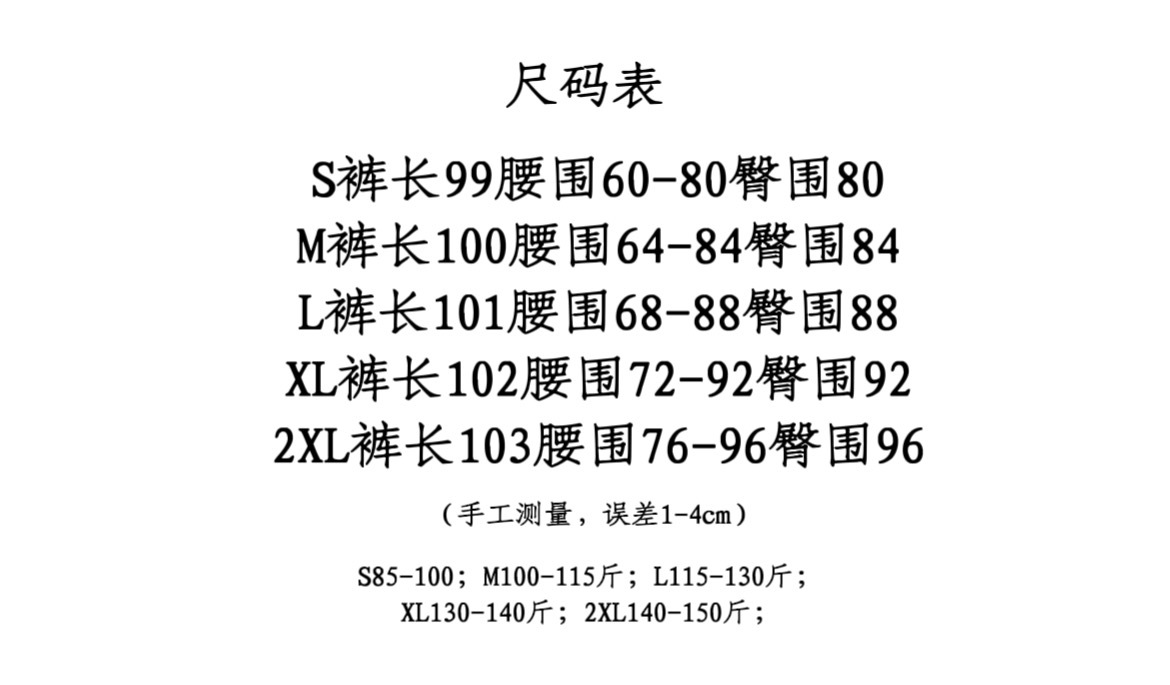 码数:S(建议85-100斤),M(建议100-115斤),L(建议115-130斤),XL(建议130-140斤),2XL (建议140-150斤)