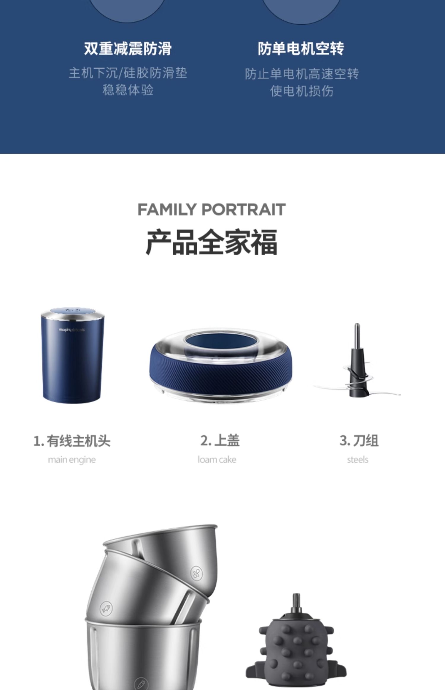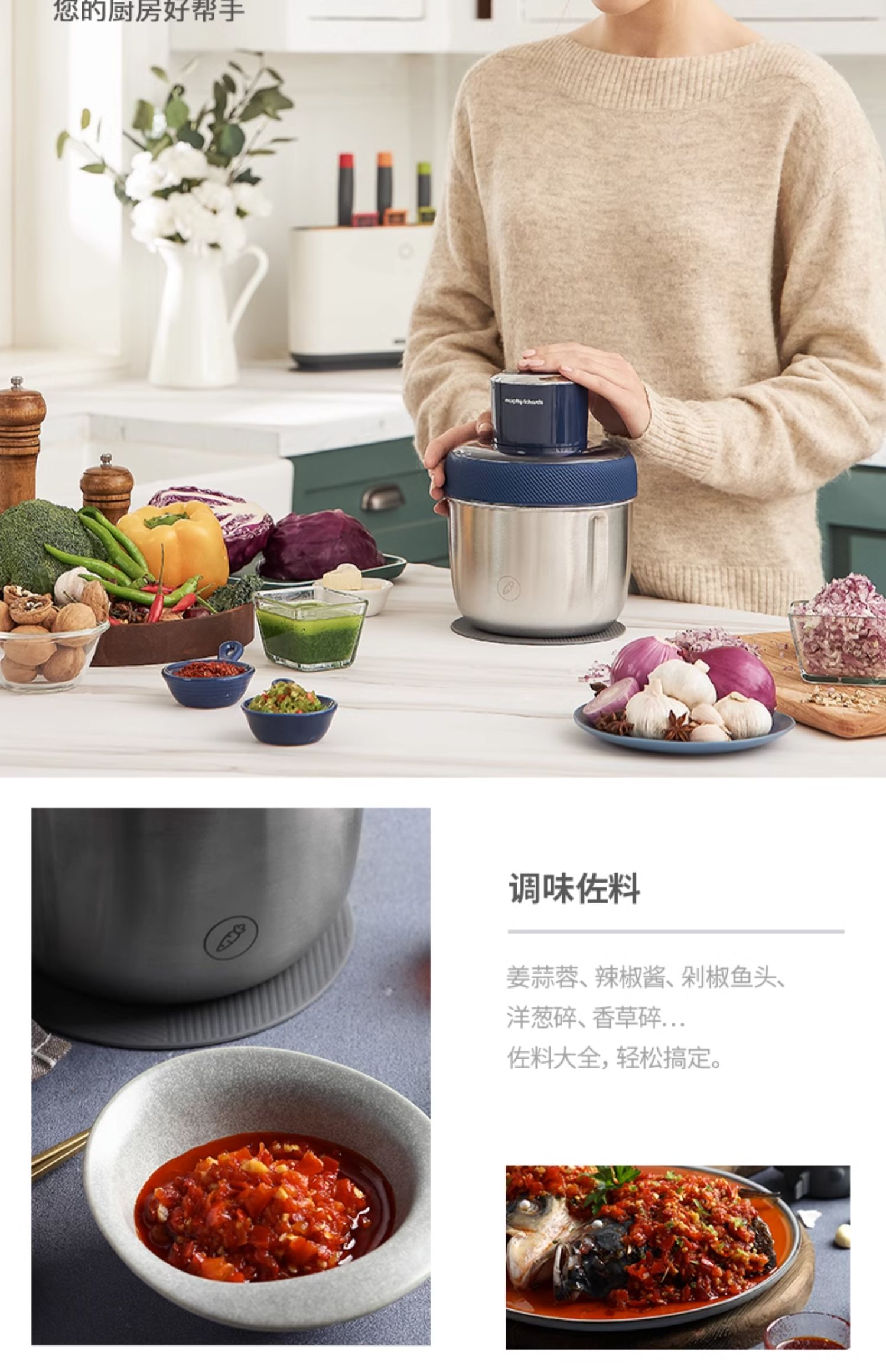 【50代金券】Morphy Richards/摩飞 绞肉机 家用电动小型多功能料理机不锈钢搅拌机MR9401A [福利品]
