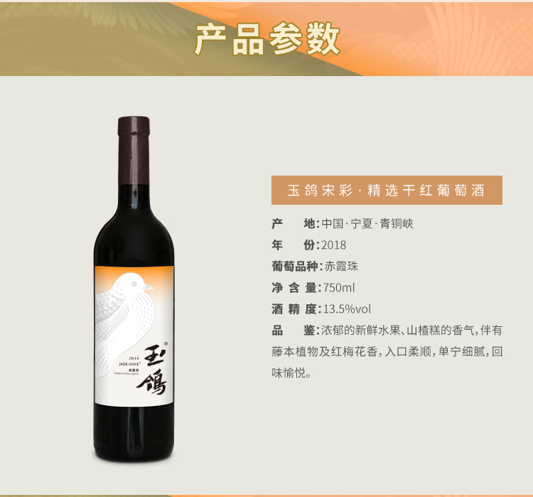 玉鸽宋彩精选干红葡萄酒