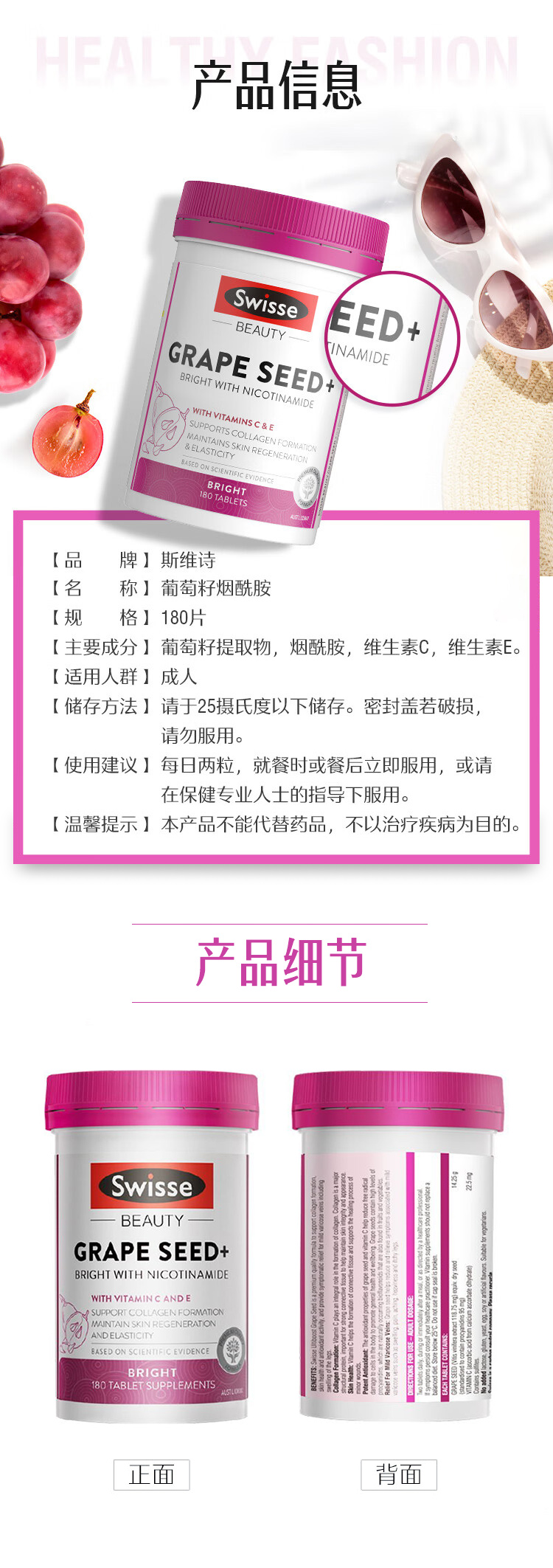 SWISSE斯维诗 高效版烟酰胺葡萄籽180片【安琪全球购.保税仓直发】