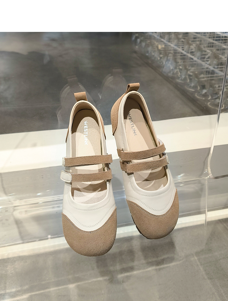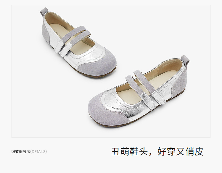 西遇丑萌玛丽珍鞋女新款早春魔术贴平底休闲鞋圆头软底单鞋D2747272