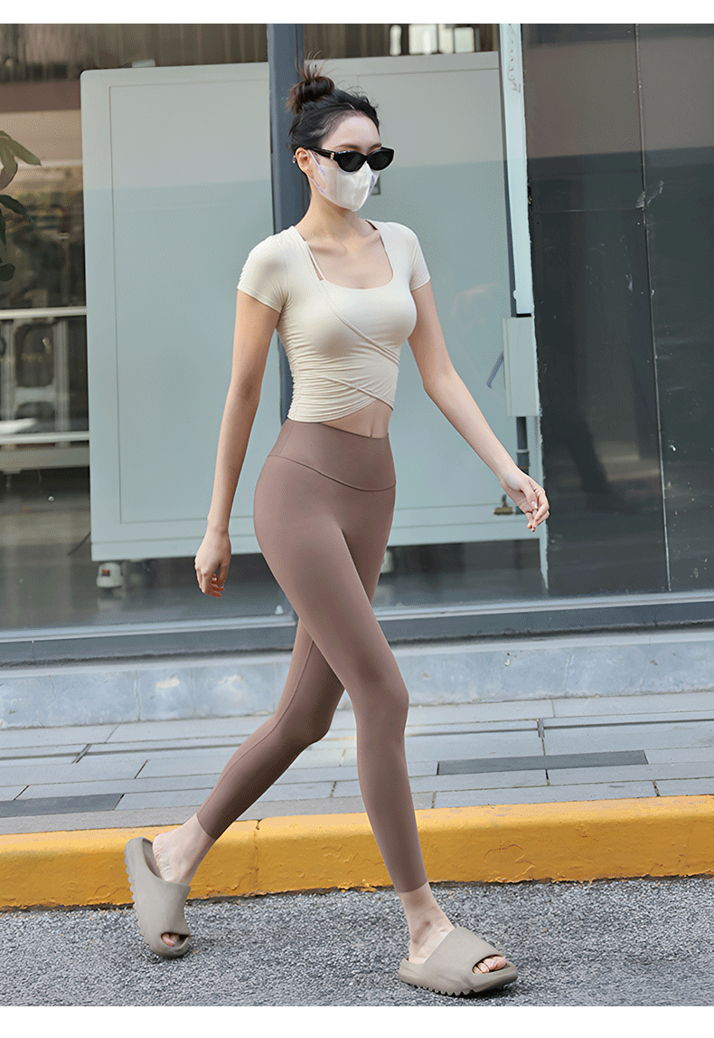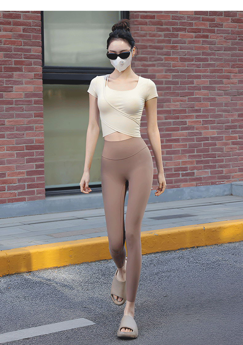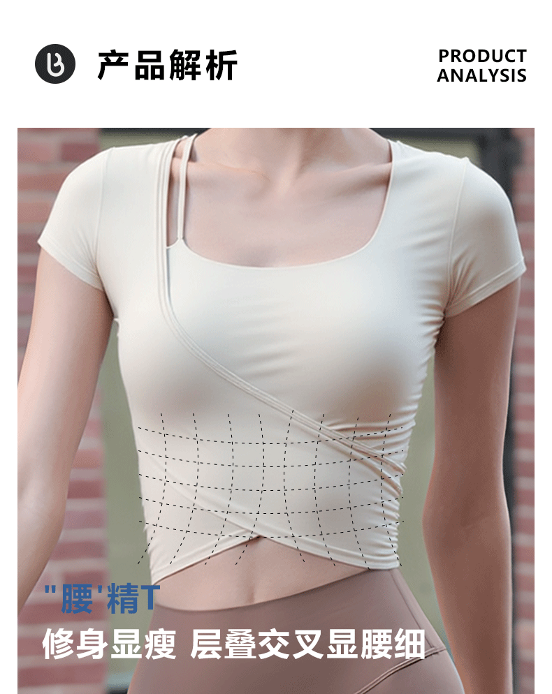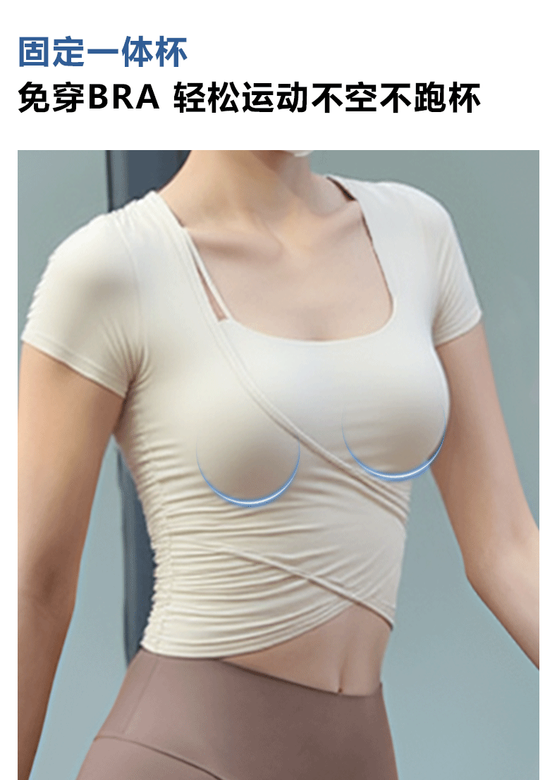 Beemen固定一体杯瑜伽服女运动上衣健身普拉提短袖t恤