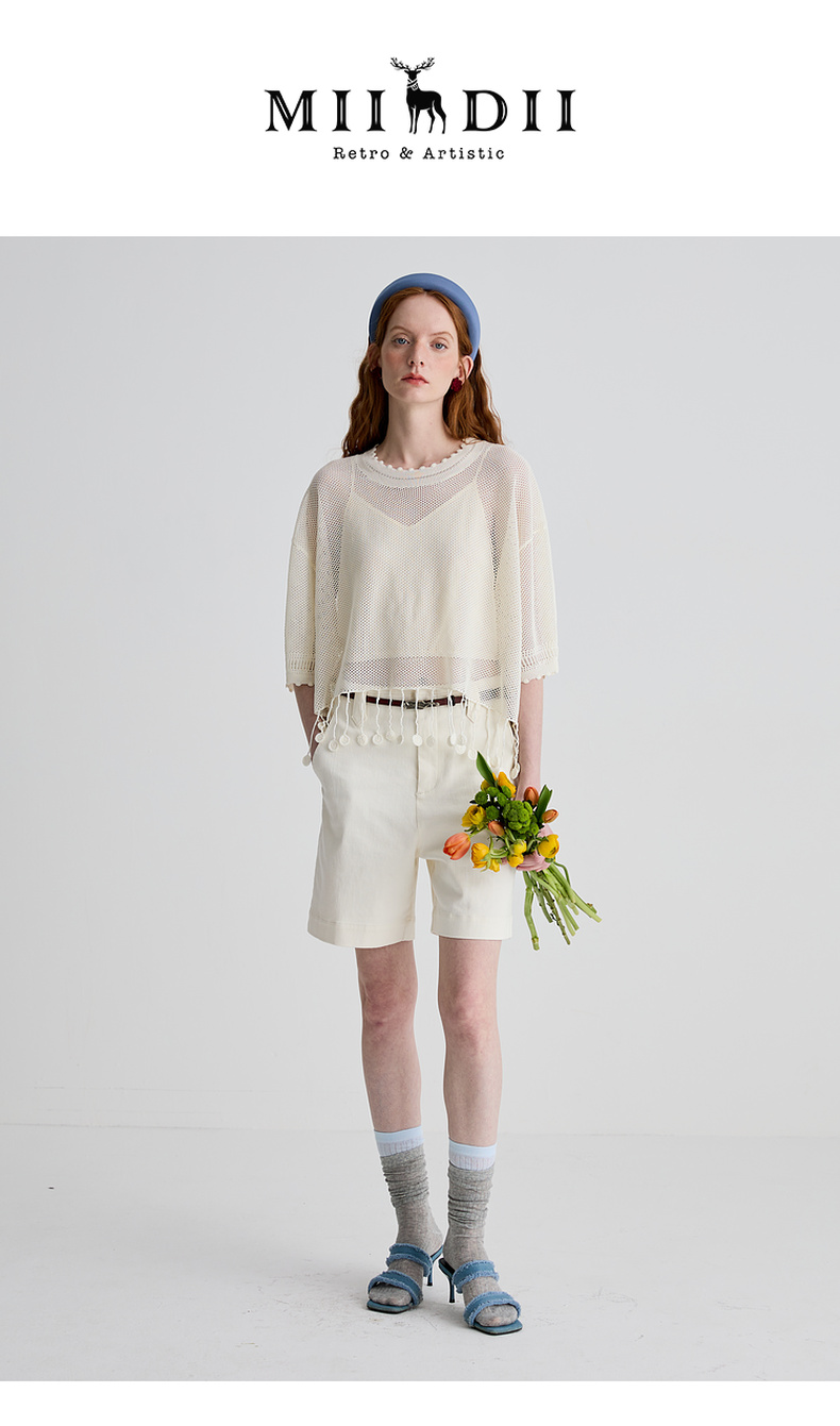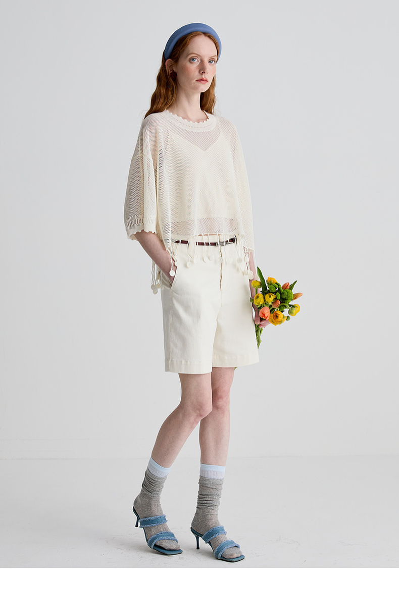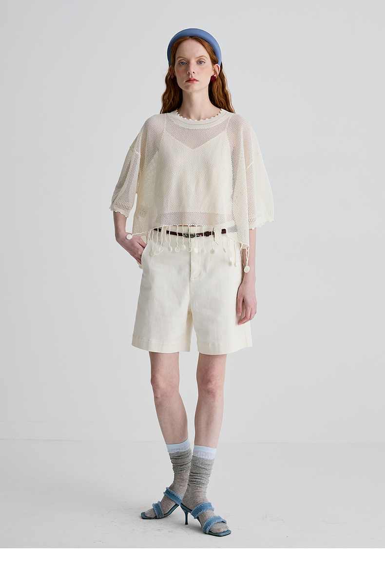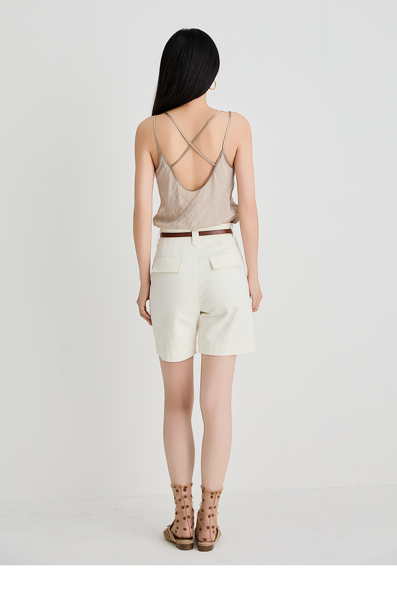 谜底短裤女2025夏新品百搭日常百搭奶白色合身弹力裤子252MK0689