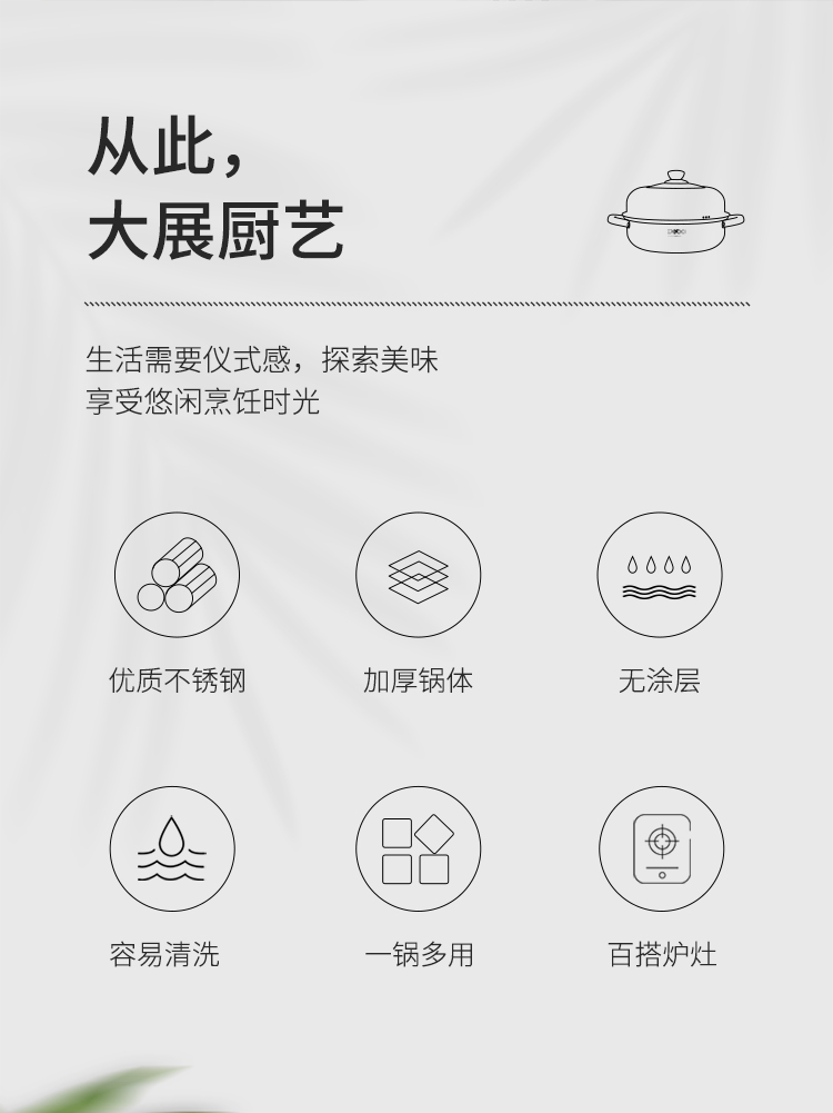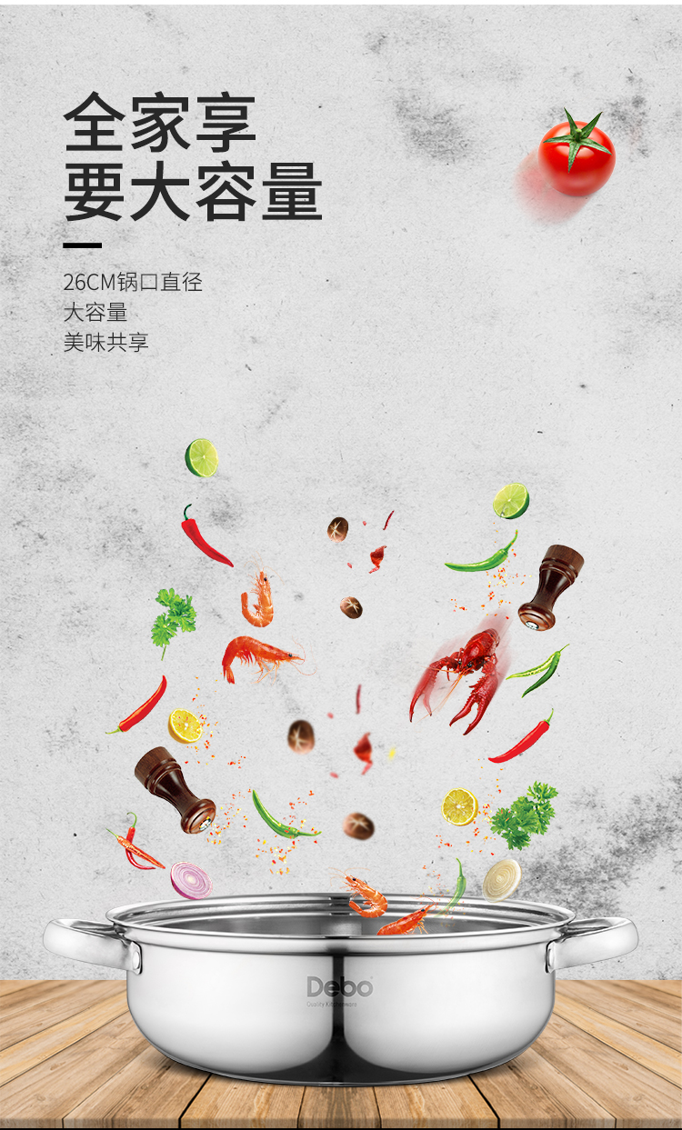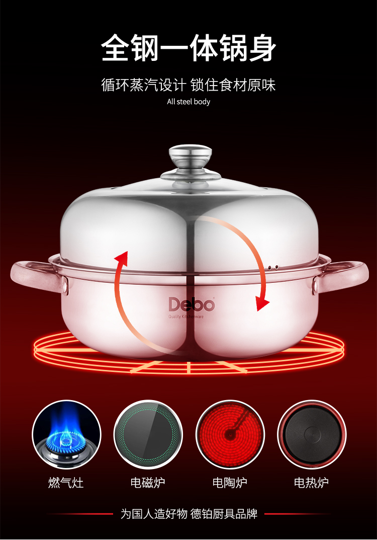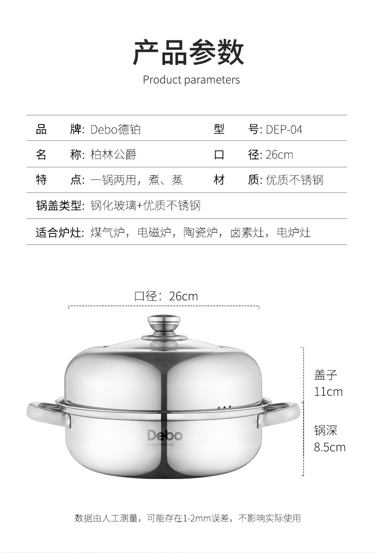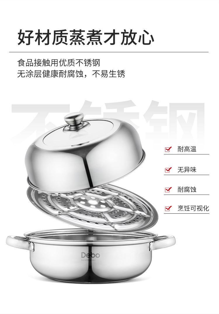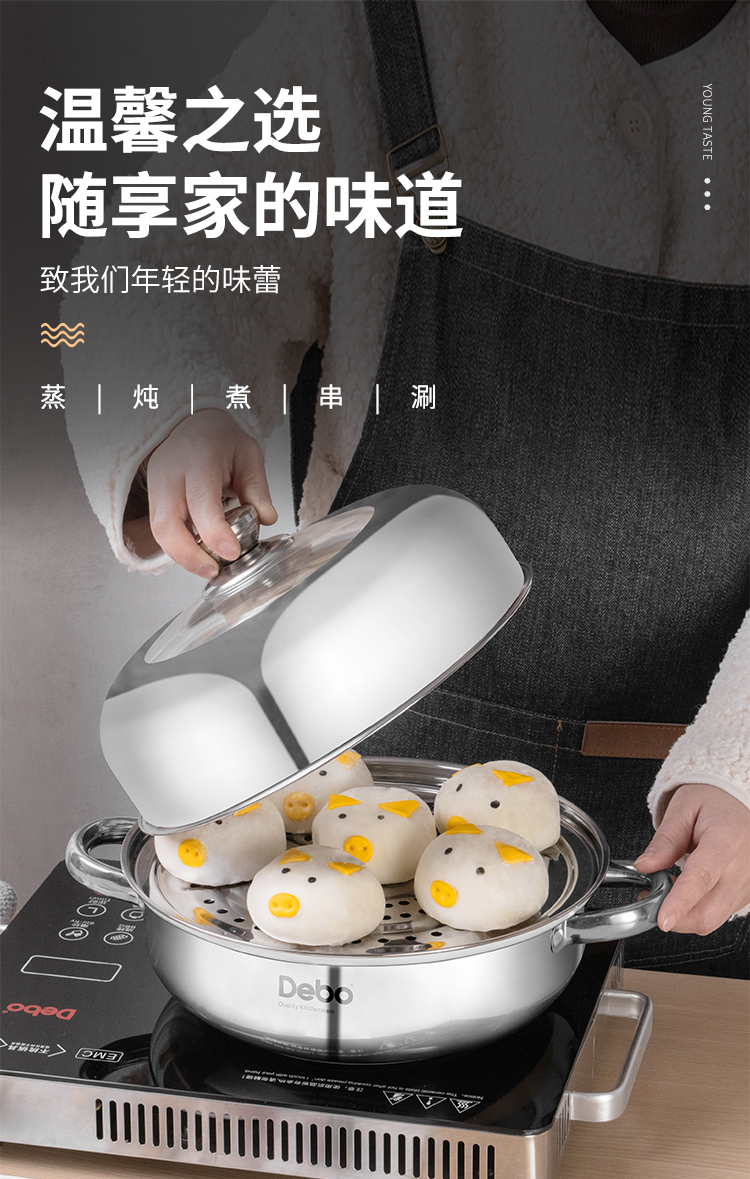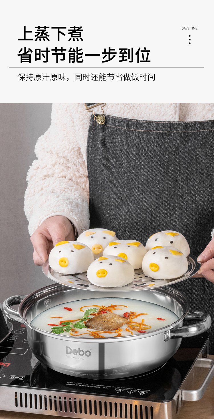 Debo德铂柏林公爵蒸锅汤锅不锈钢多用锅26cm燃气电磁炉通用DEP-04