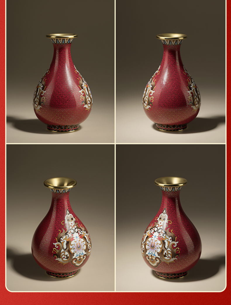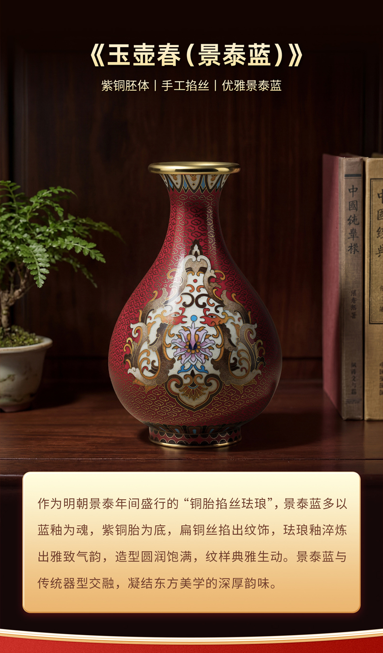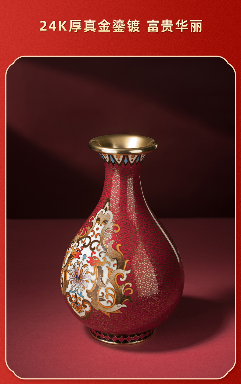 铜师傅《玉壶春(景泰蓝)》客厅紫铜花瓶摆件 家居装饰工艺礼品