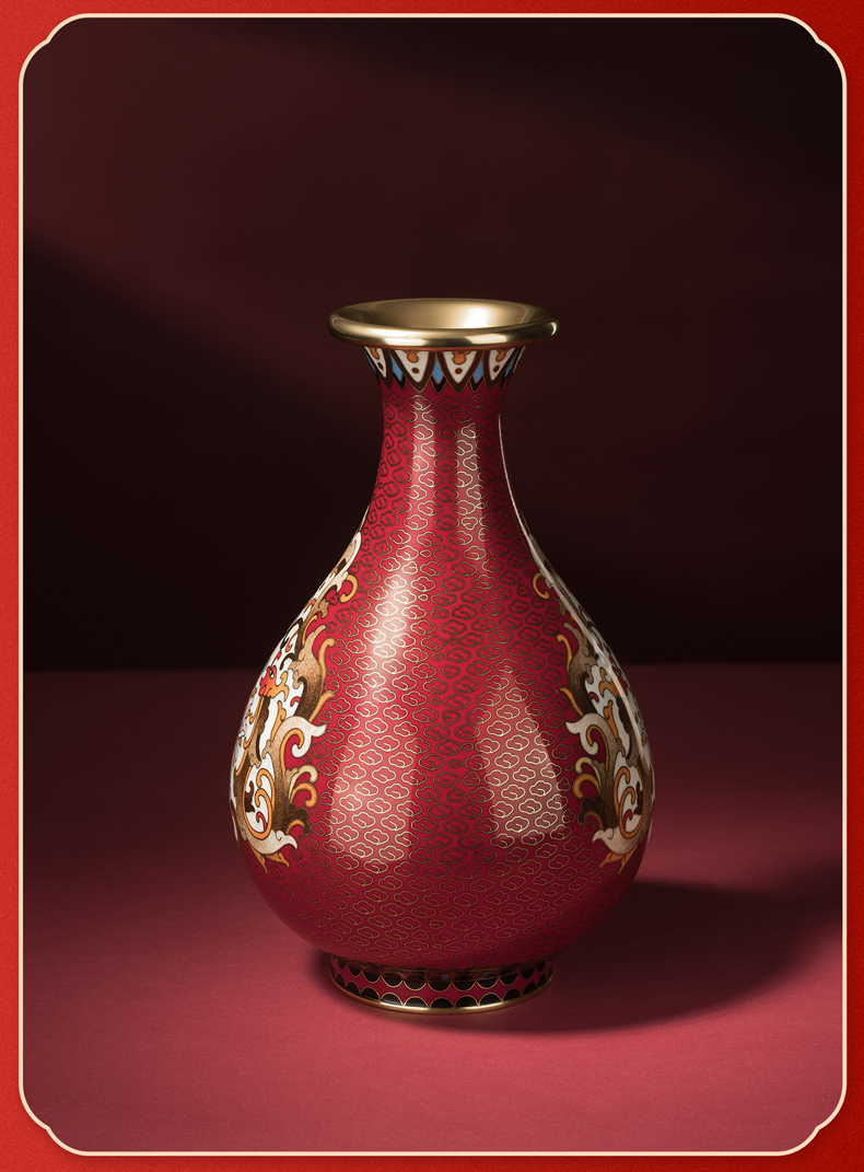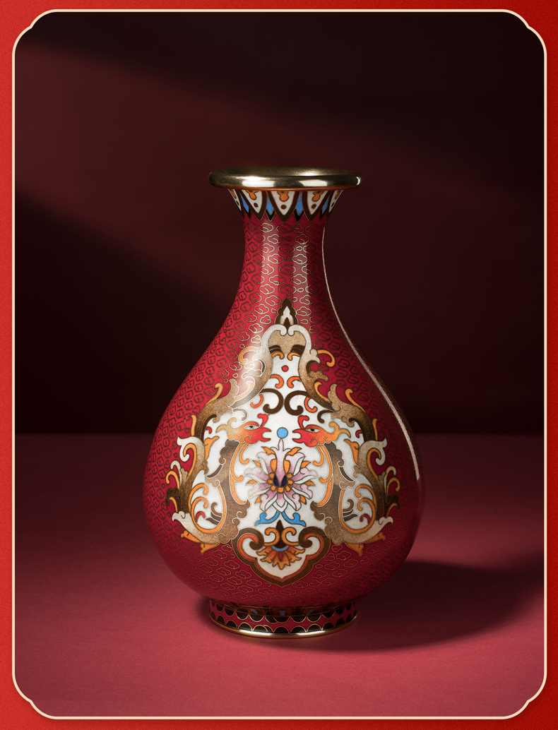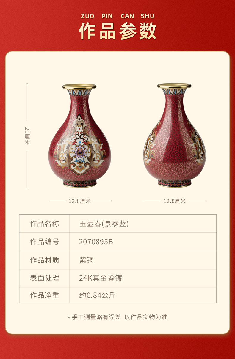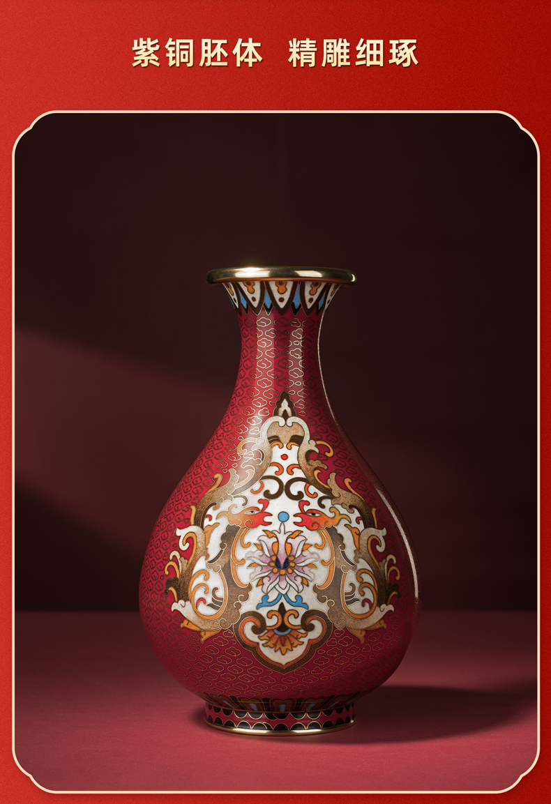 铜师傅《玉壶春(景泰蓝)》客厅紫铜花瓶摆件 家居装饰工艺礼品