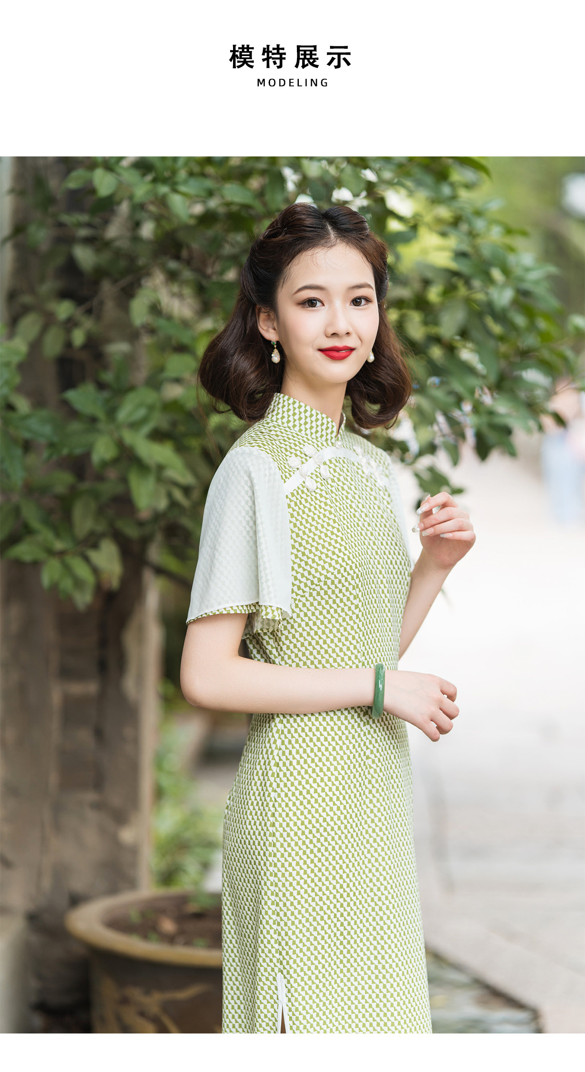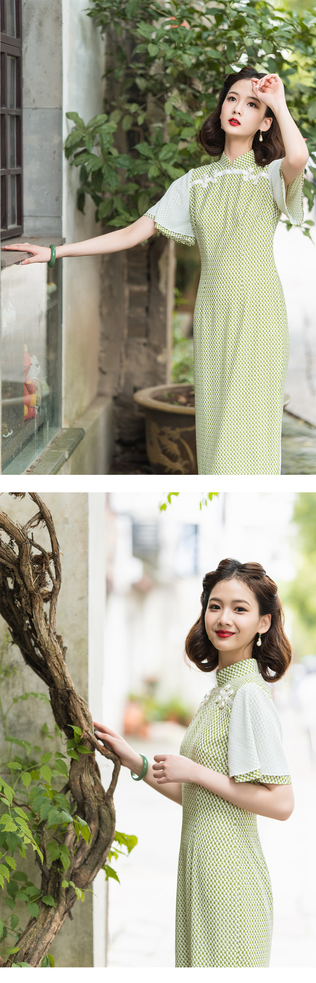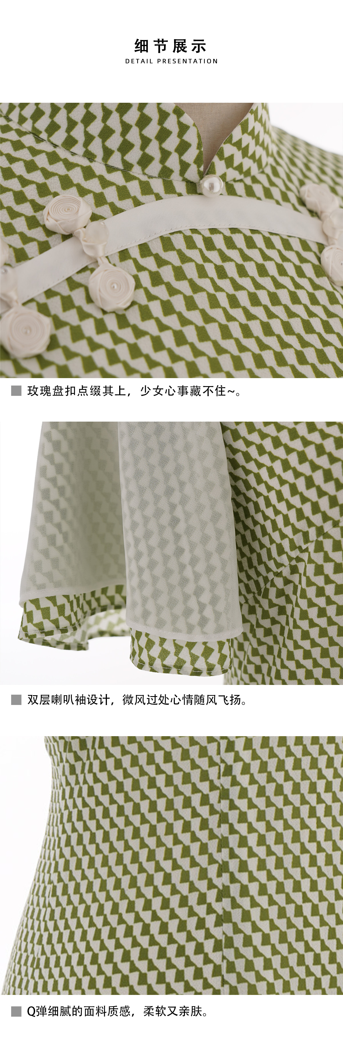 荷言GL 盼兮 改良旗袍清新绿喇叭袖少女感(特价)