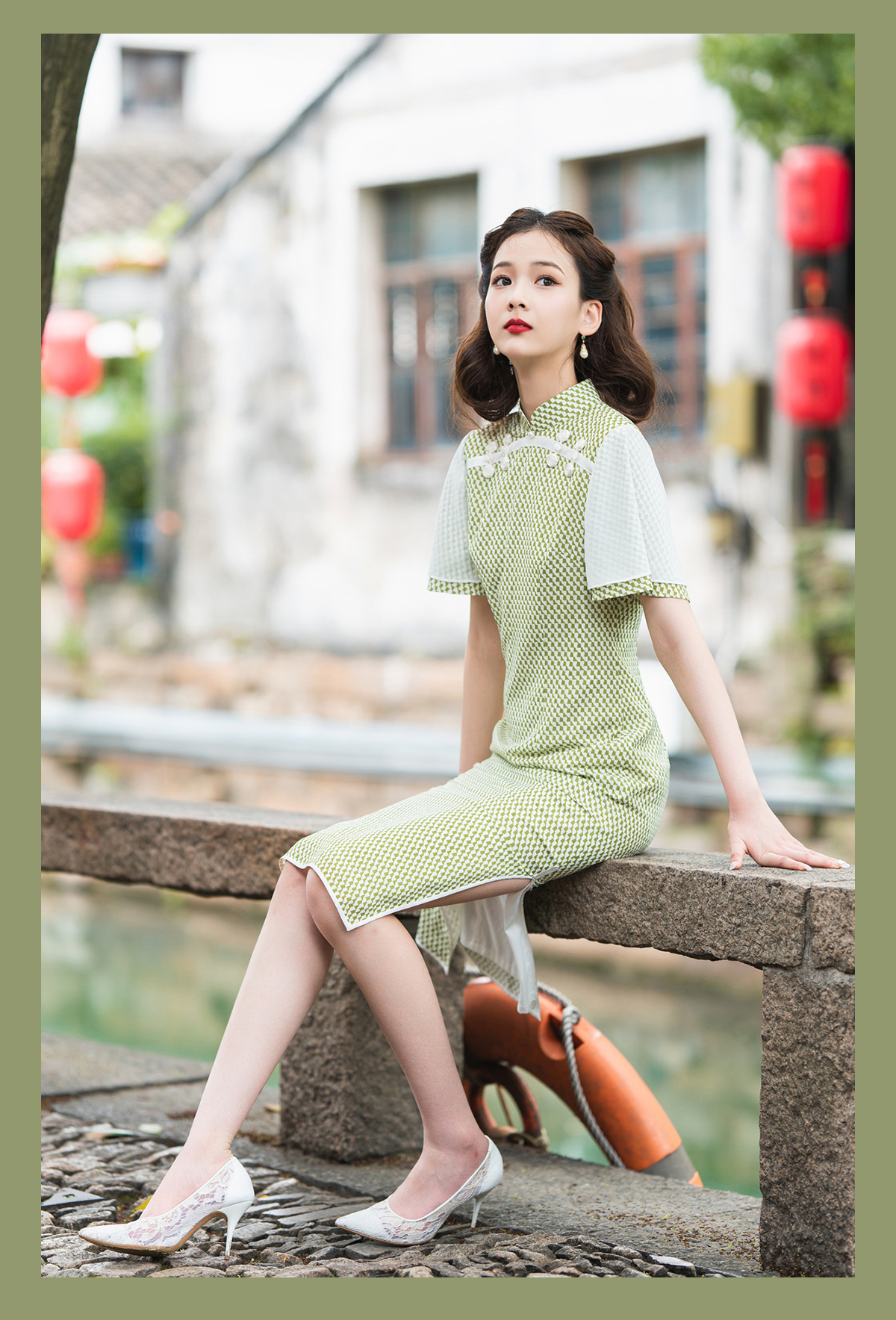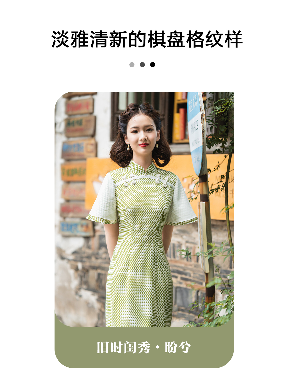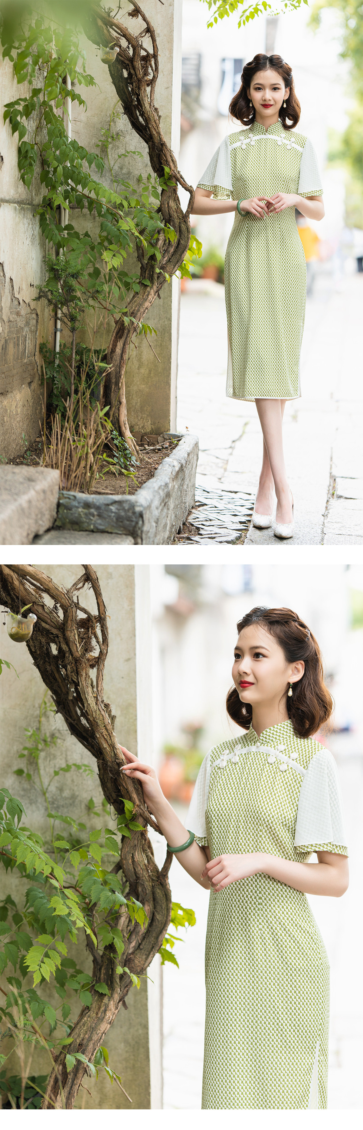 荷言GL 盼兮 改良旗袍清新绿喇叭袖少女感(特价)