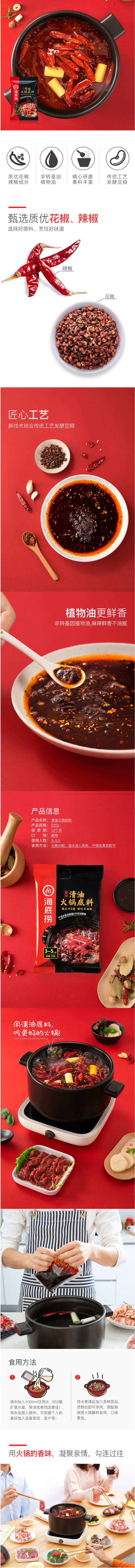 海底捞清油麻辣火锅底料鲜香正宗四川麻辣烫调料家用220g