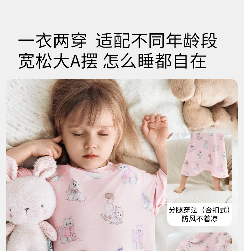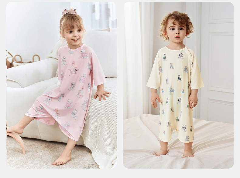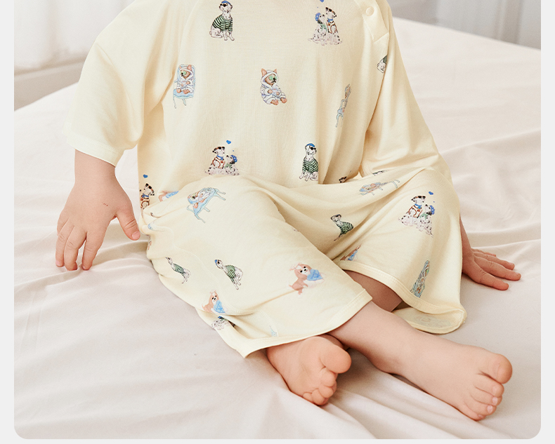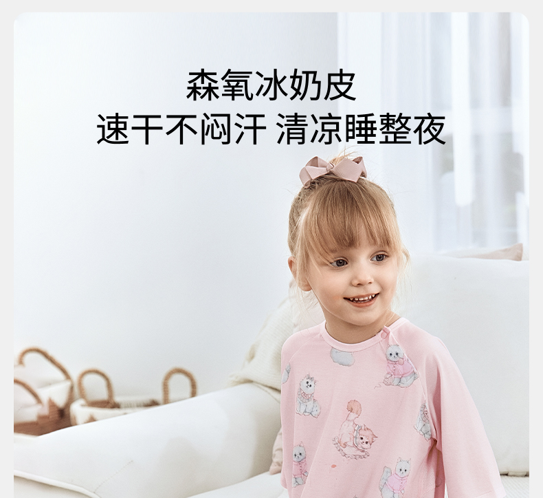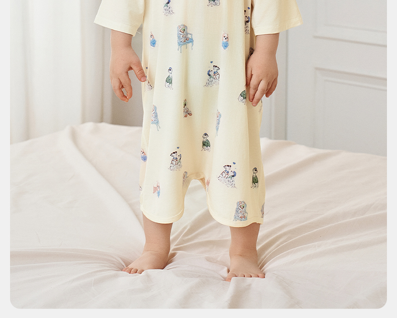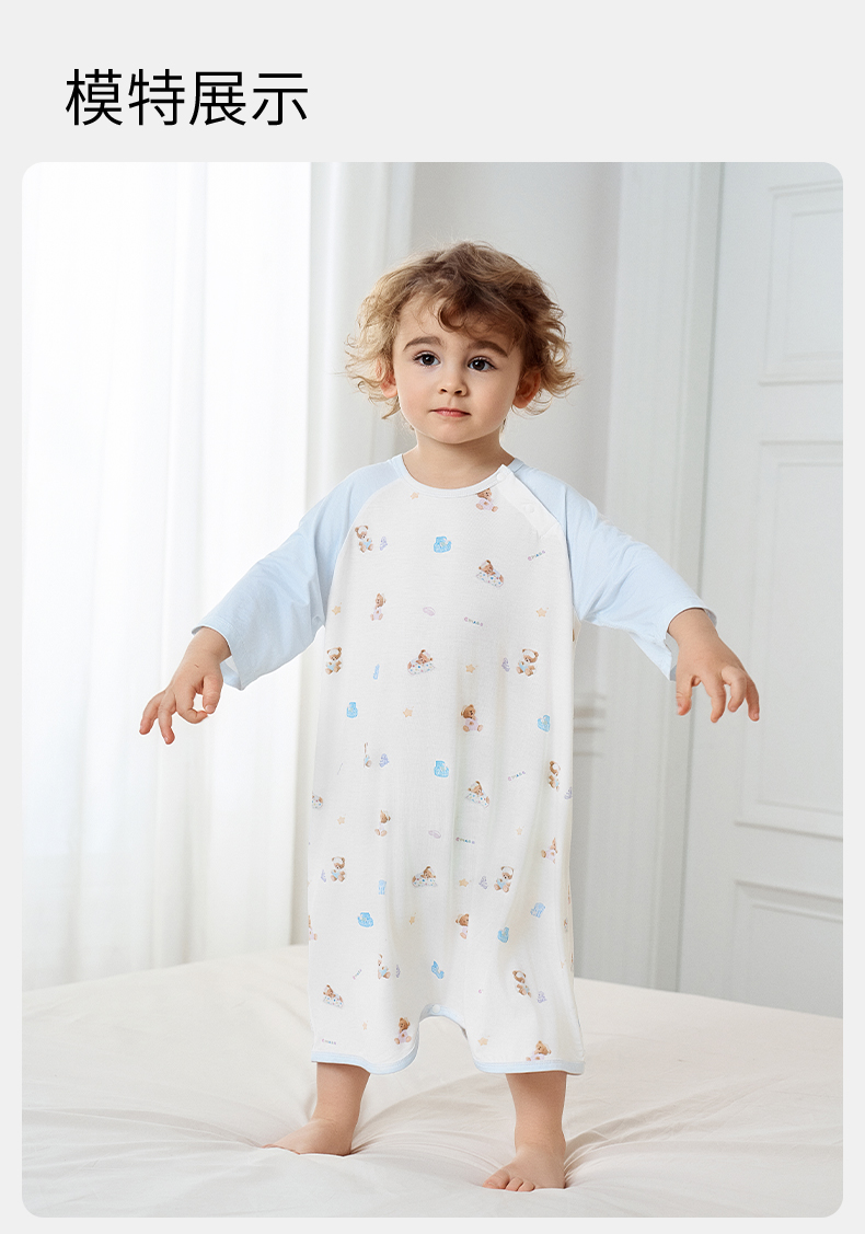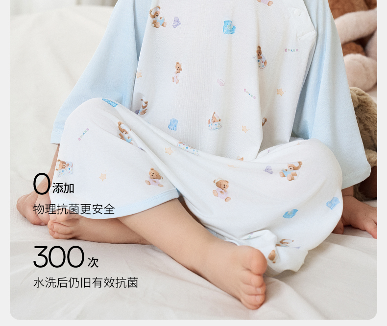 【宝宝安睡】嫚熙儿童家居服空调服超柔冰奶皮宝宝睡衣夏短袖睡袍