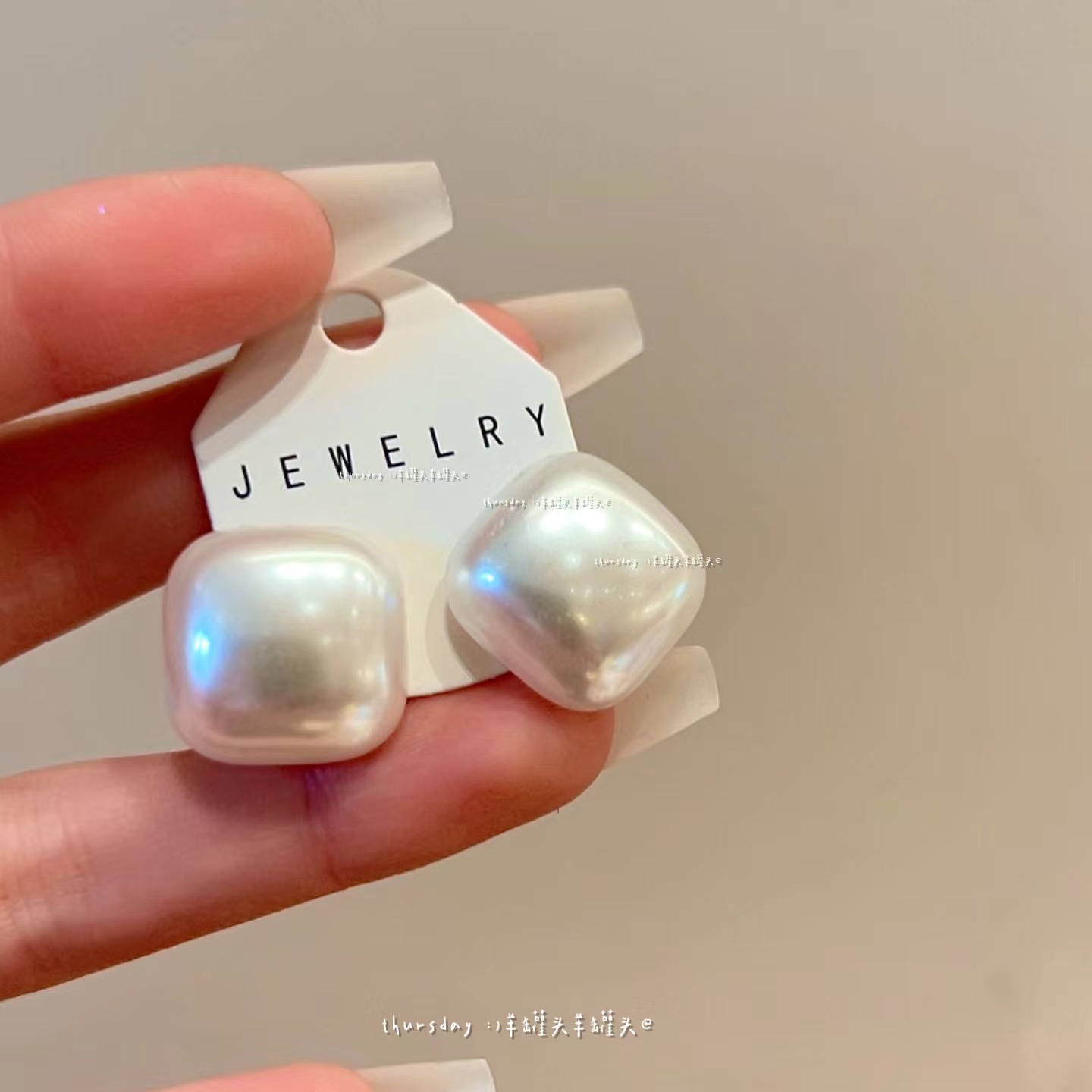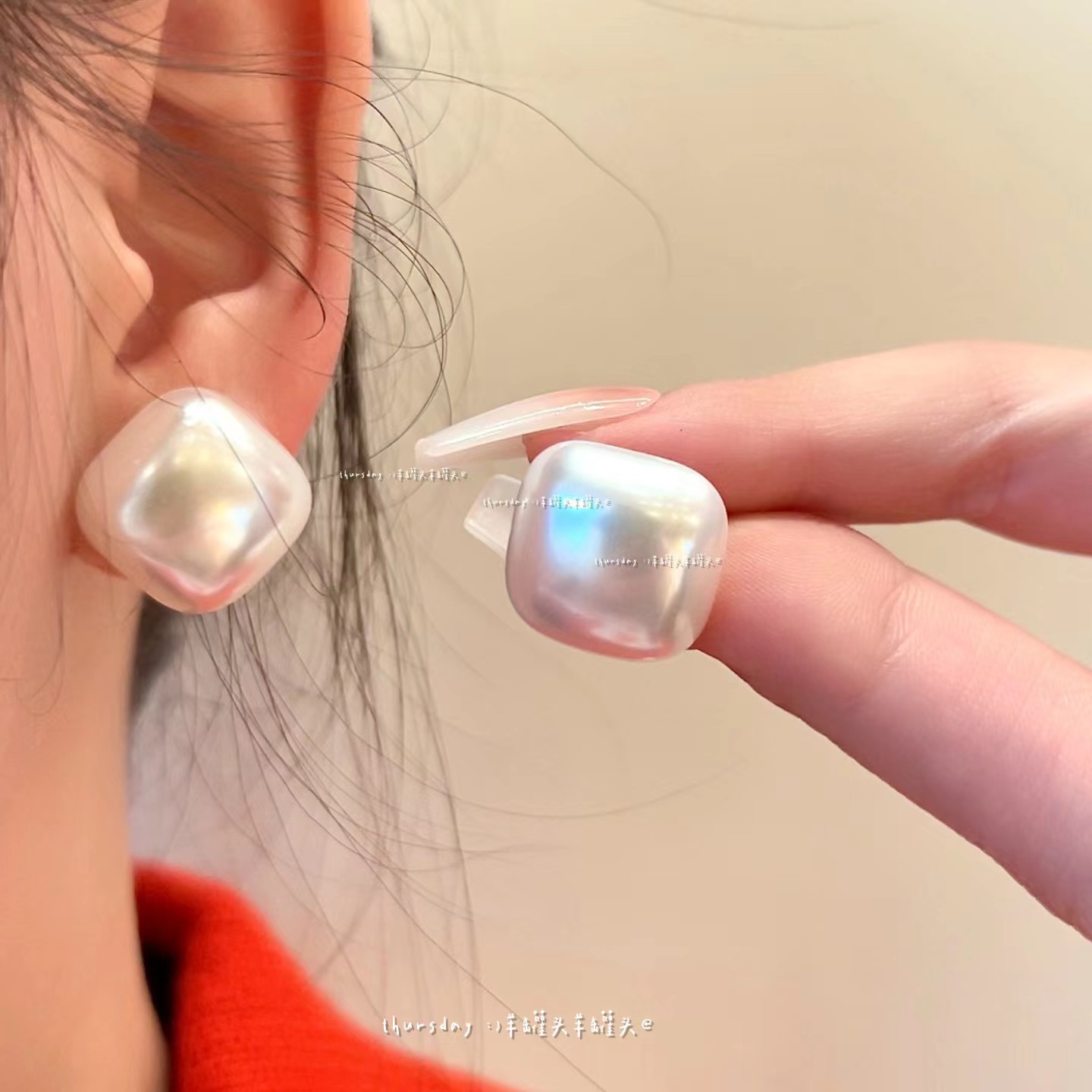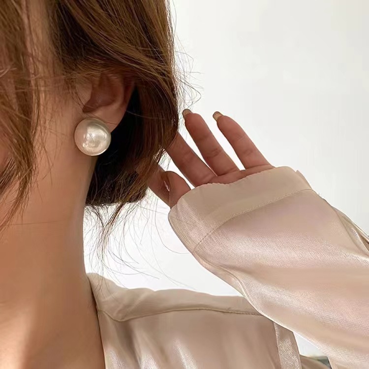 【爆款推荐】防银针高亮大珍珠几何耳钉女简约小众气质网红几何珍珠百搭耳饰女