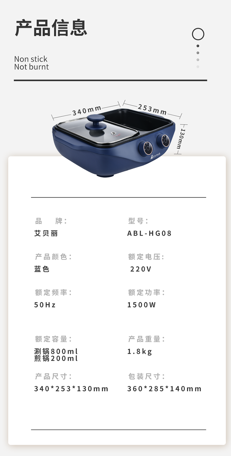 艾贝丽 | 多功能电火锅 ABL-HG08小家电