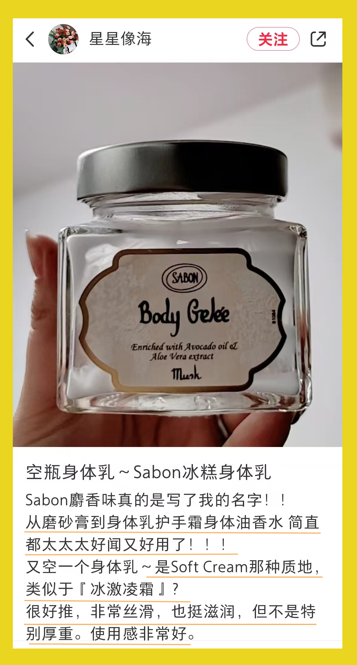 【品名】sabon冰糕小奶砖身体凝霜200ml