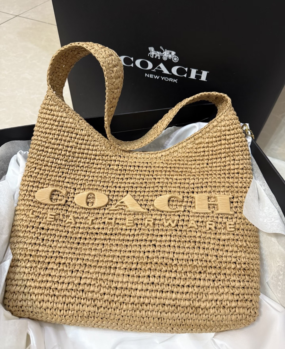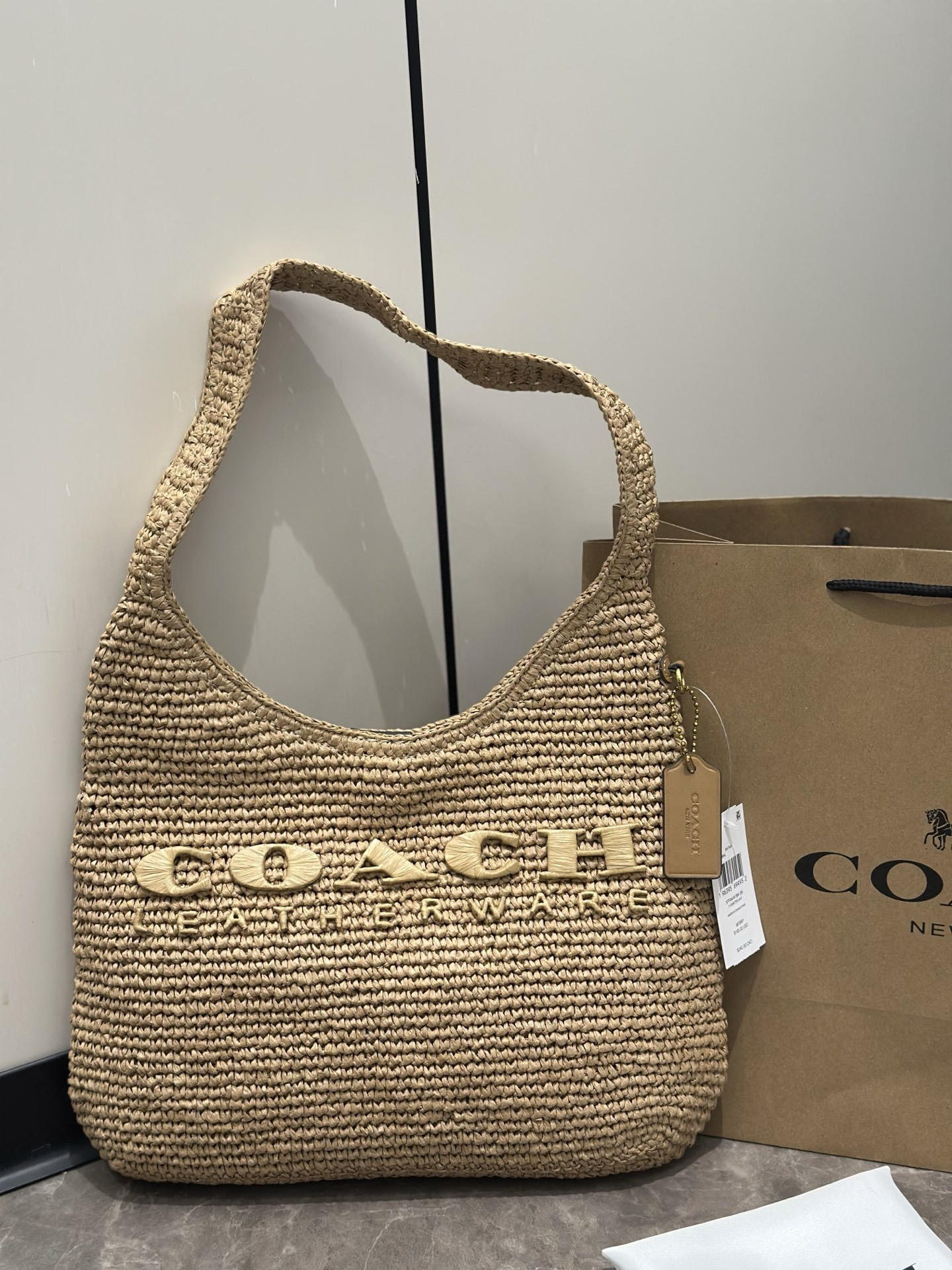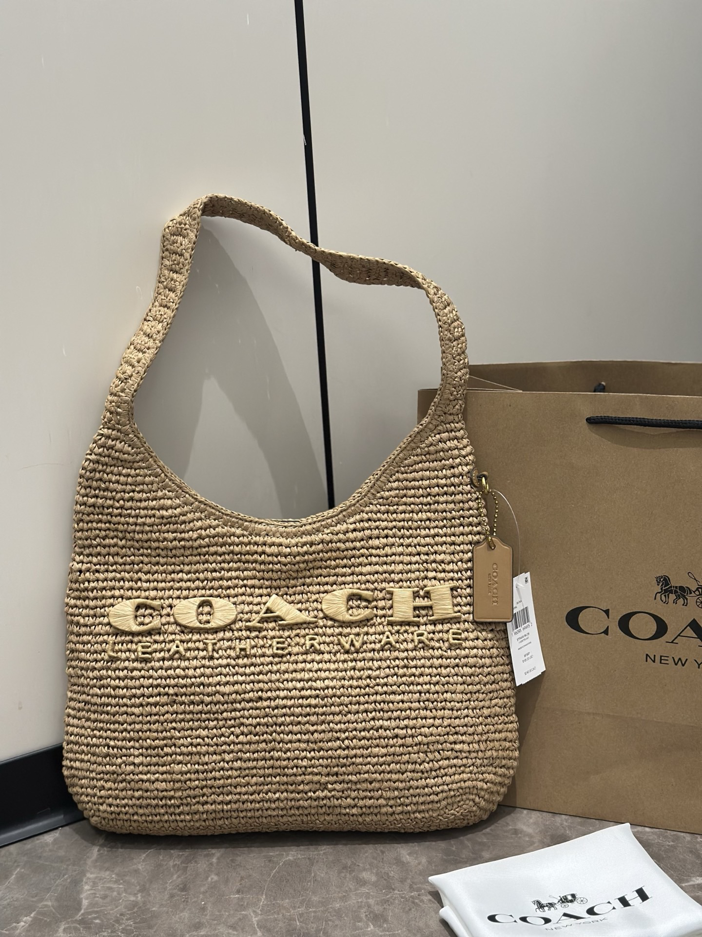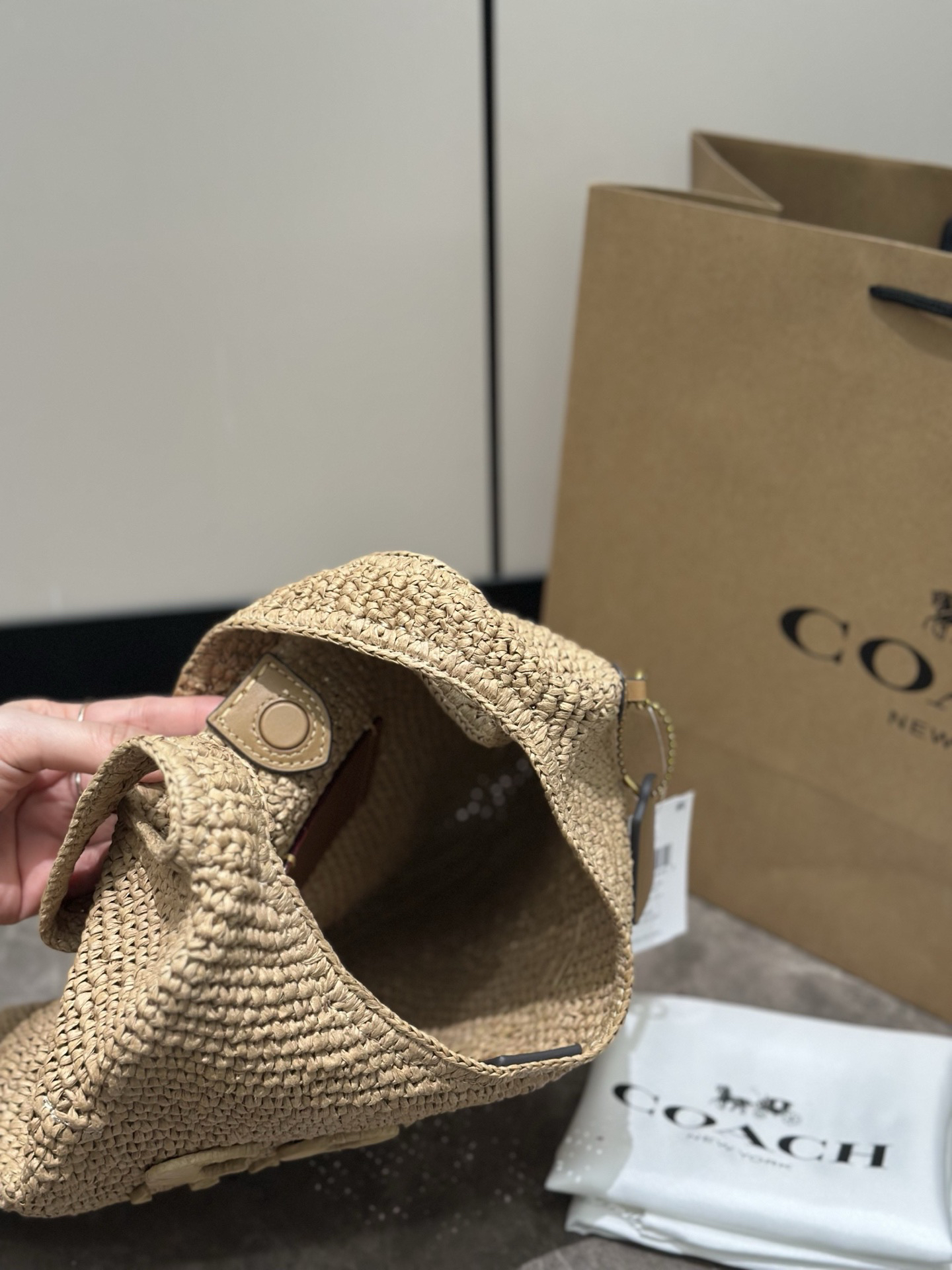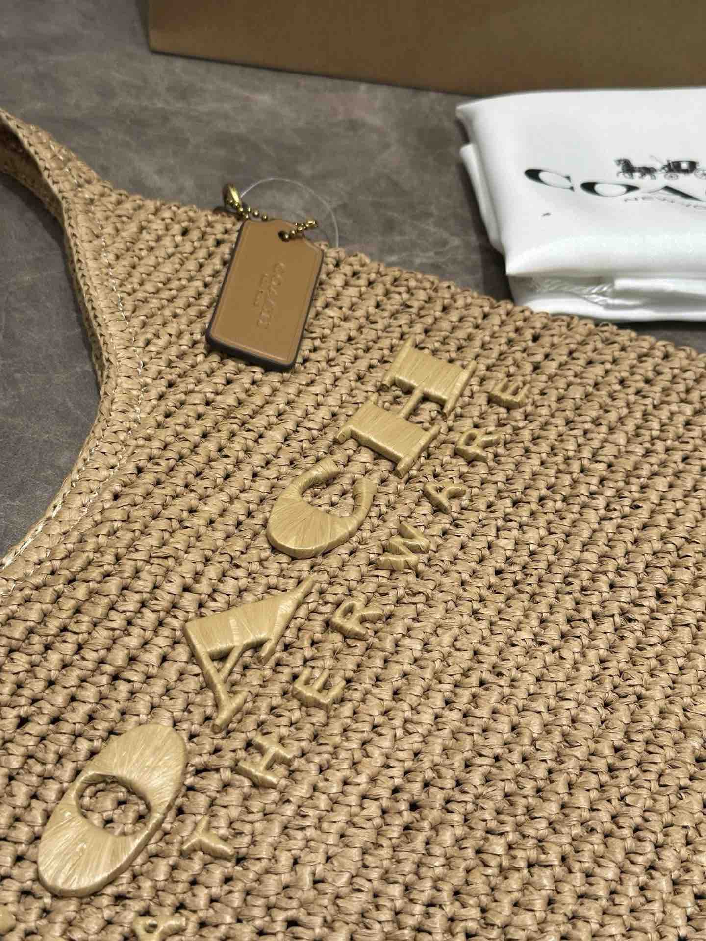 代购级 蔻驰𝗰𝗼𝗮𝗰.𝟰月新品𝗯𝗿𝗼𝗼𝗸𝗹𝘆𝗻 布鲁克林拉菲草编包