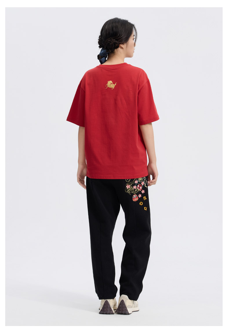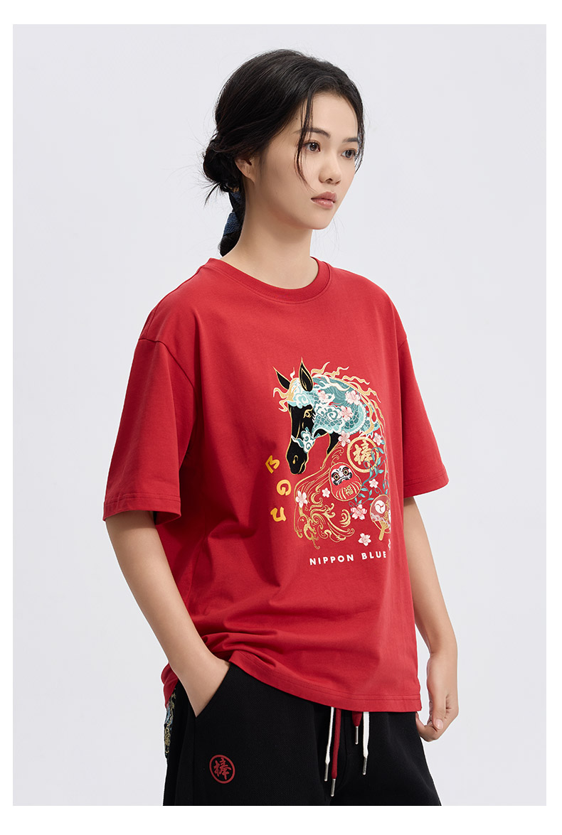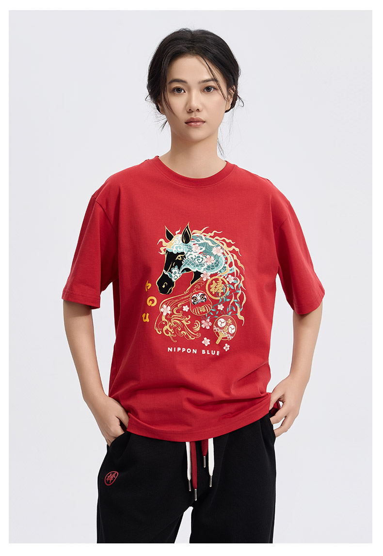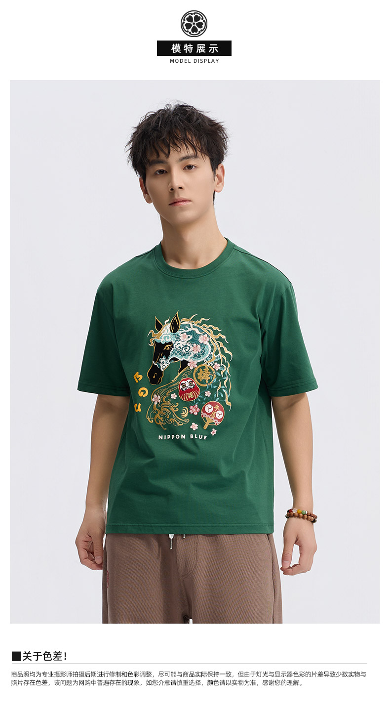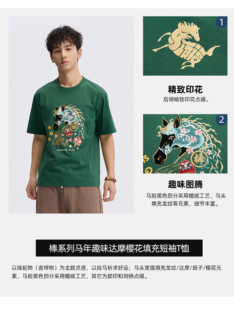 ONIARAI/鬼洗26春季棒系列马年趣味达摩樱花填充短袖T恤男N840295