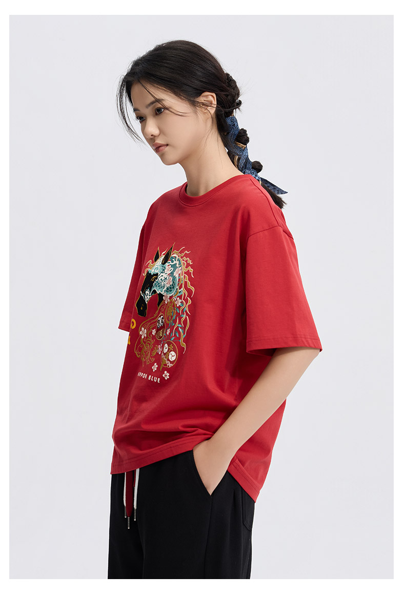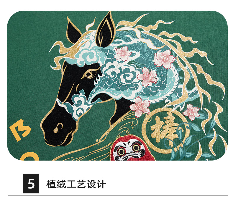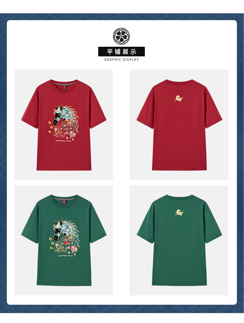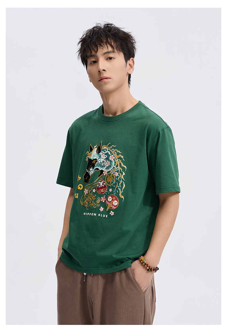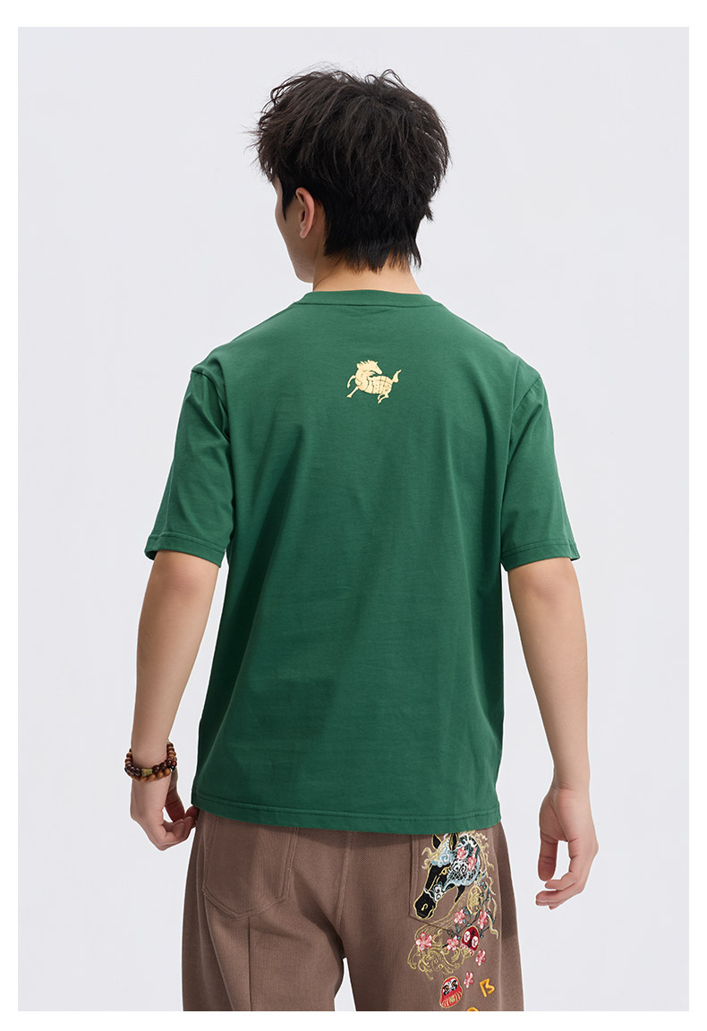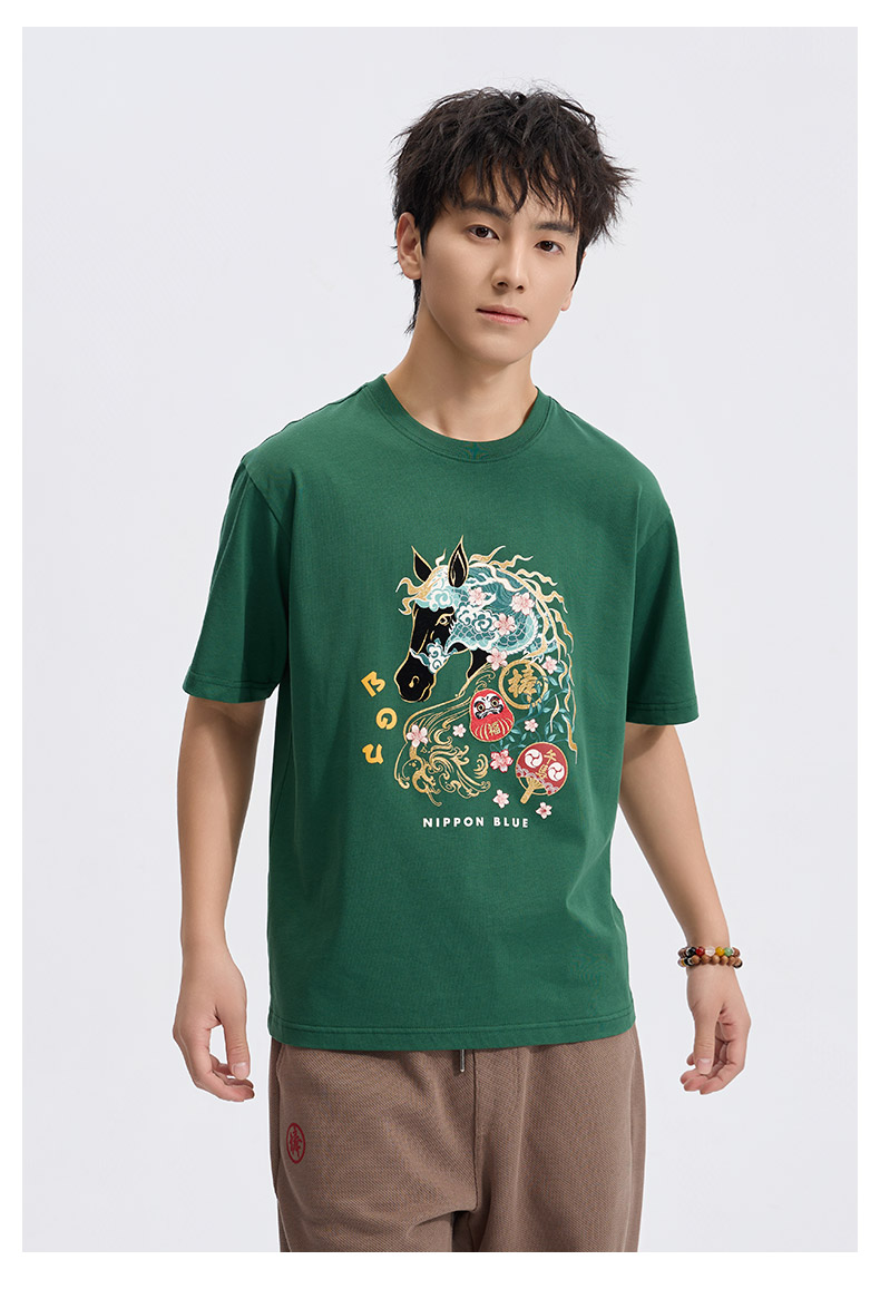 ONIARAI/鬼洗26春季棒系列马年趣味达摩樱花填充短袖T恤男N840295