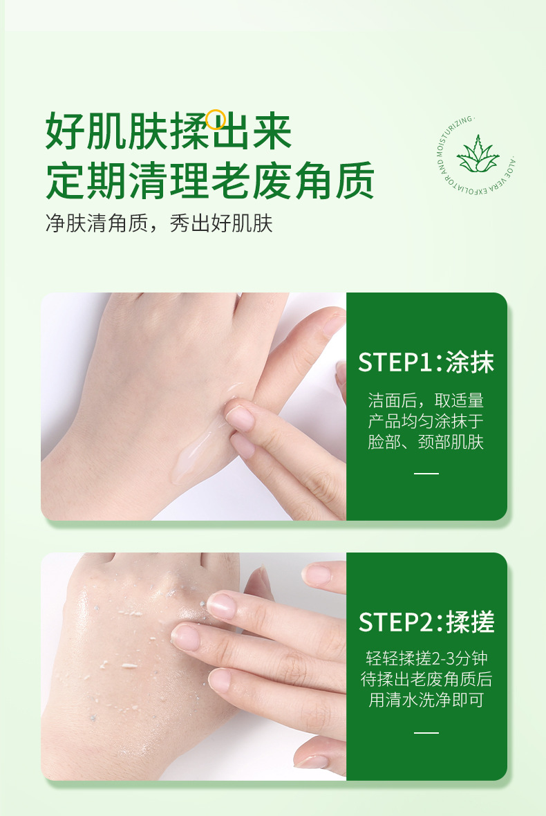 【限时购!拍下送旅行装!】芦荟温和去角质脸部搓泥啫喱 身体清洁去死皮 面部磨砂膏