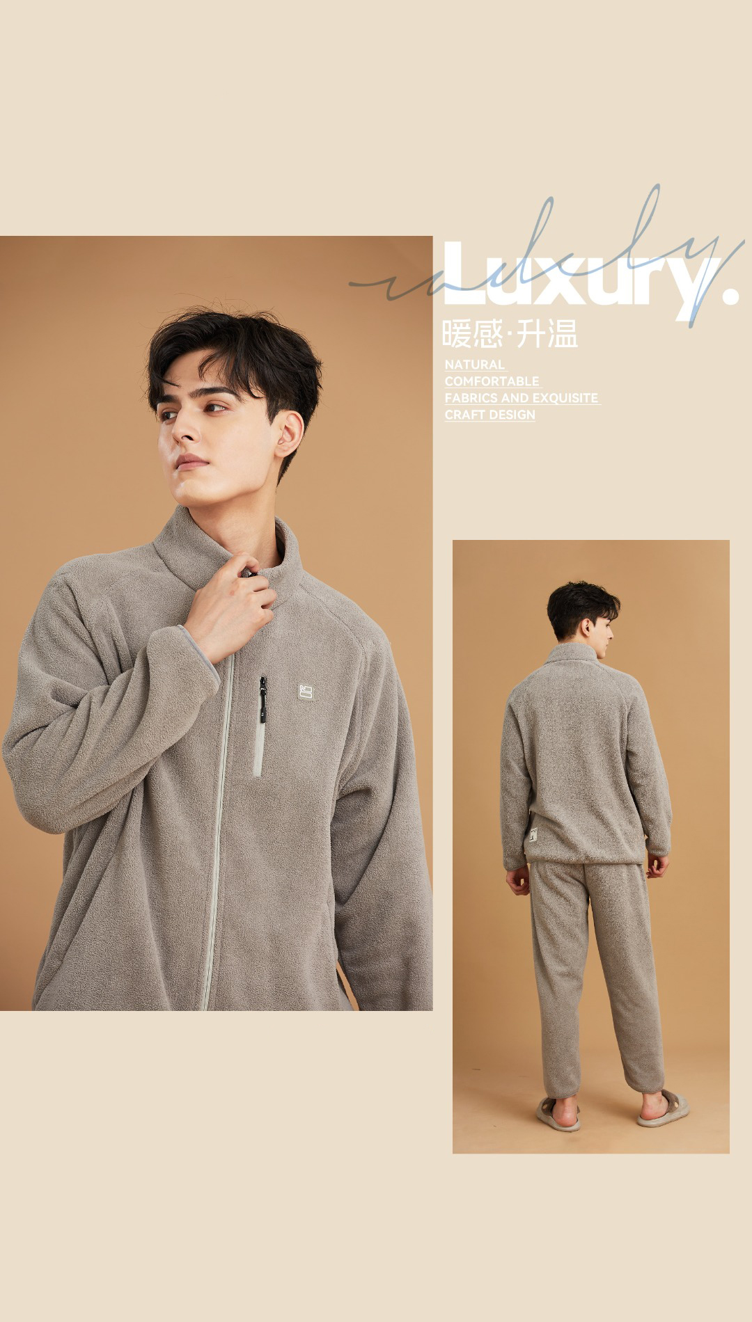 男士冬季家居服果粒绒传统男套居家套装【24R31030】