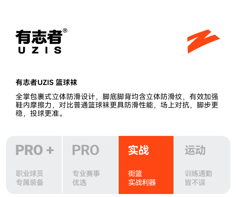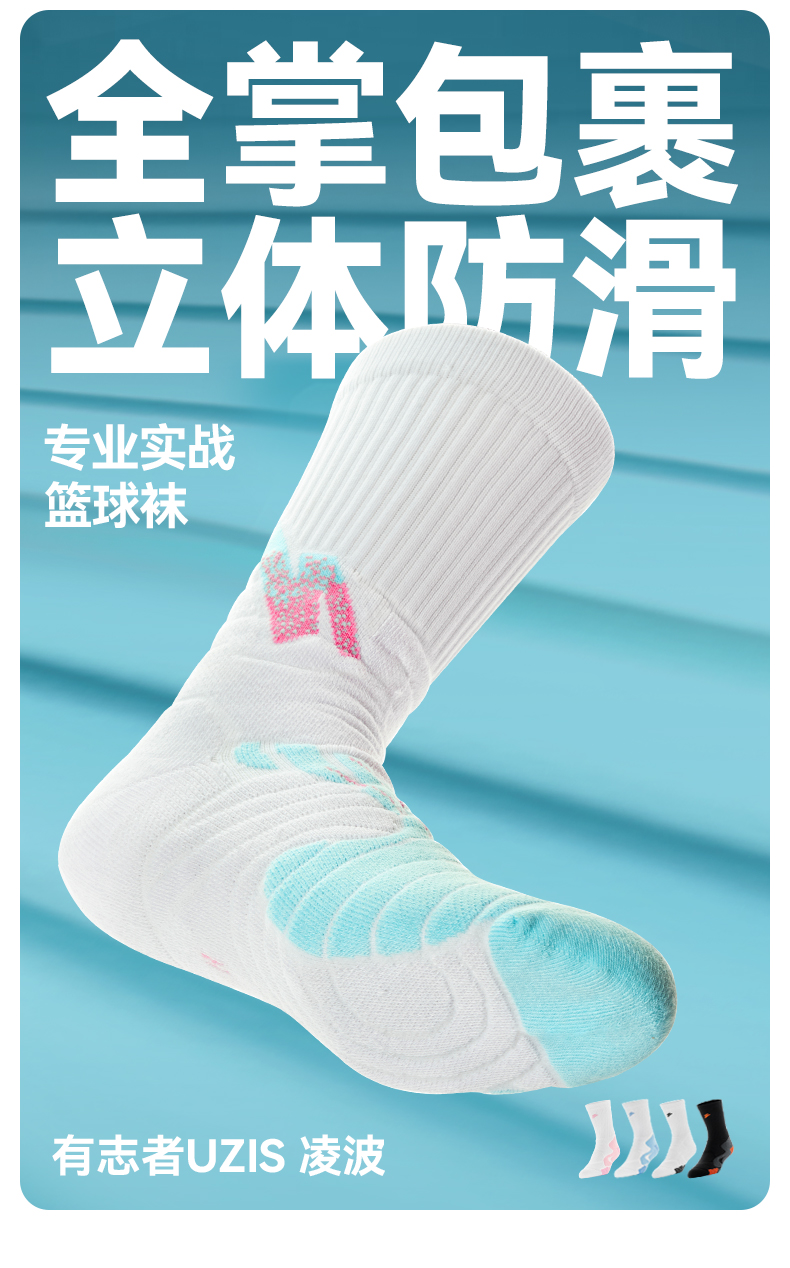 有志者UZIS 篮球袜男专业实战高帮长筒训练防滑精英毛巾底袜[凌波