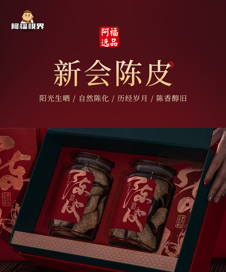 【十年陈皮】阿福视界新会陈皮礼盒装200g养生茶花草茶约十年老皮
