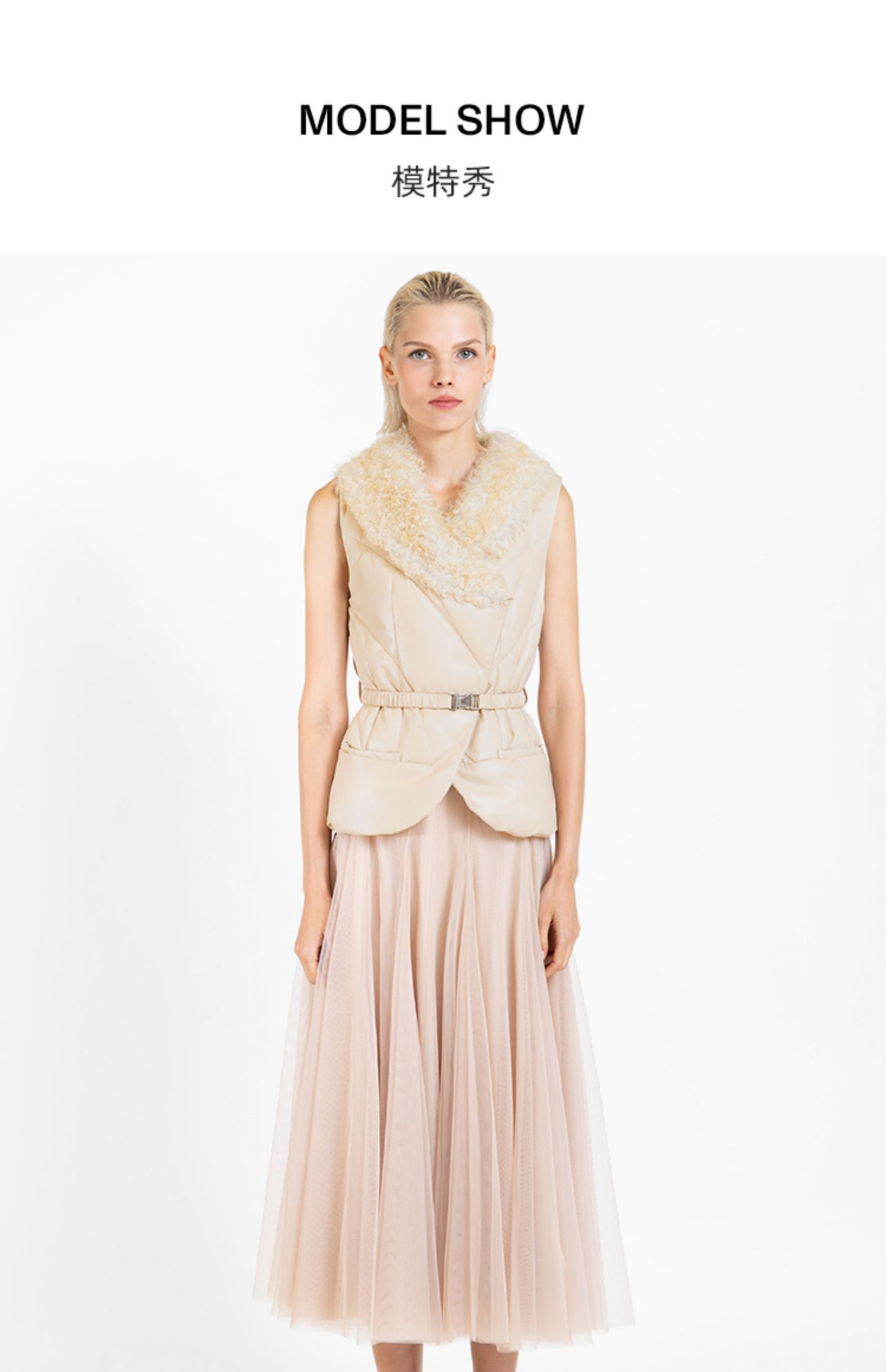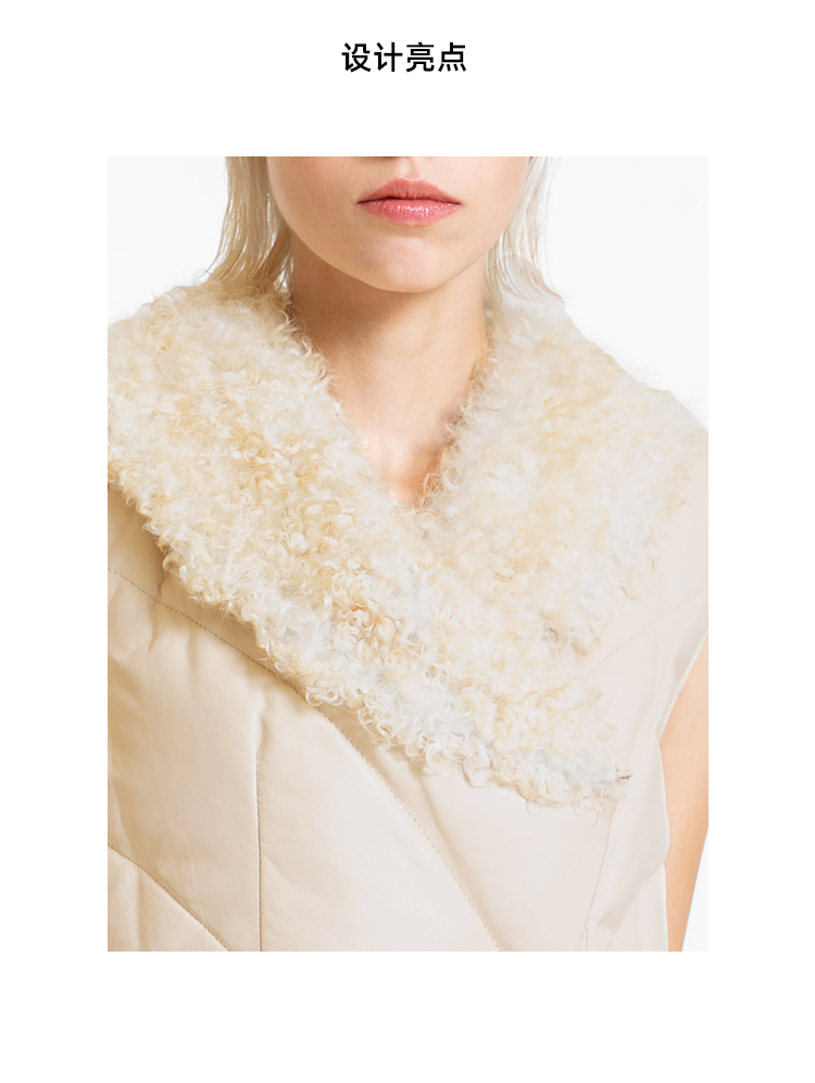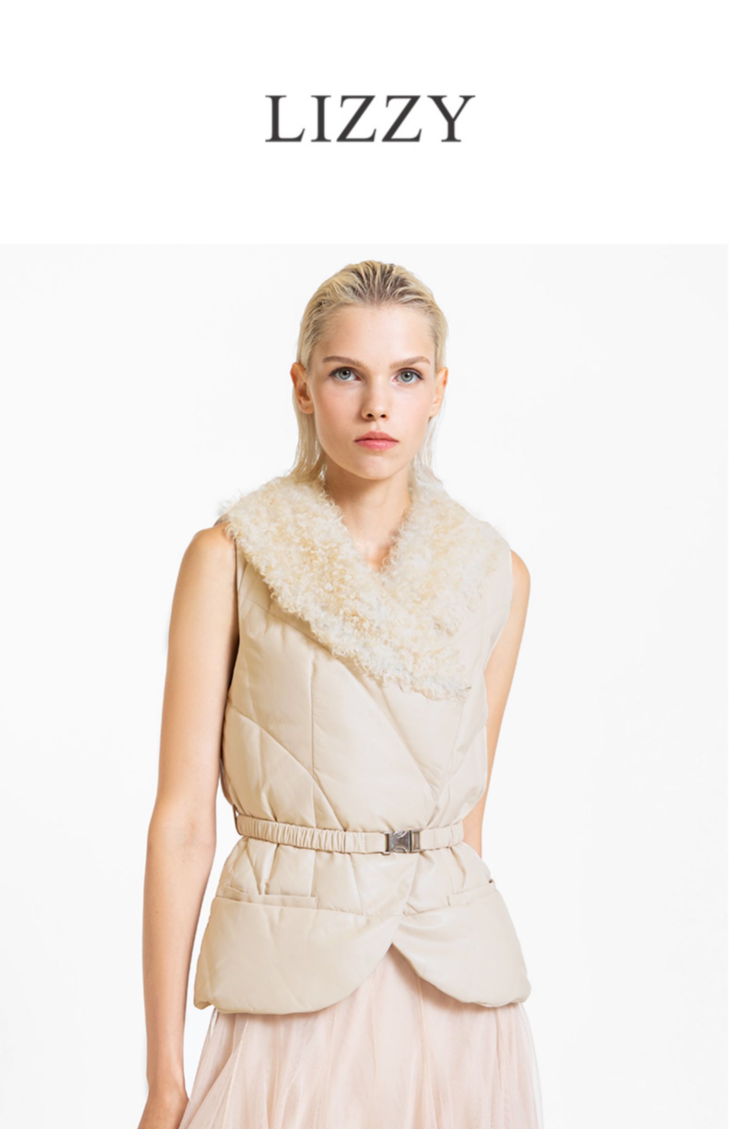 LIZZY 2022秋冬绵羊皮羊羔毛领90白鸭绒羽绒马甲4686