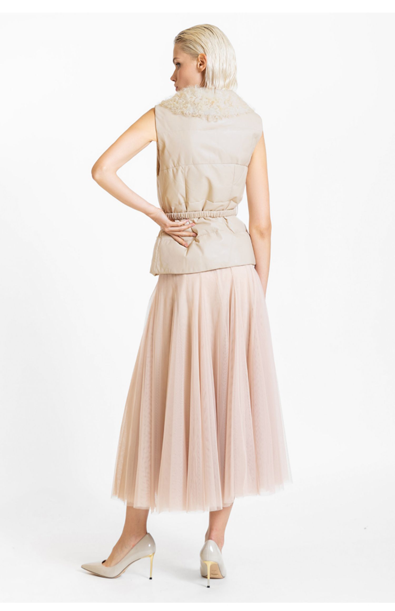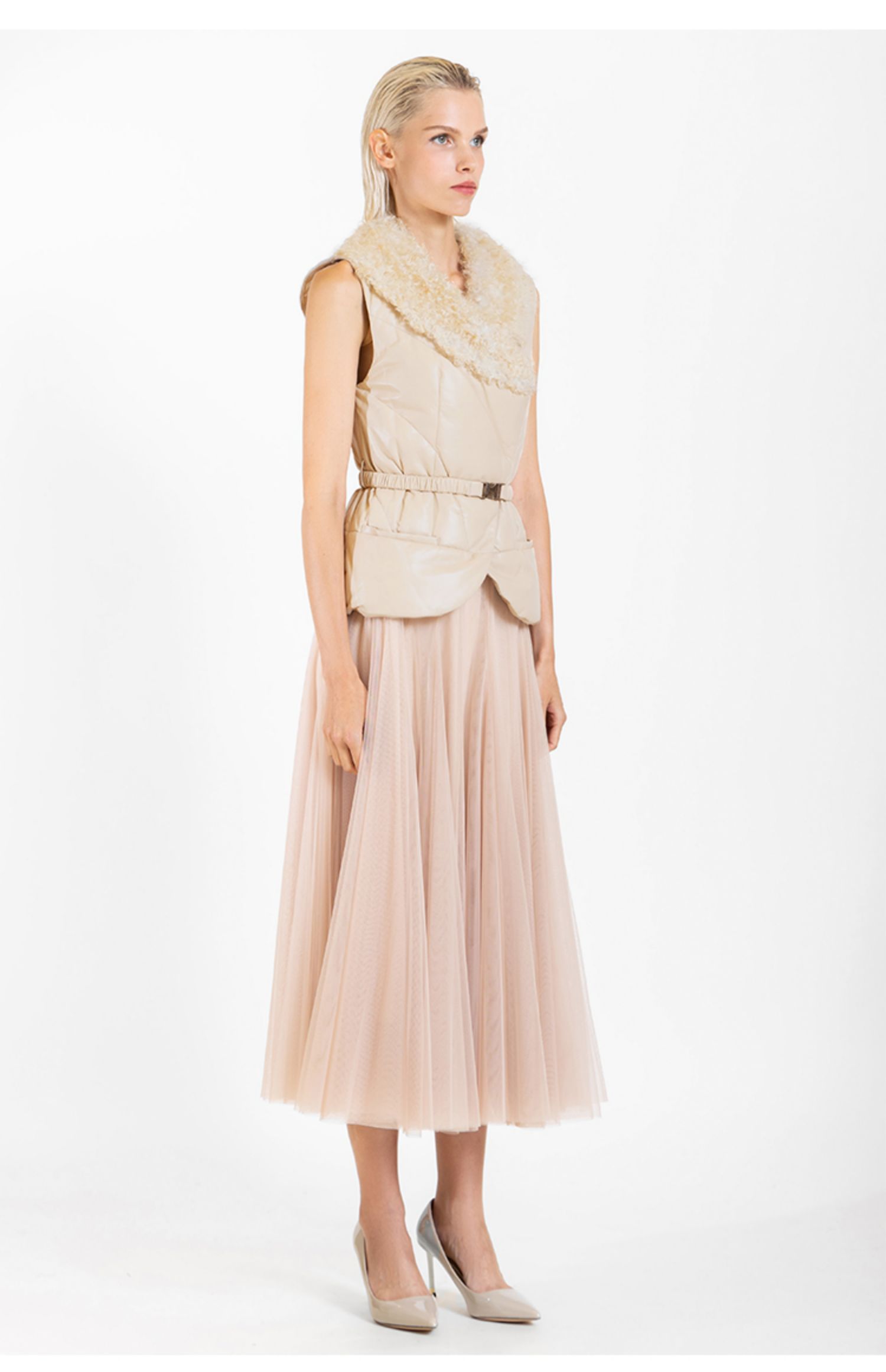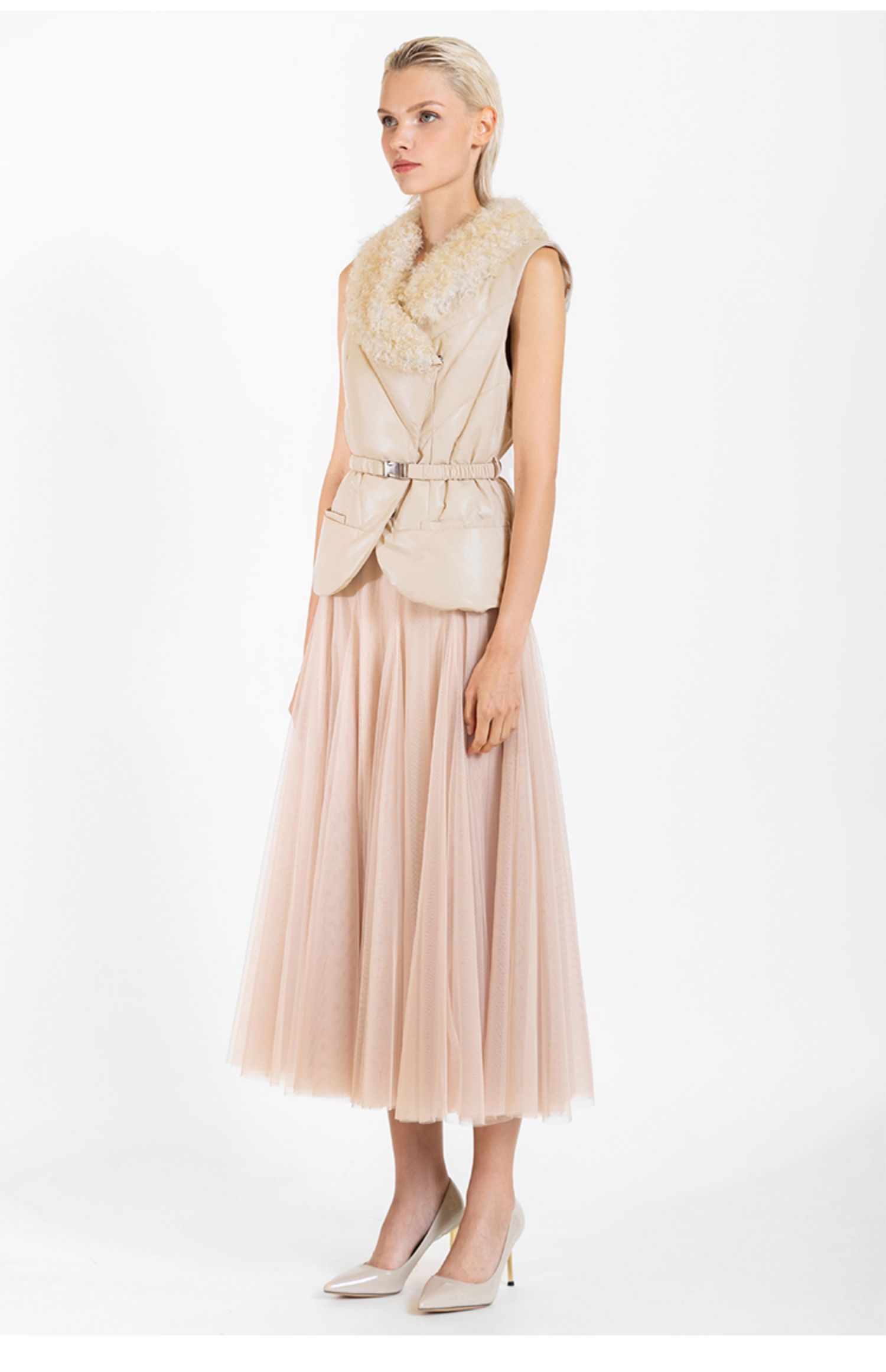 LIZZY 2022秋冬绵羊皮羊羔毛领90白鸭绒羽绒马甲4686
