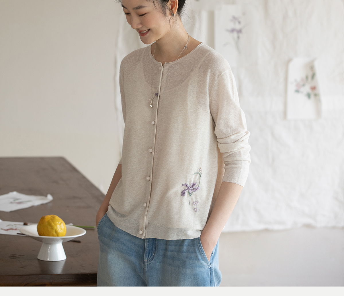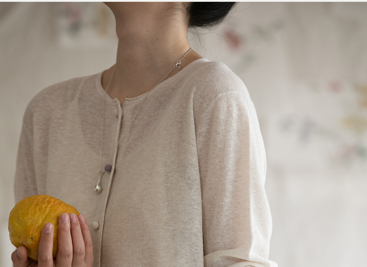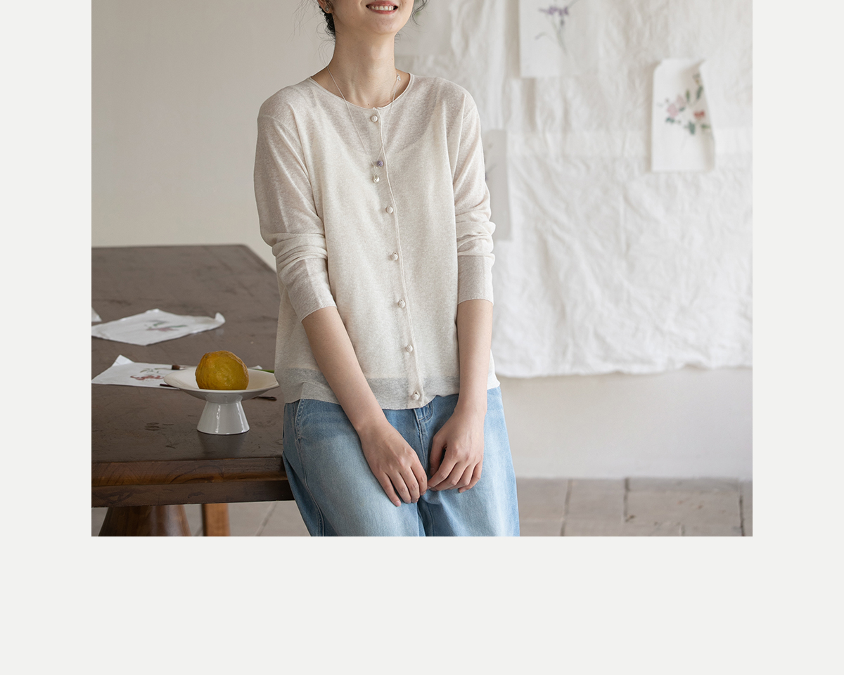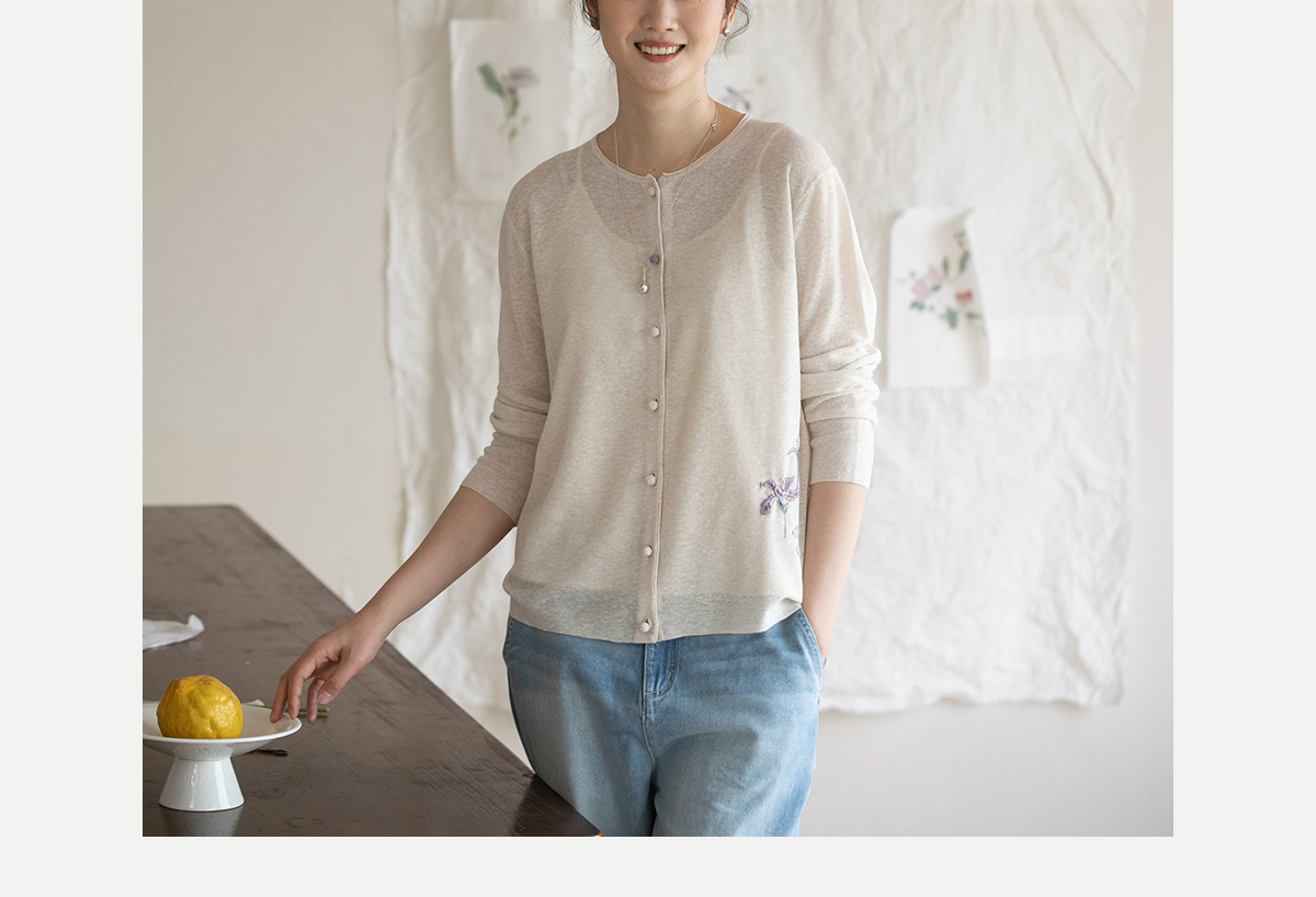 牧衣游原创 棉麻混纺薄毛织外套柔软舒适轻薄百搭长袖防晒衫 幽鸟