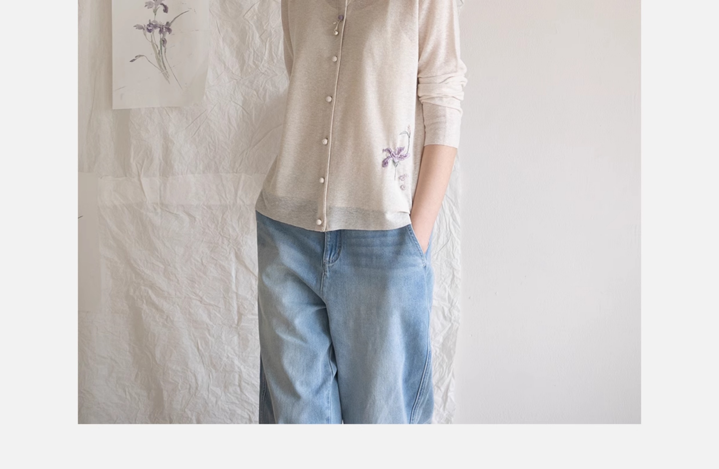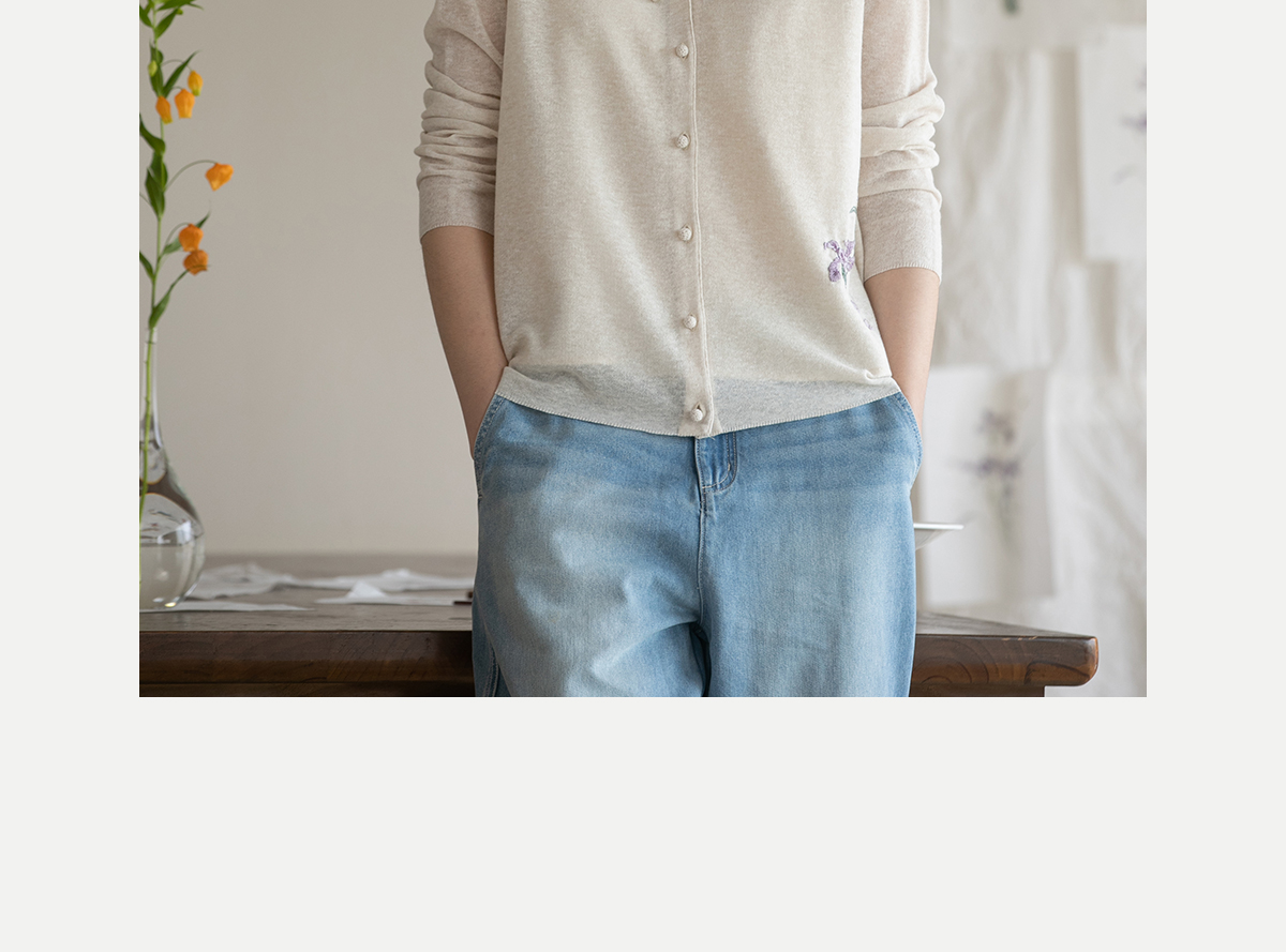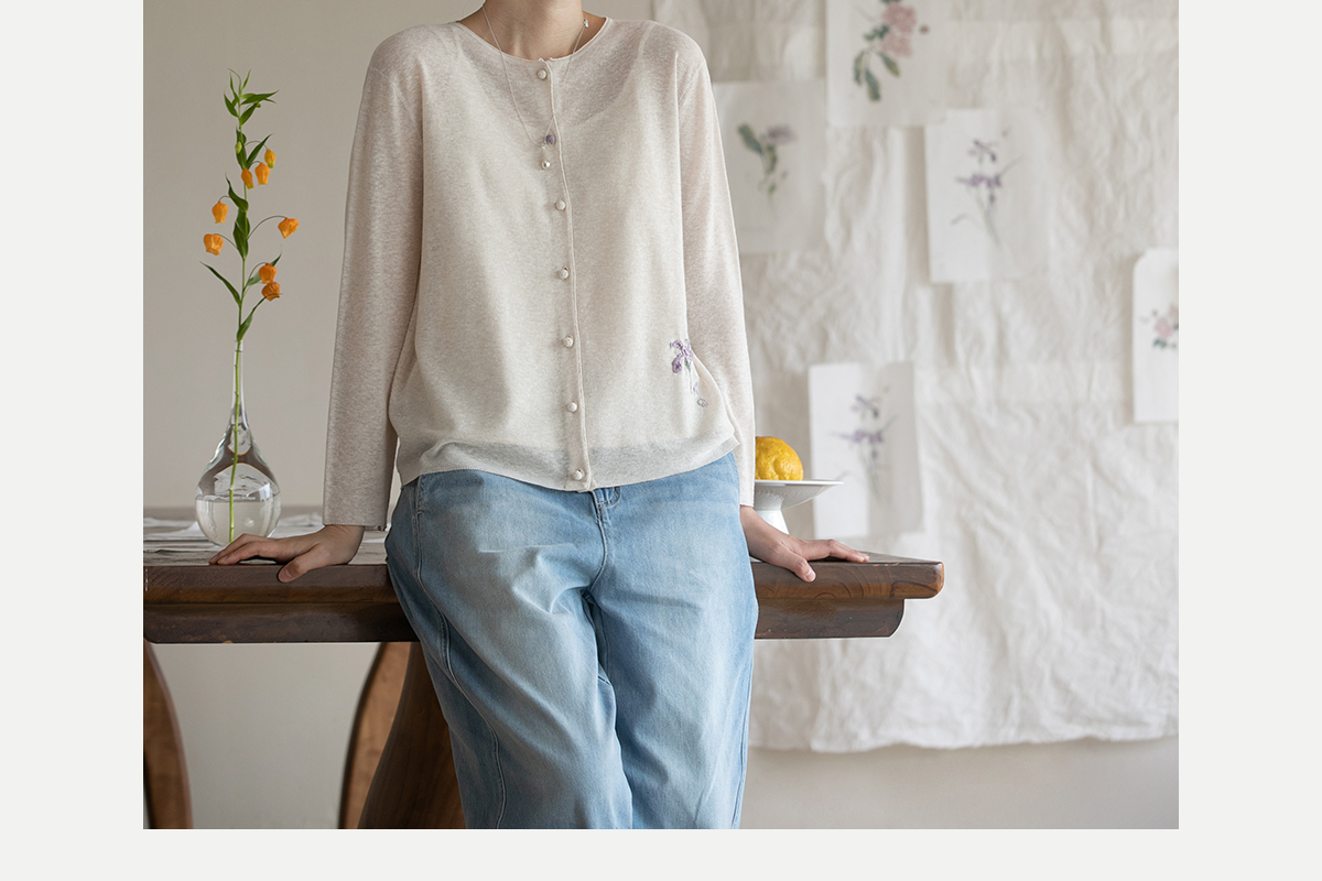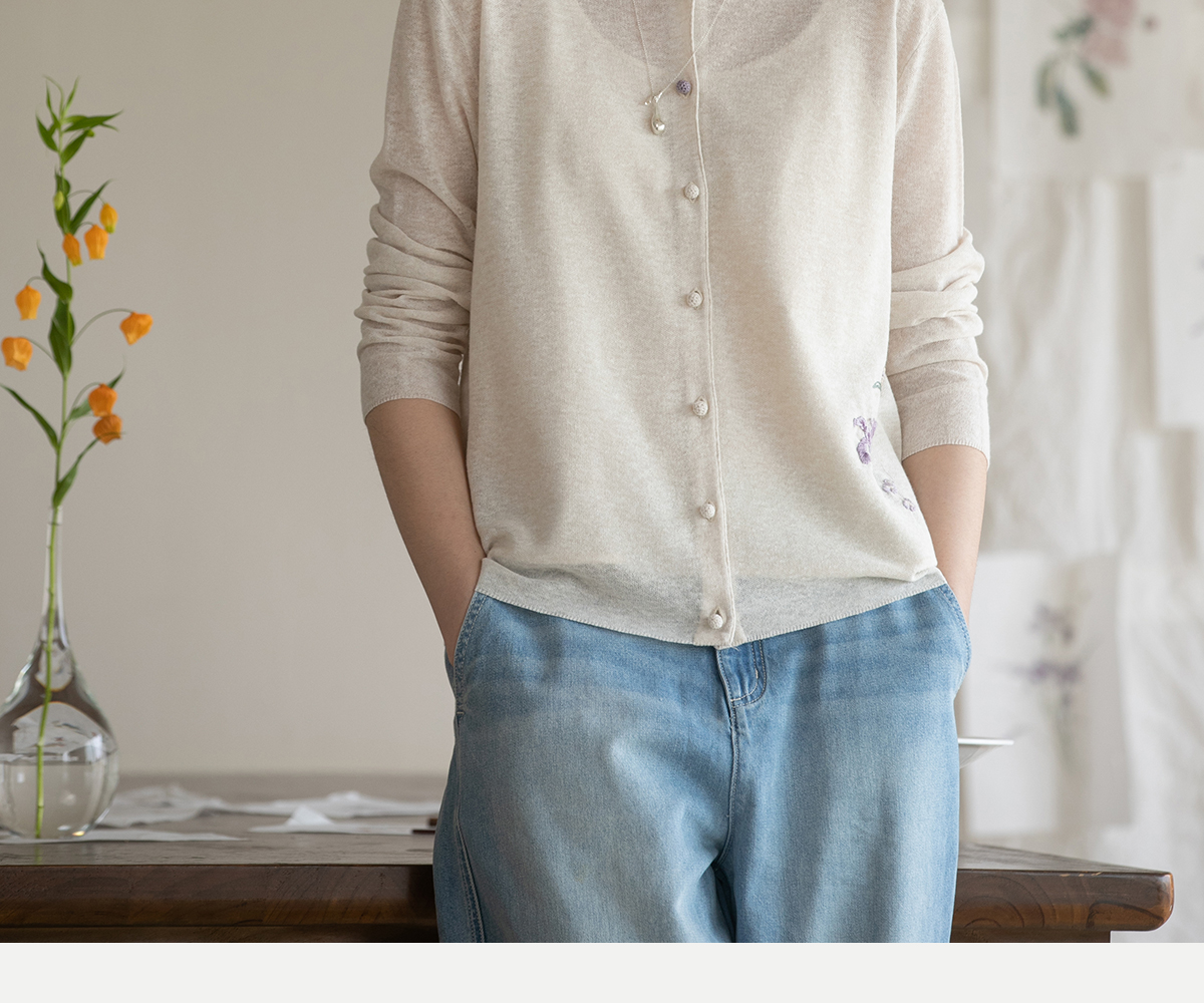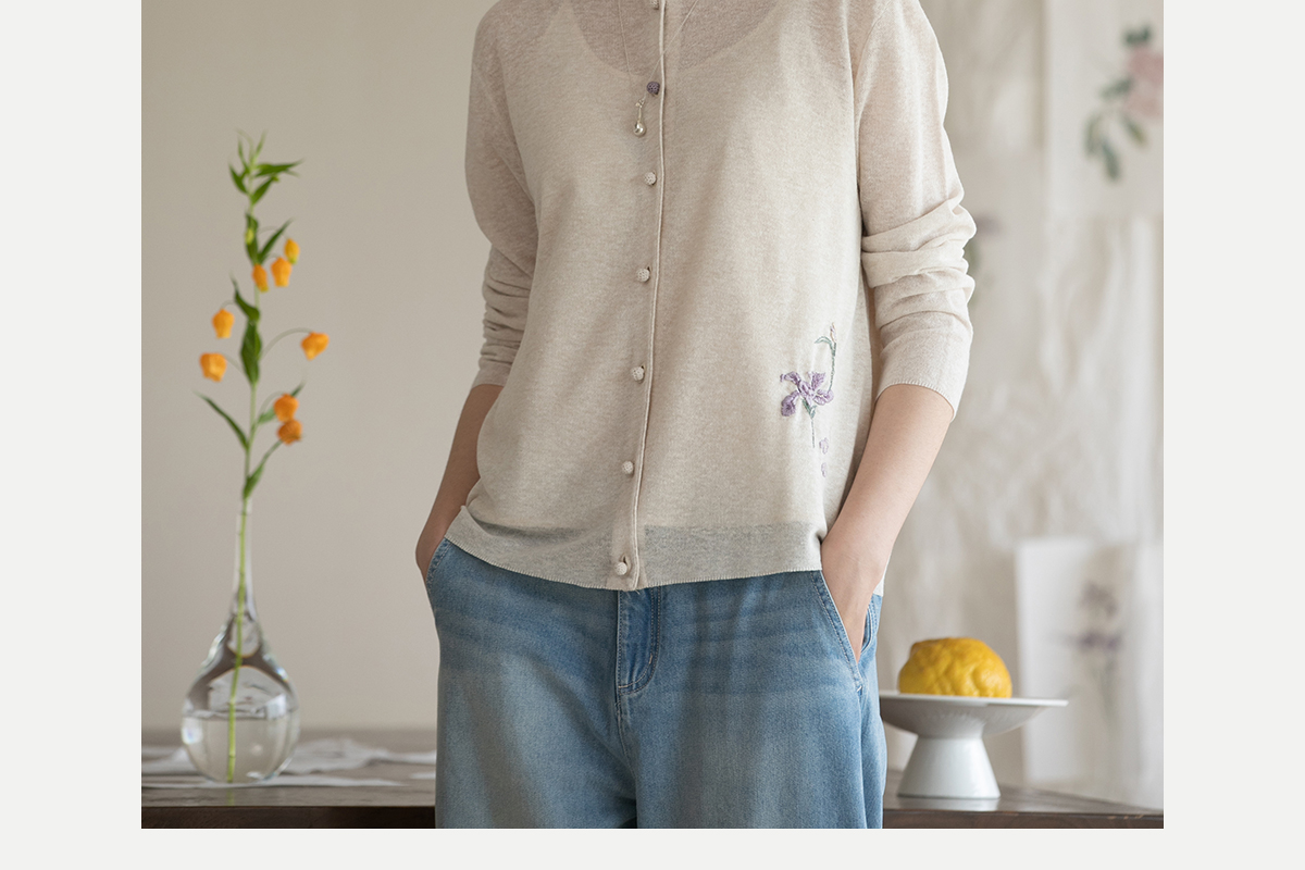 牧衣游原创 棉麻混纺薄毛织外套柔软舒适轻薄百搭长袖防晒衫 幽鸟