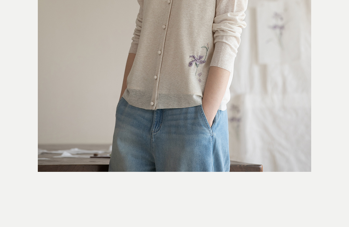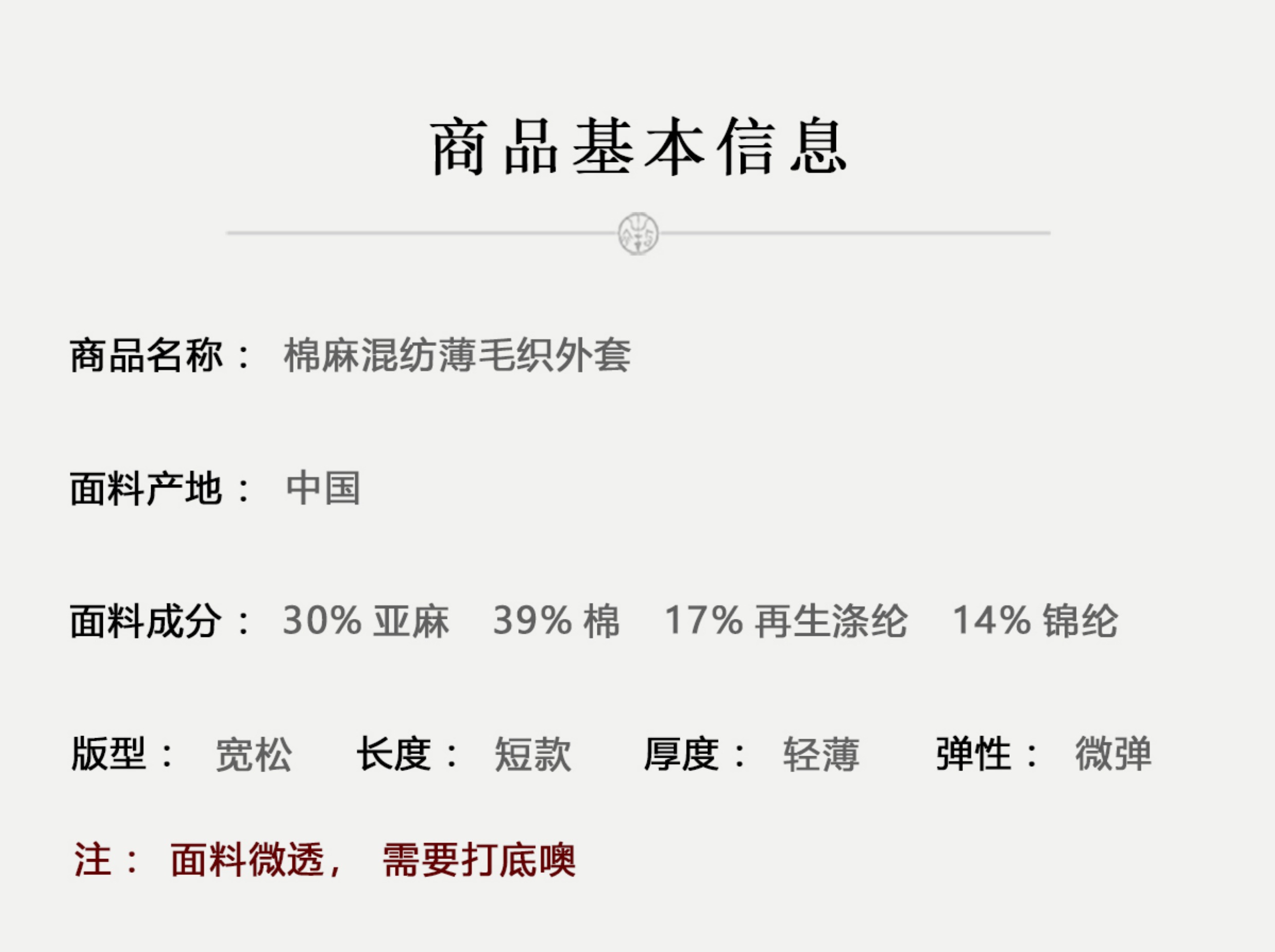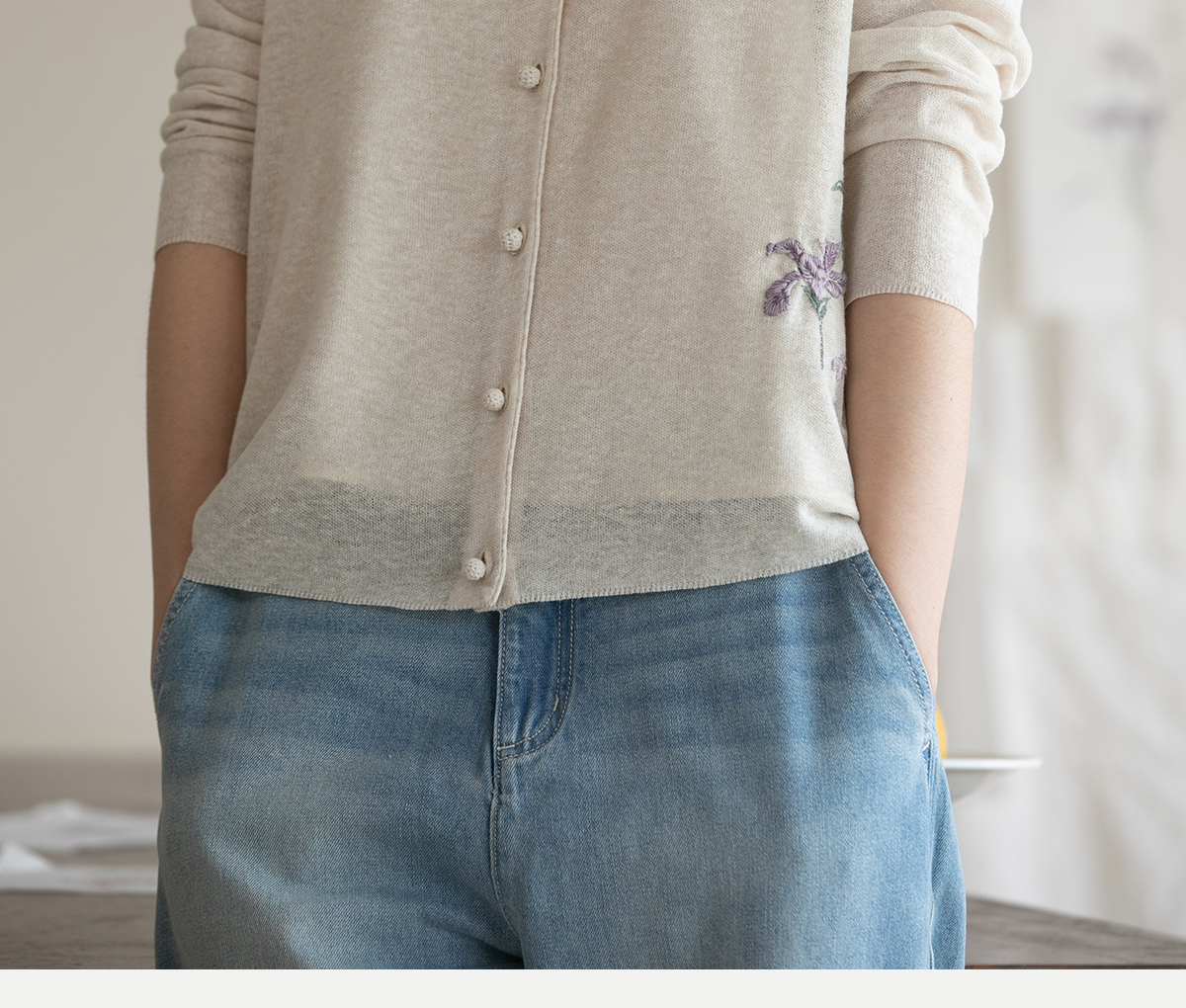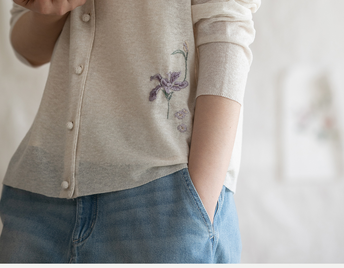 牧衣游原创 棉麻混纺薄毛织外套柔软舒适轻薄百搭长袖防晒衫 幽鸟