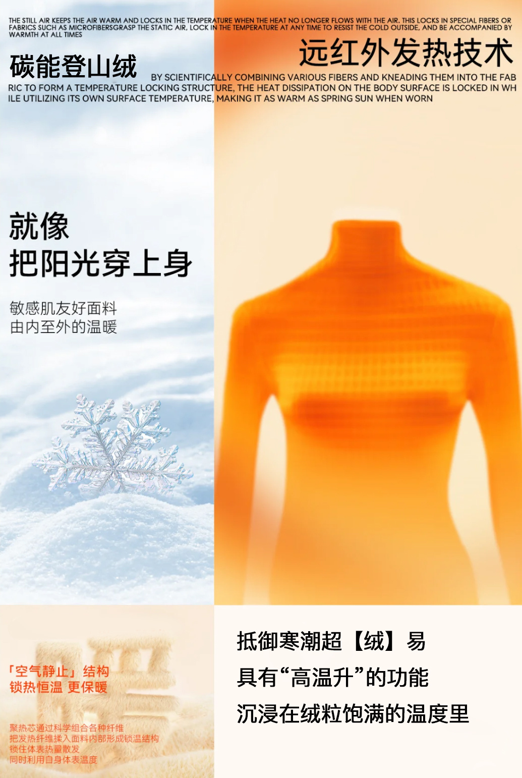 像个行走的火炉,自带发热属性,轻松应对骤降的温度,温暖陪伴三季,暖比羊毛,柔比棉花!