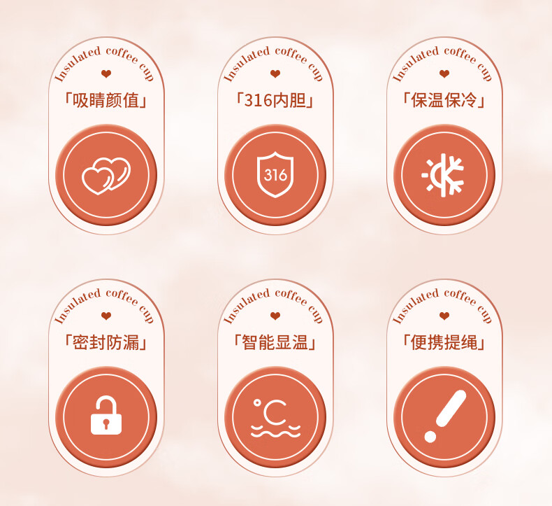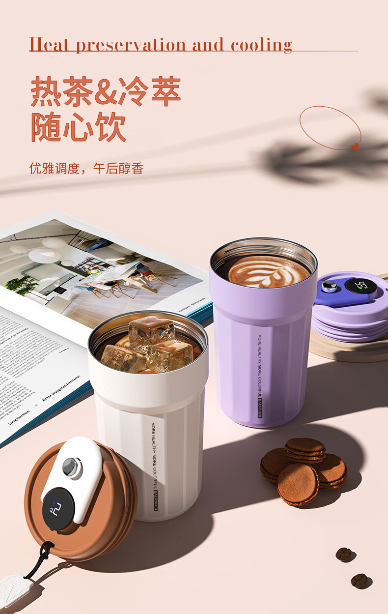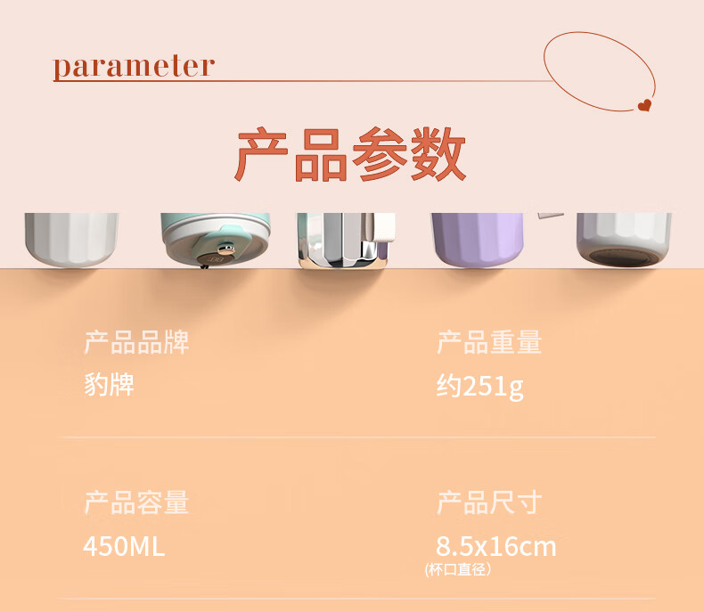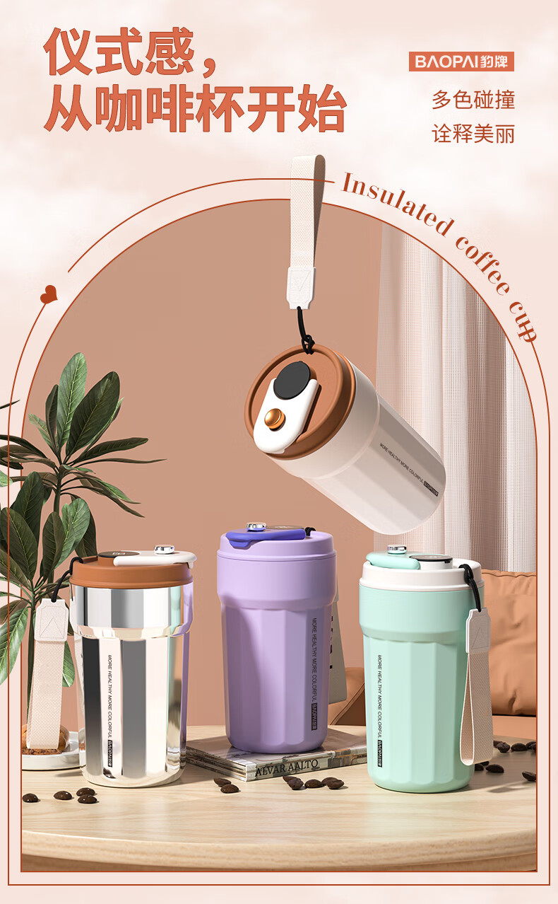 【多样屋专柜】豹牌温显咖啡杯316不锈钢 紫色,绿色,米白色350ml