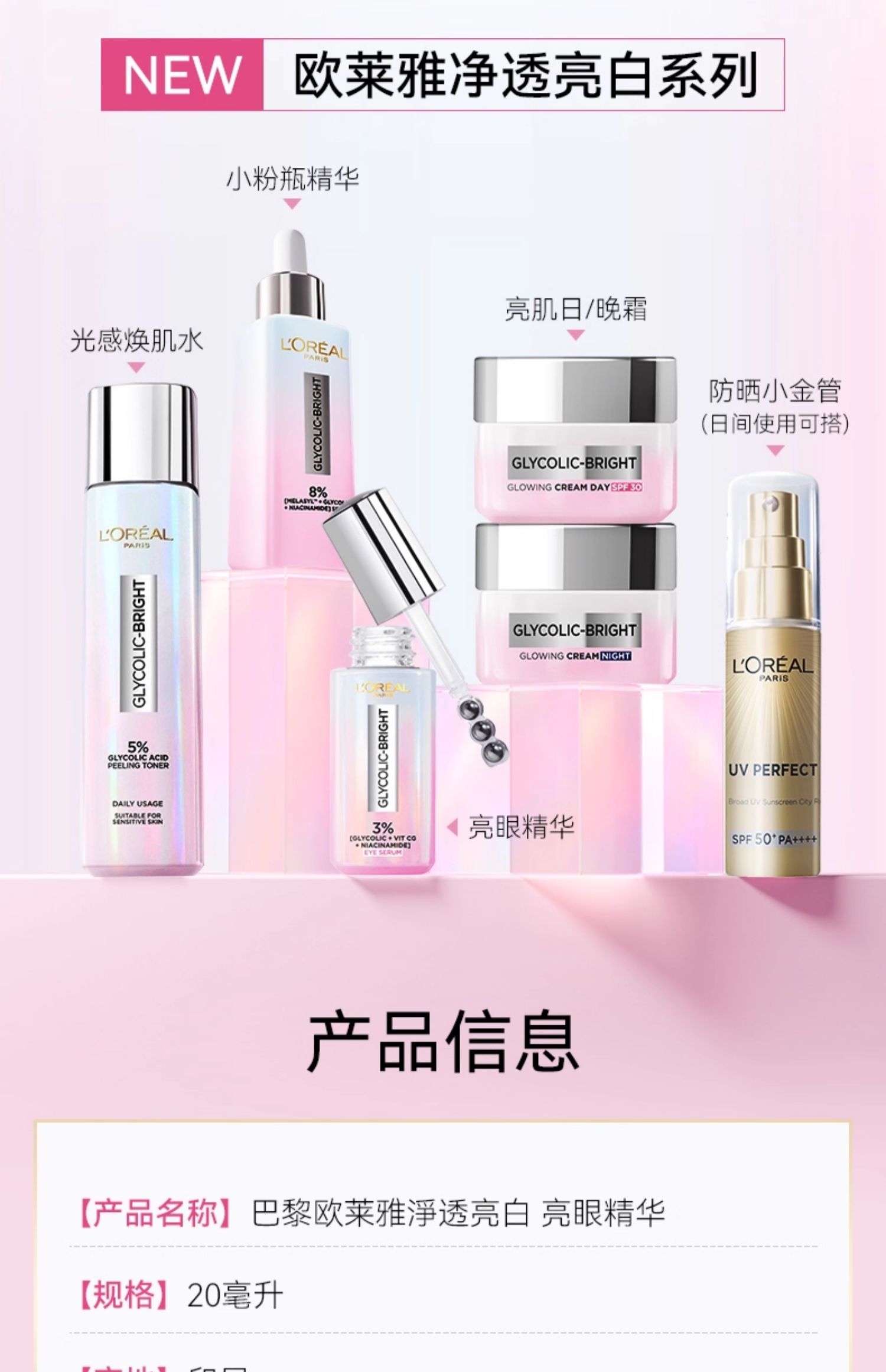 欧莱雅LOREAL 净透亮白 亮眼精华20ml【下滑拍优惠套餐链接送赠品】