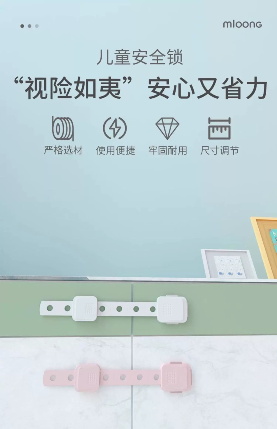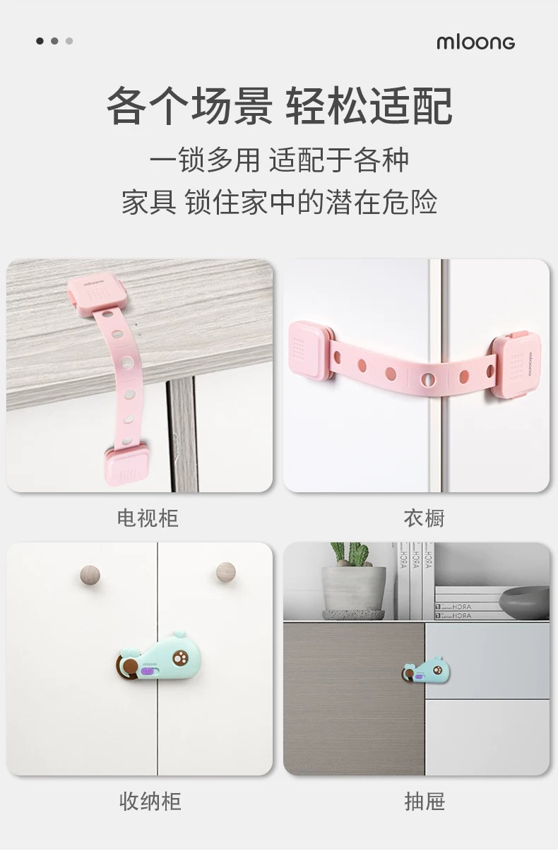 【冬日暖拥】曼龙mloong儿童安全防护锁宝宝推拉柜子开门锁