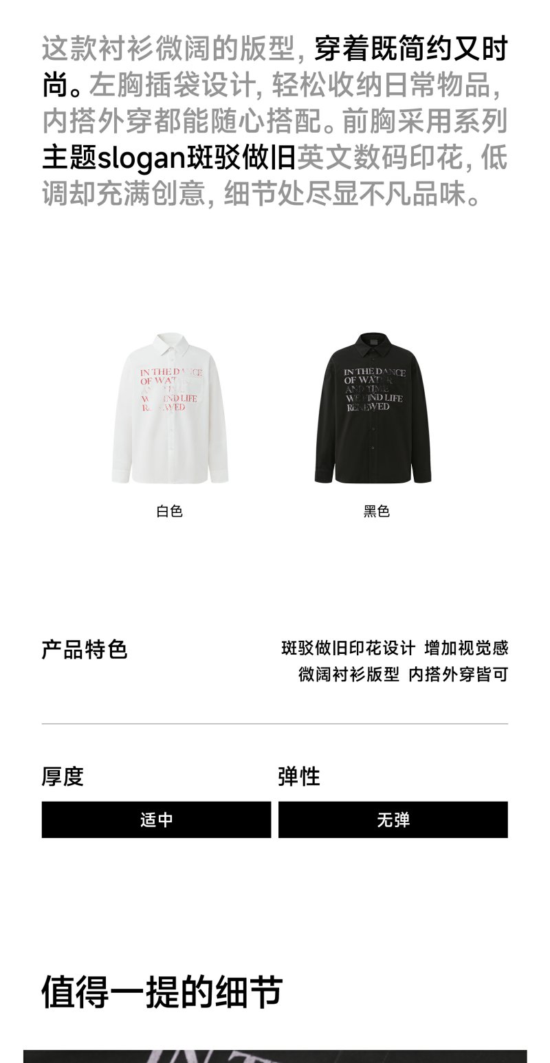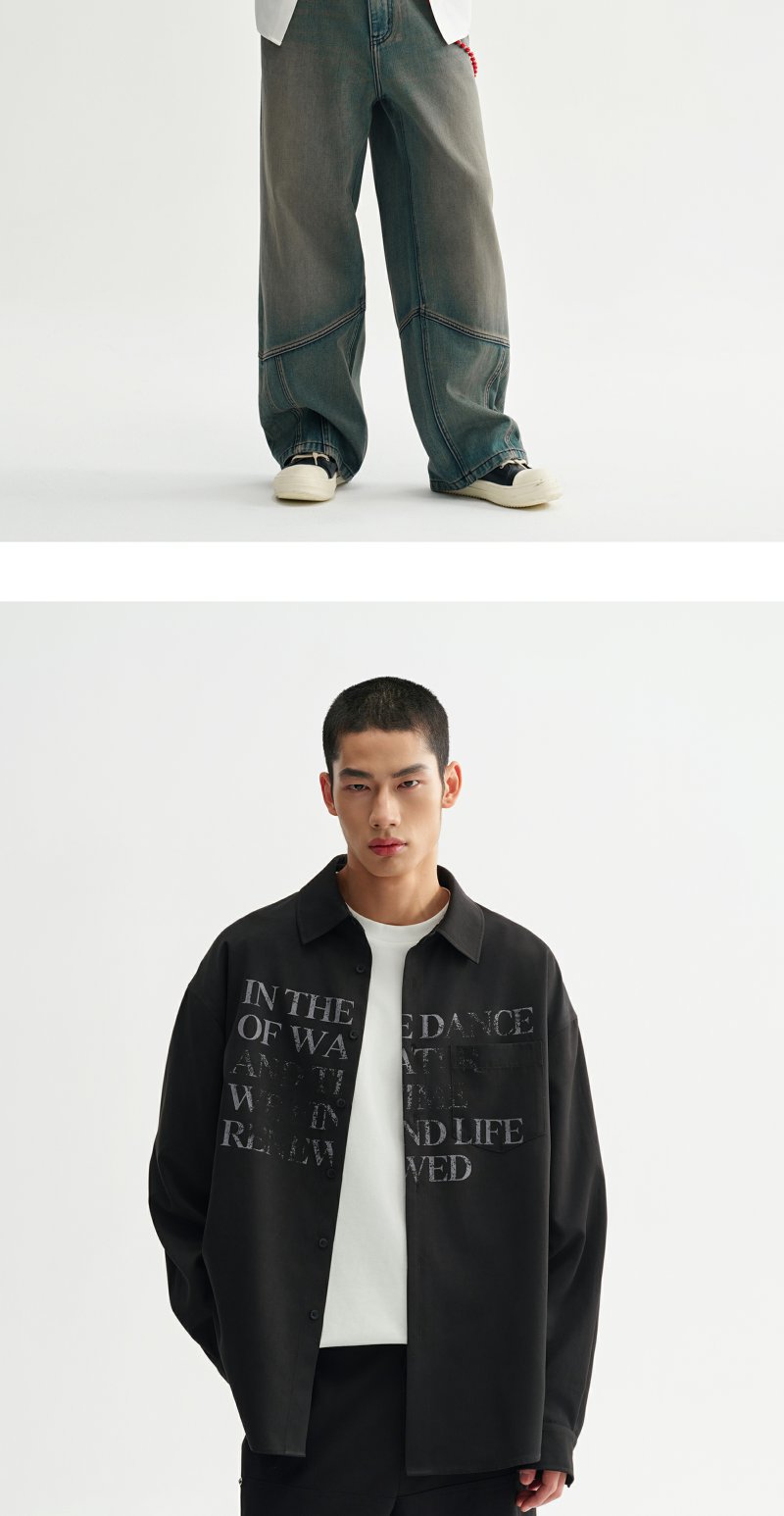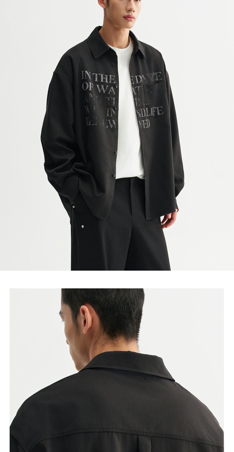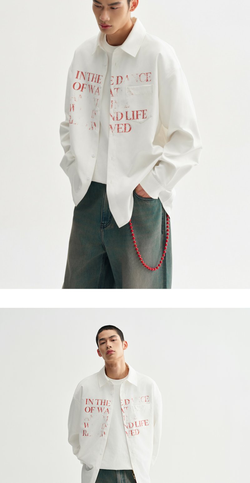 CHINISM赤尘 白色斑驳印花长袖衬衫男秋季新款翻领休闲衬衣外套