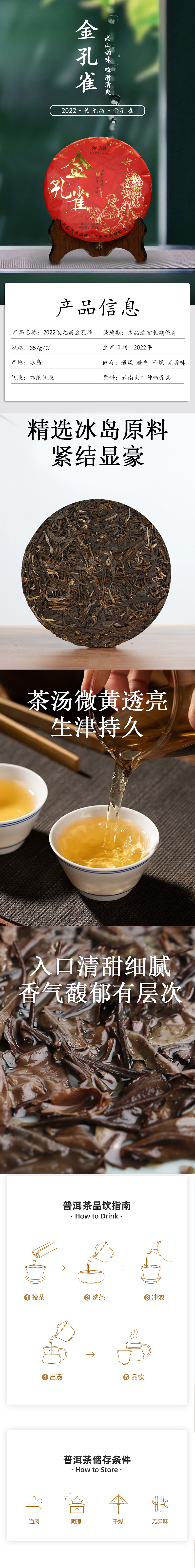【冰岛原料】俊元昌 2022年 金孔雀 普洱生茶 357g/饼