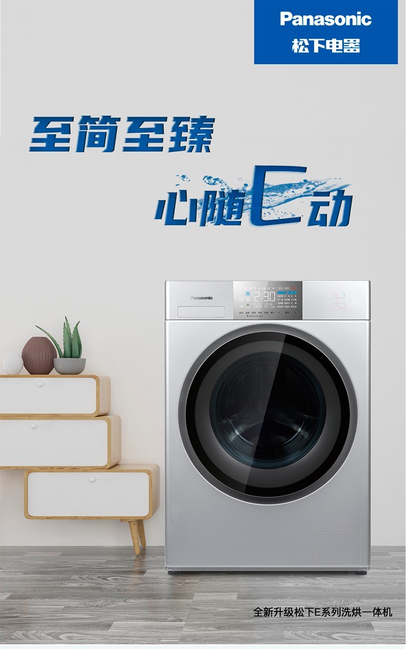 松下10KG变频滚筒洗衣机 烘干一体机 双极除螨光动银除菌XQG100-E1D8