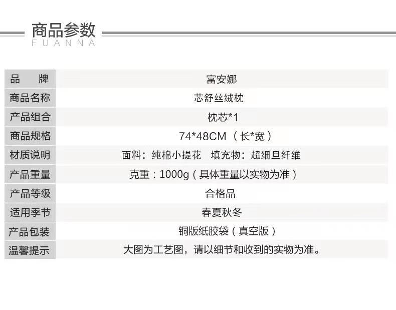 富安娜芯舒丝绒枕/74*48/1个