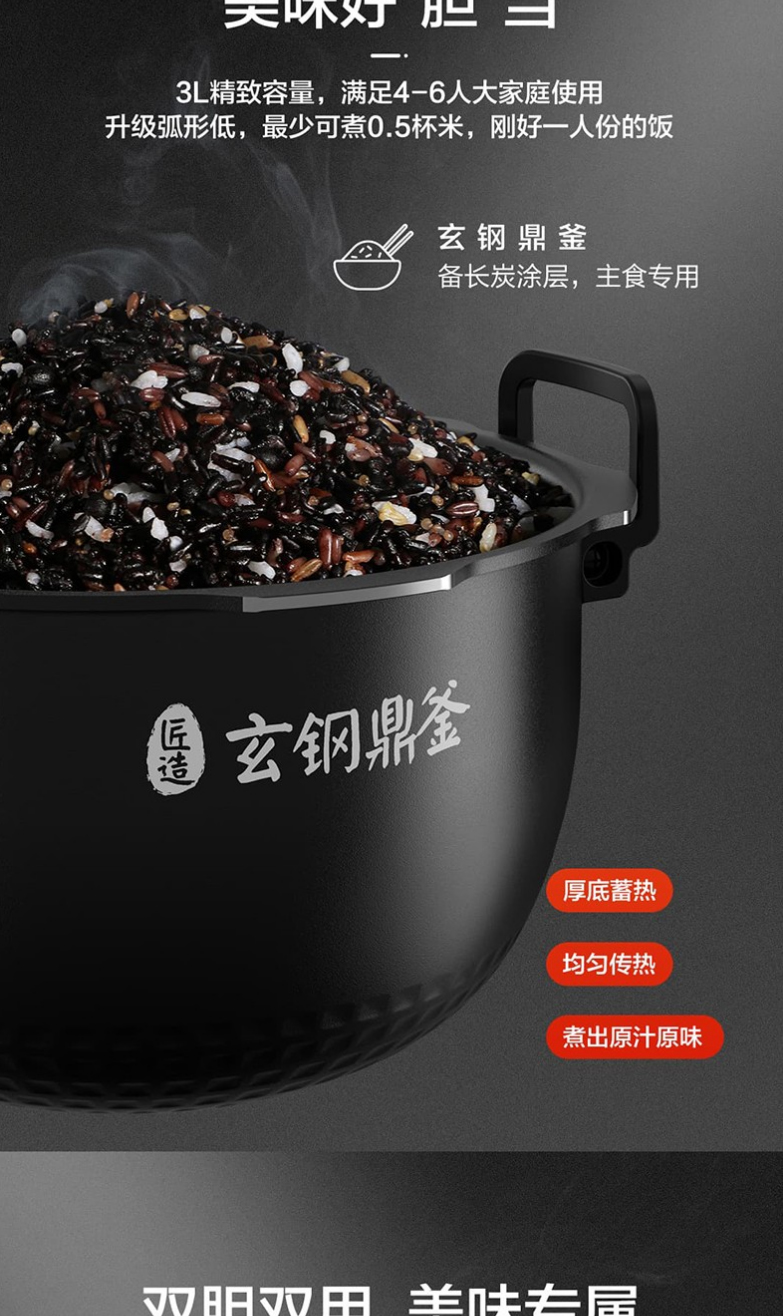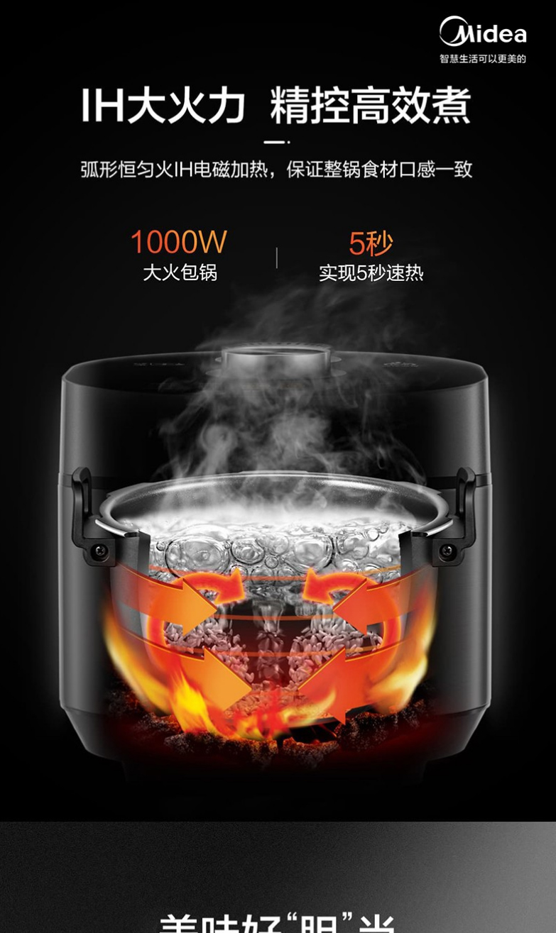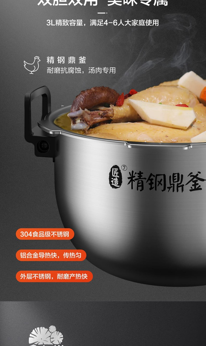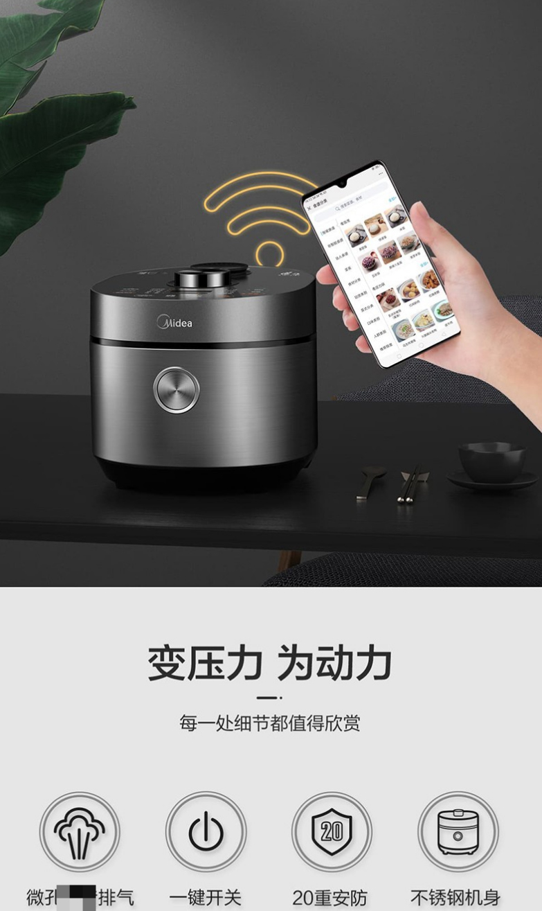 美的电压力锅家用3L智能家电全自动高压锅 杂粮饭 电饭煲养生电压力锅智能HT3088H