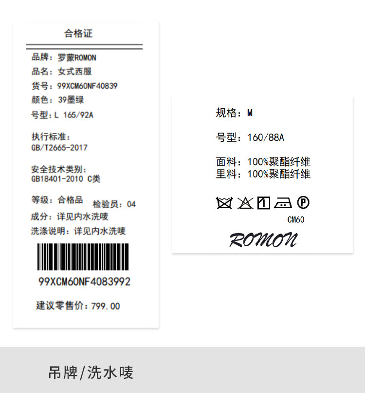 【面料】聚酯纤维100%;【里料】聚酯纤维100%