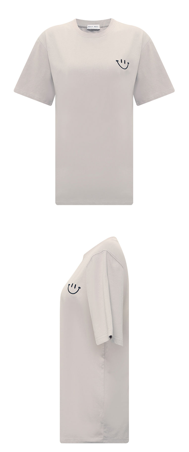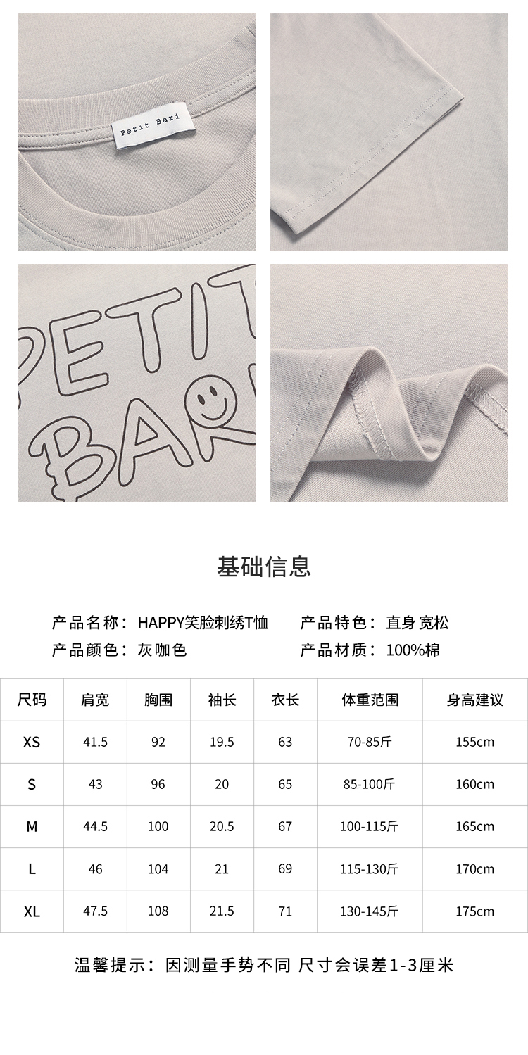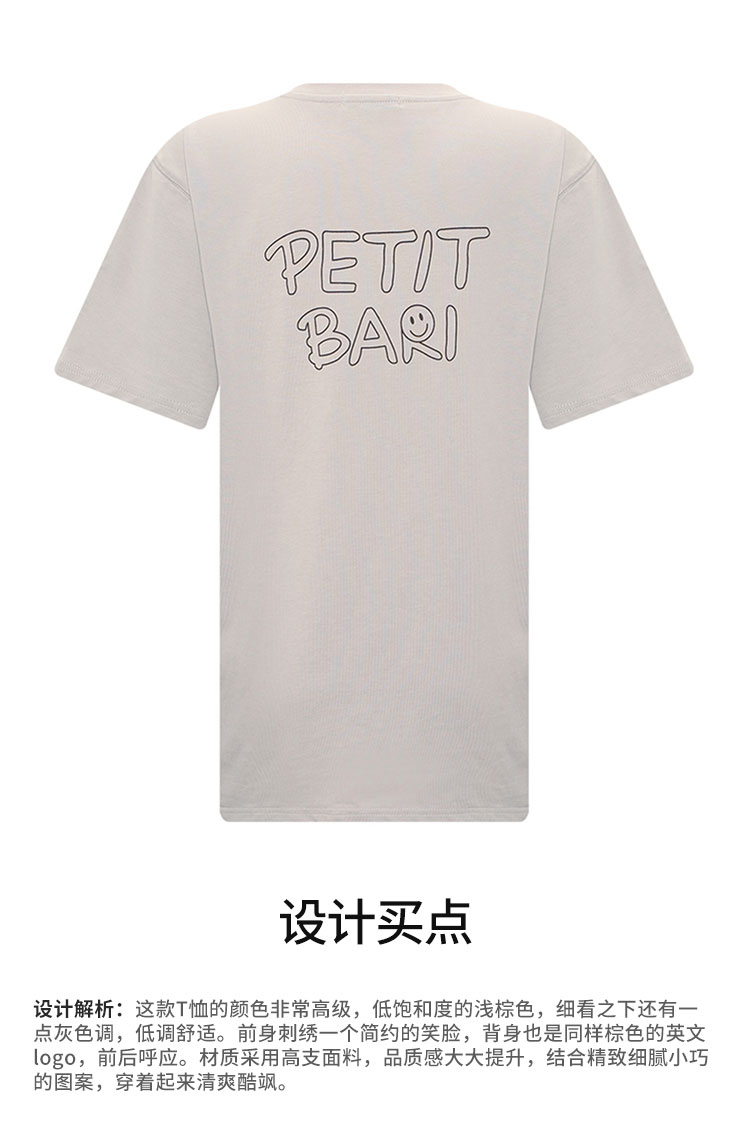 【2件9折】【Petit Bari】刺绣短袖T恤HAPPY笑脸T恤女士宽松休闲棉T