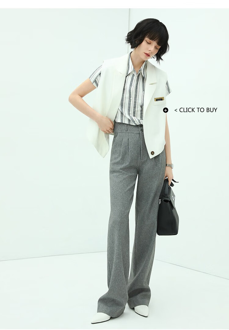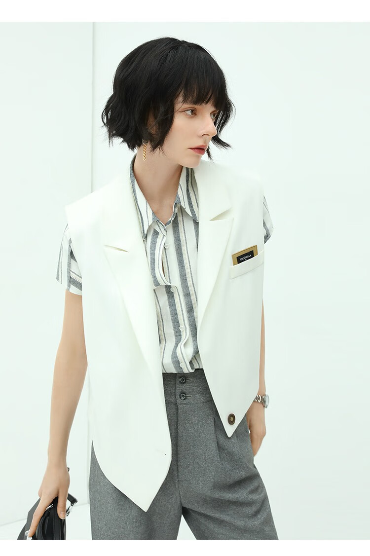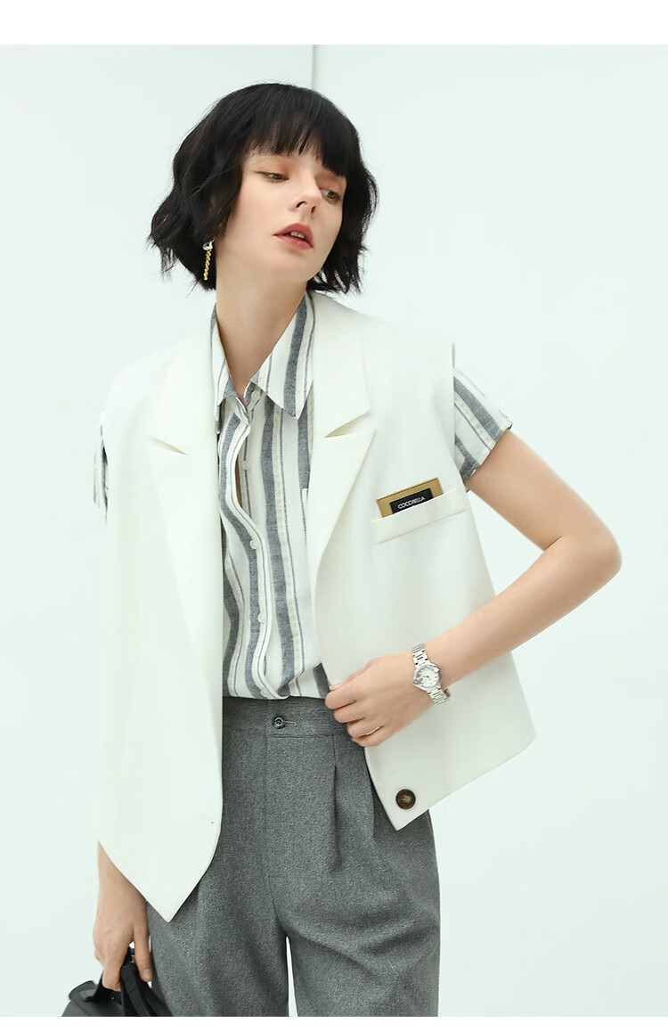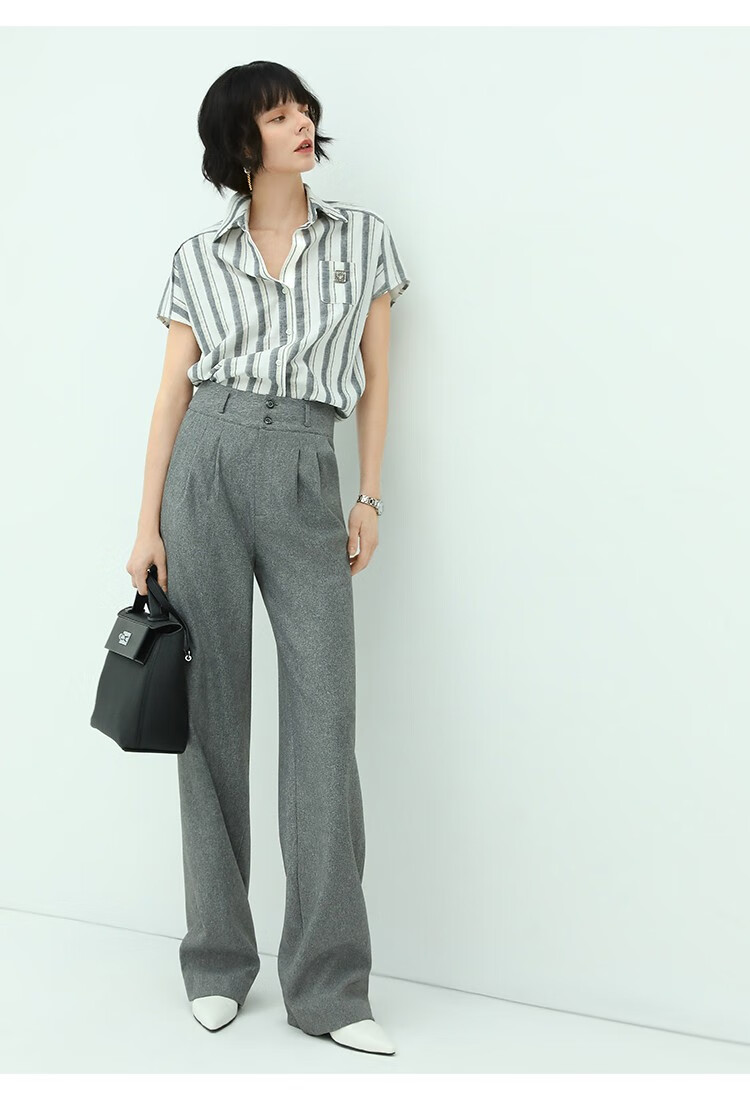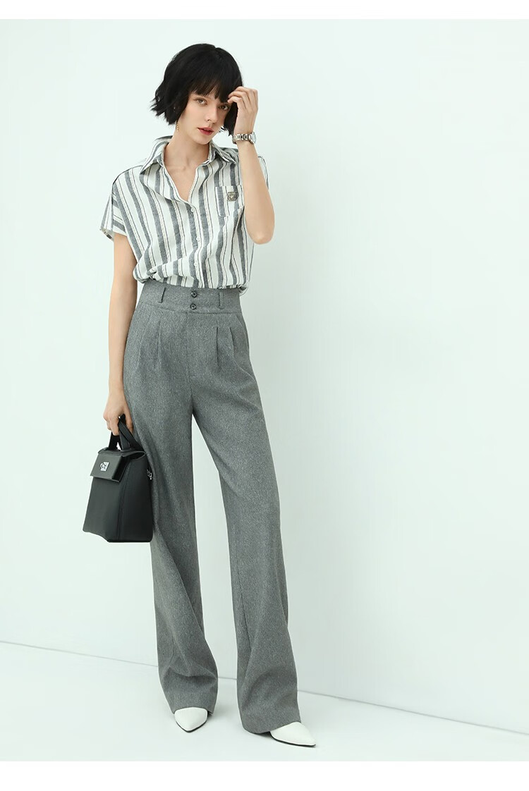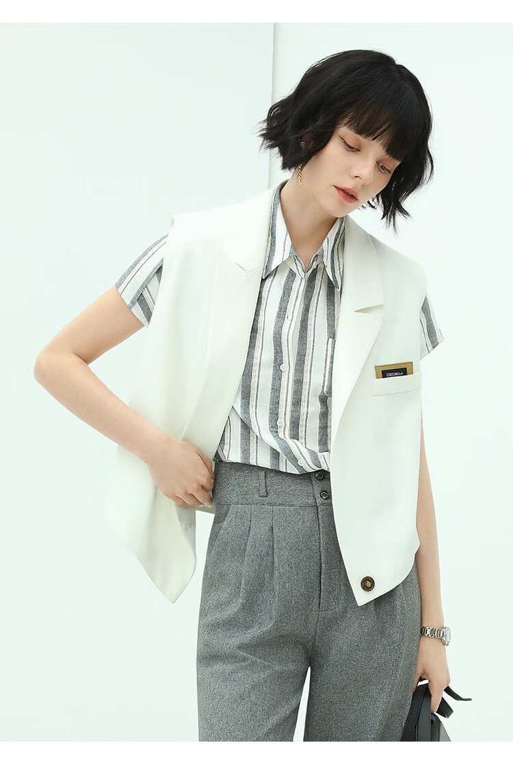 COCOBELLA亮丝竖条纹短袖衬衫女宽松休闲舒适全棉衬衣SR607