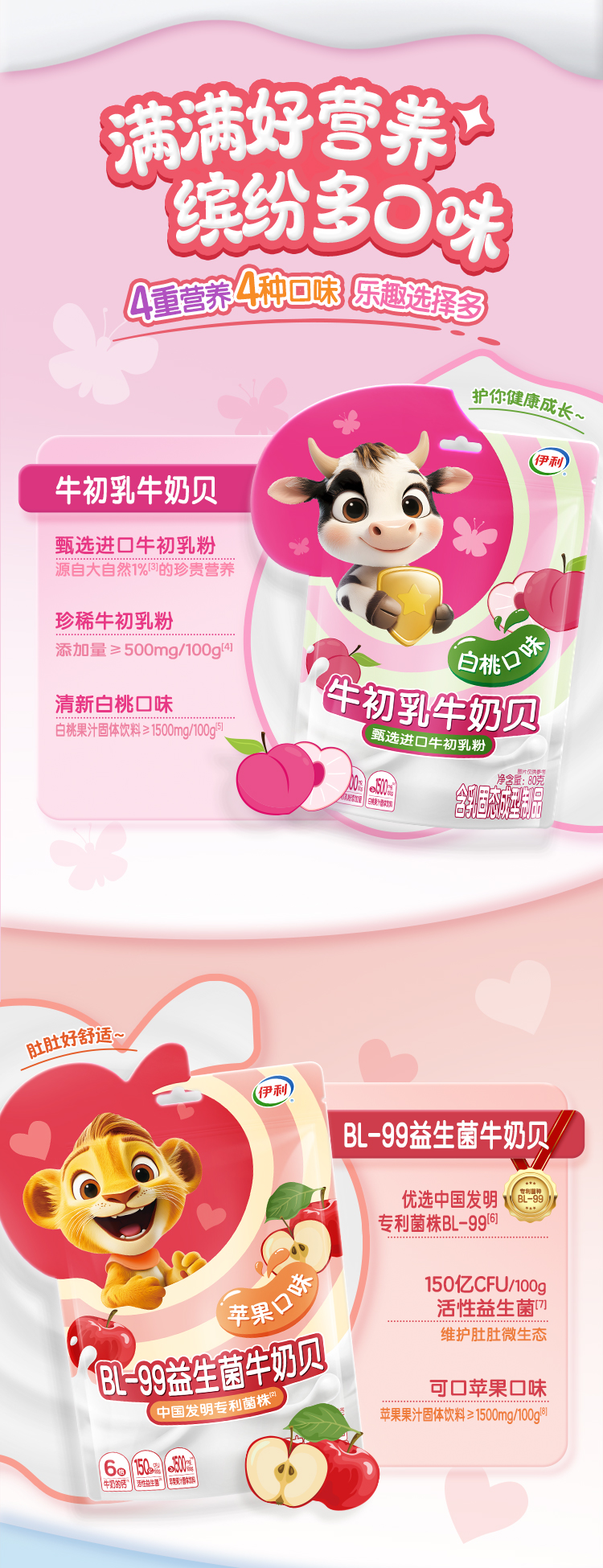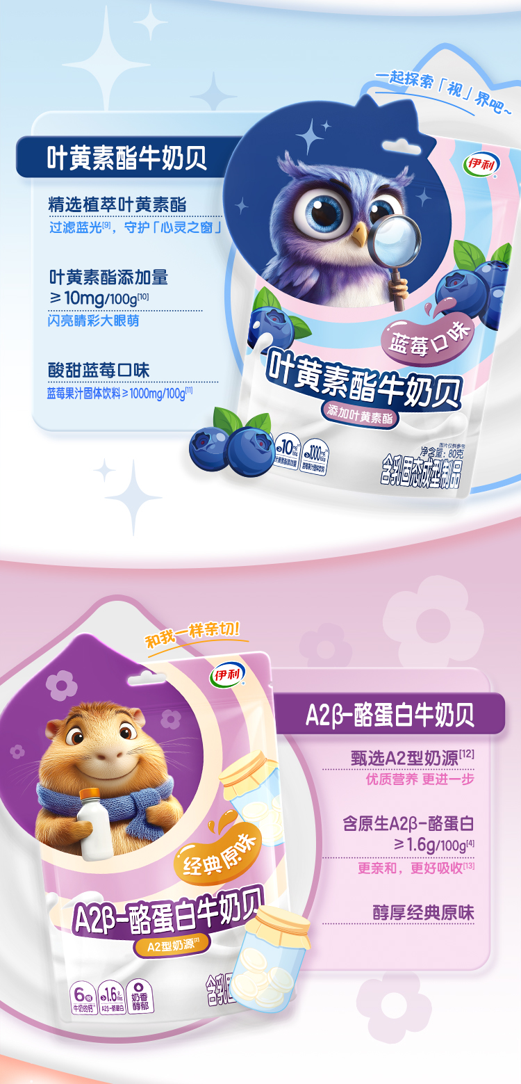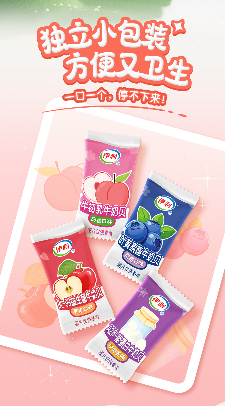 【新品上市】伊利牛奶贝(白桃口味/苹果口味/蓝莓口味/经典原味)四种口味80g/袋 儿童营养奶片