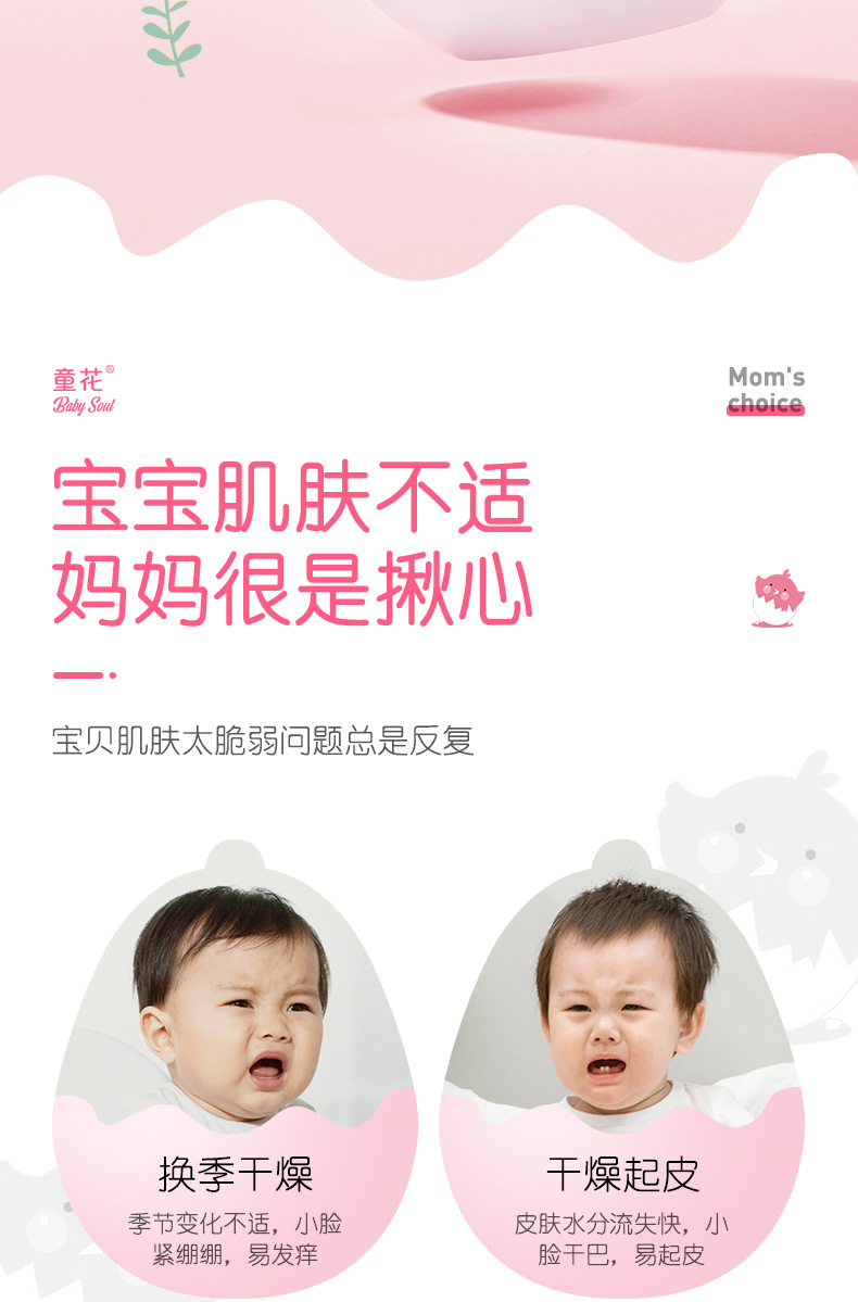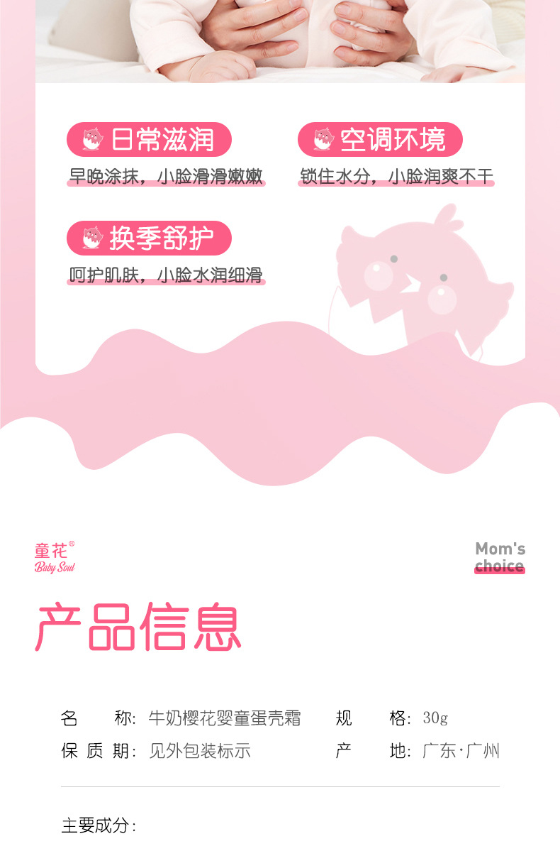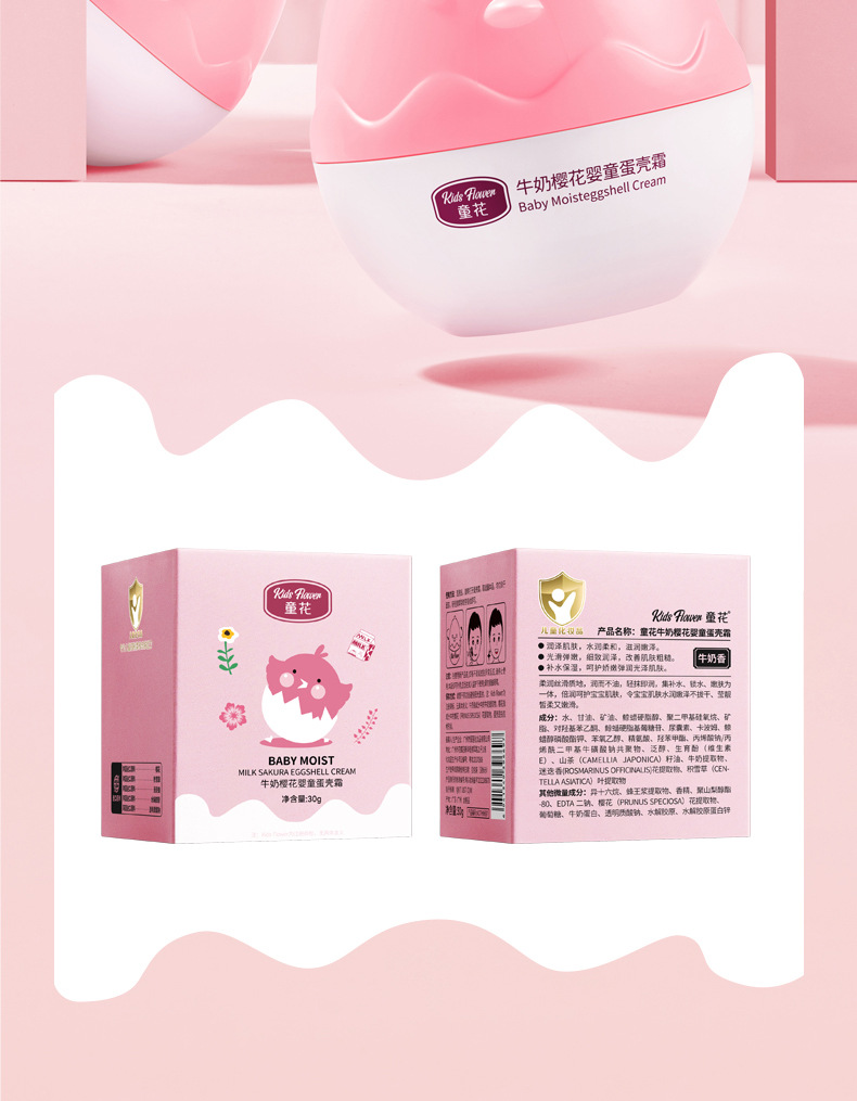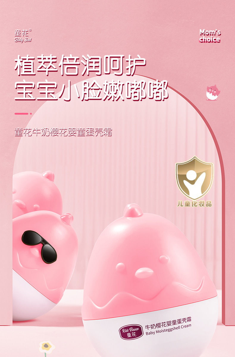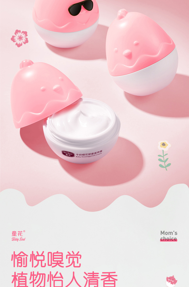 【买一送一】童花婴童保湿蛋壳霜,湿润婴儿肌肤,花样宠爱无瑕。金盏花牛奶樱花絮,馨香轻柔入梦里。宝宝护肤,母爱相随,温柔呵护从此起!