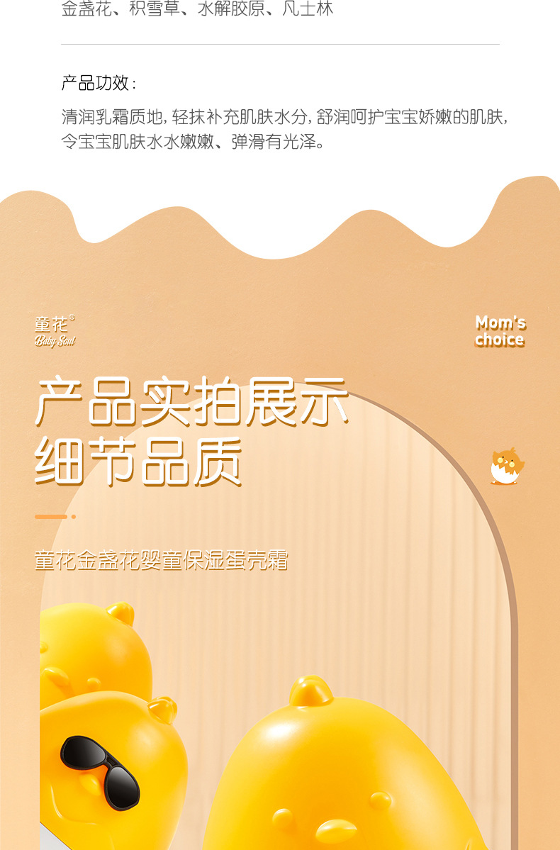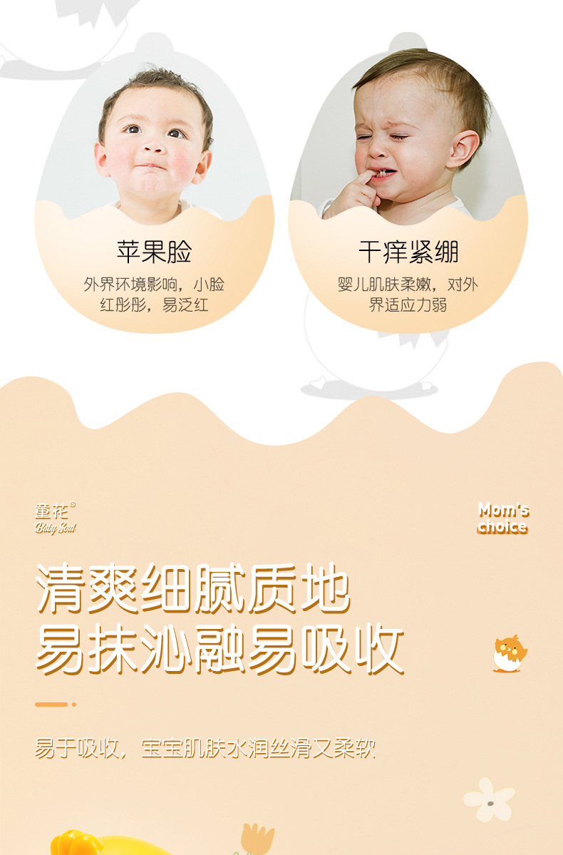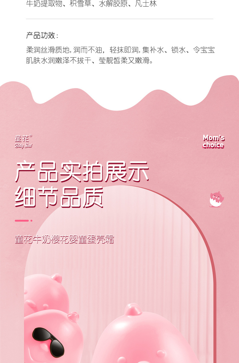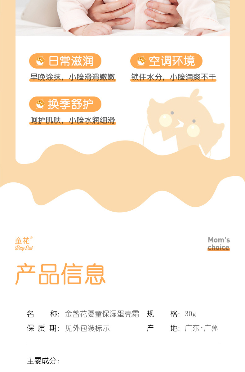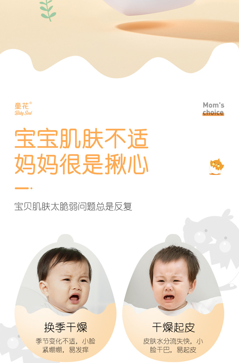 【买一送一】童花婴童保湿蛋壳霜,湿润婴儿肌肤,花样宠爱无瑕。金盏花牛奶樱花絮,馨香轻柔入梦里。宝宝护肤,母爱相随,温柔呵护从此起!