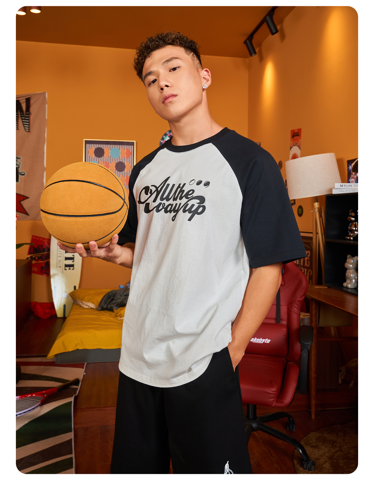 有志者UZIS 美式休闲篮球T恤男夏季宽松纯棉运动短袖潮流拼接萌芽